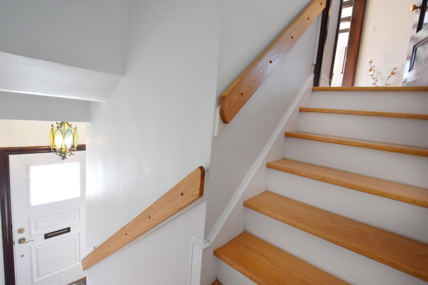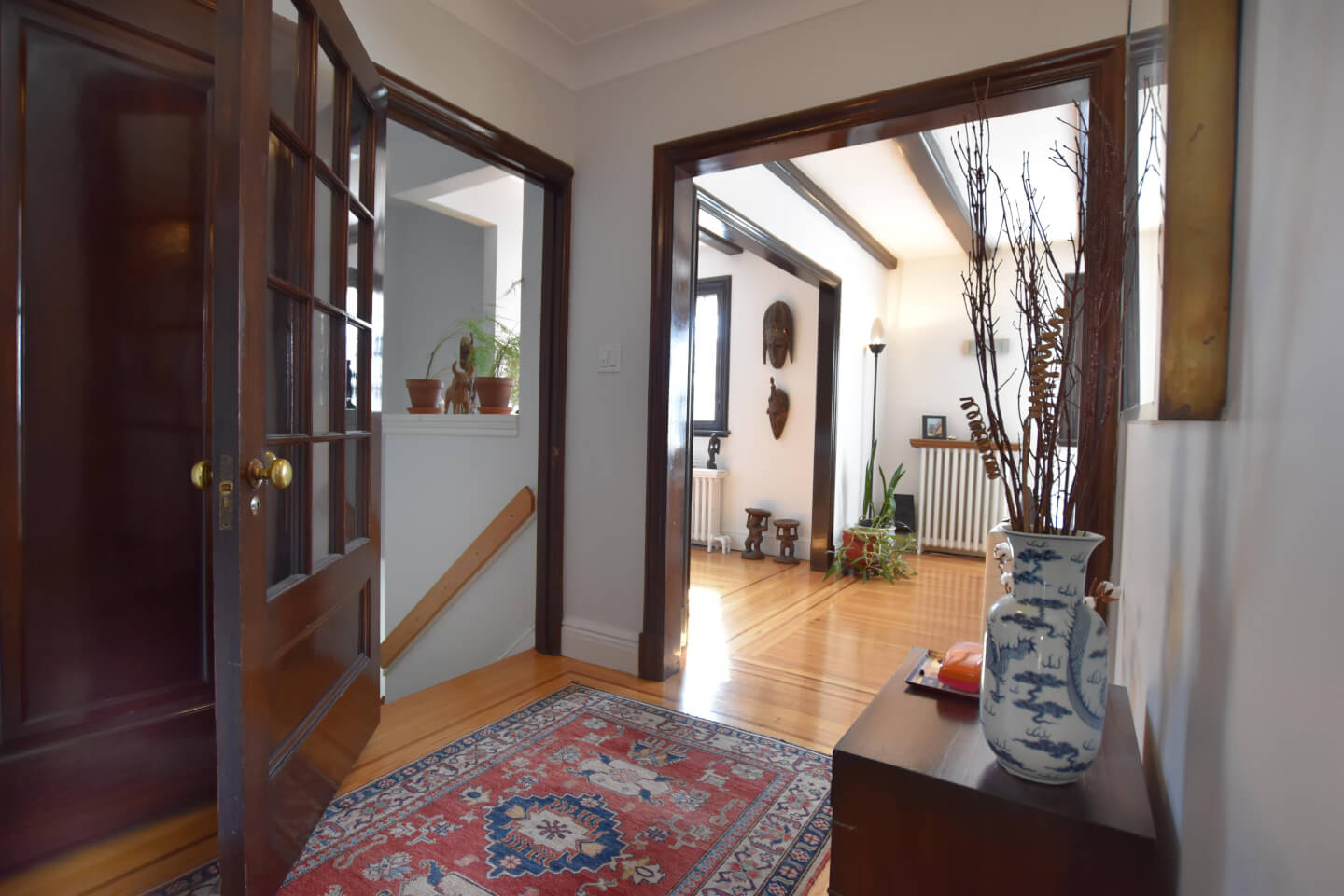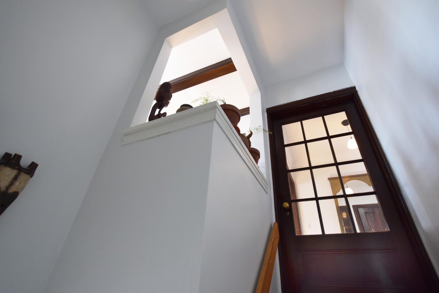 Entrance hall and its staircase are drenched with daylight from the opening from the den /office