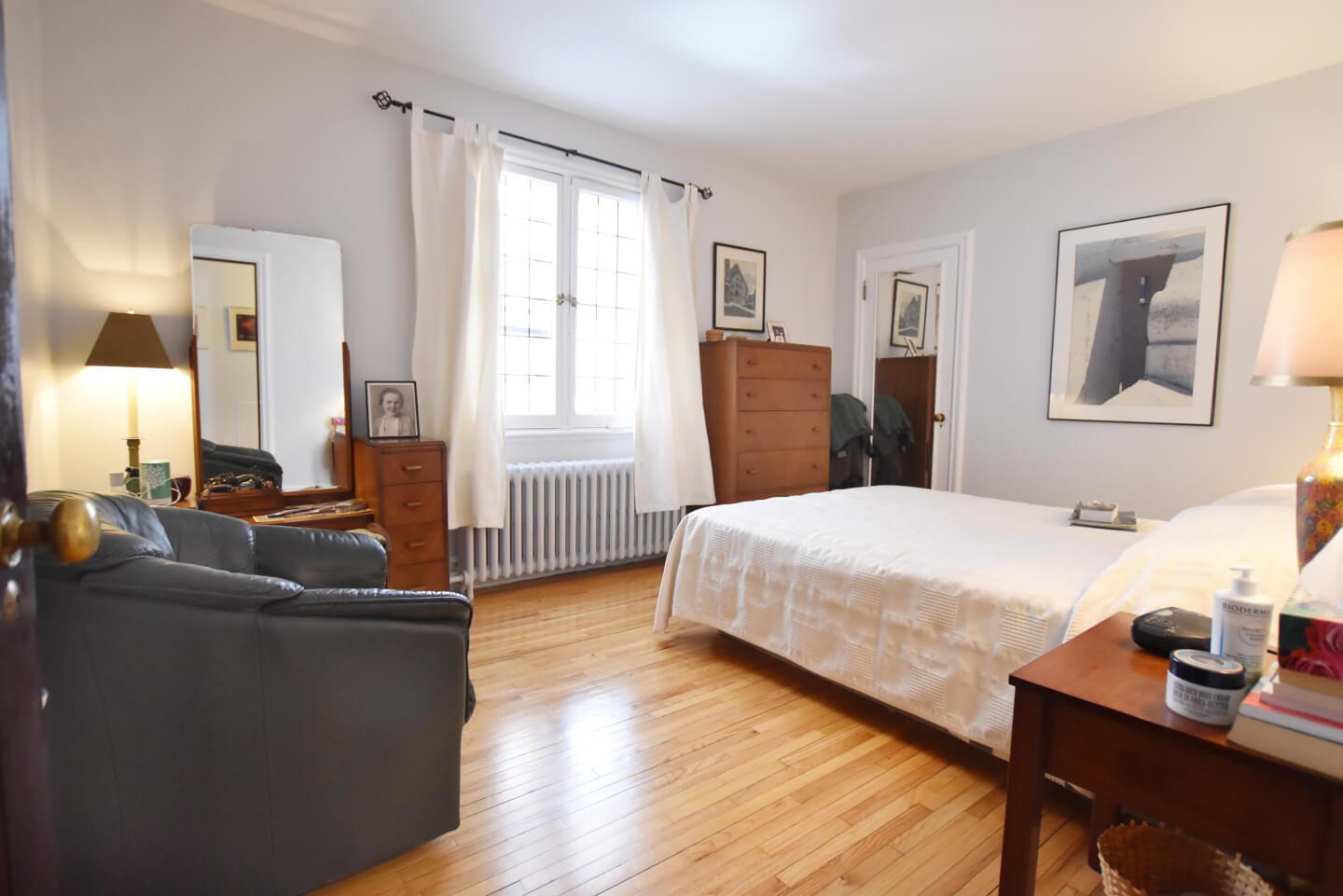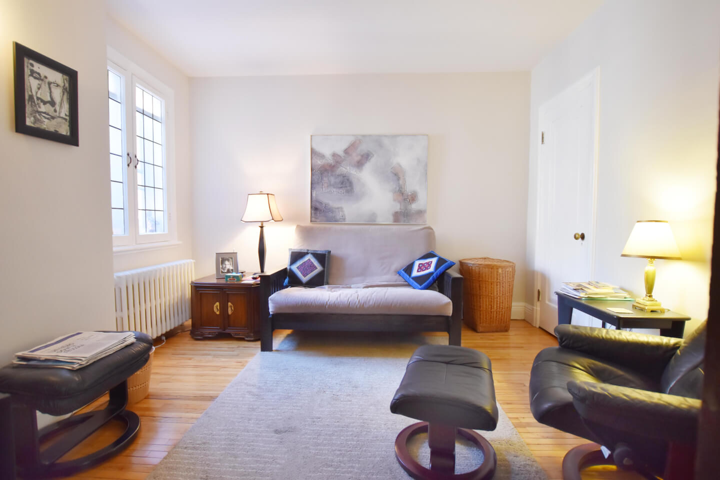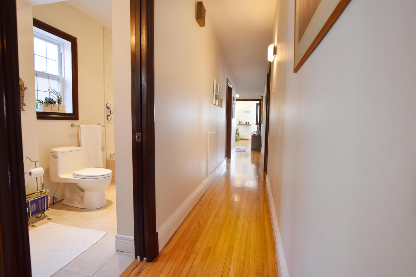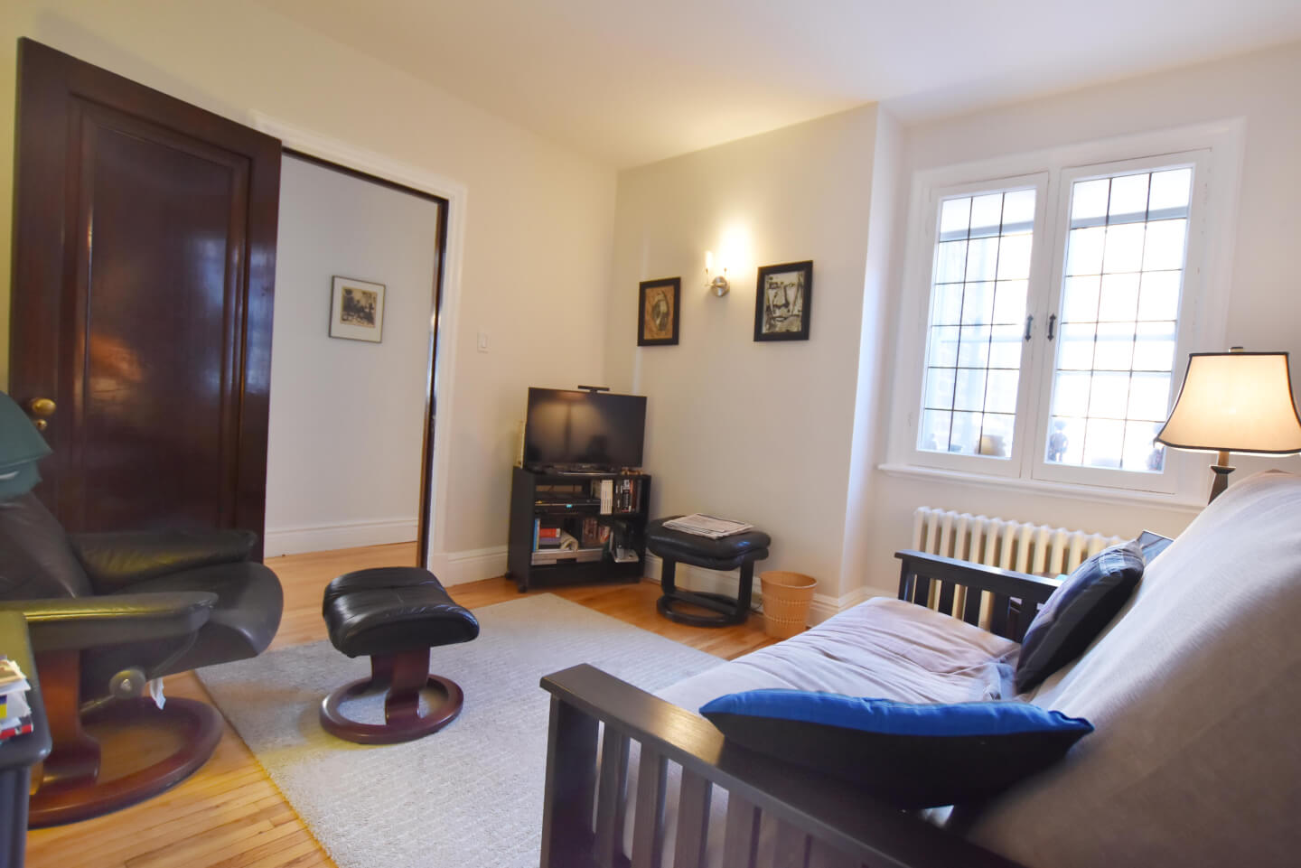 Monkland Village. Elegance and daylight of this open plan will charm you at your entrance. This 3-bedroom plus den/office renovated upper was built with stunning Mahogany woodwork and leaded windows. It has a large bathroom and a pretty eat-in kitchen with terrace and is impeccably maintained. Lots of storage and parking at the back.