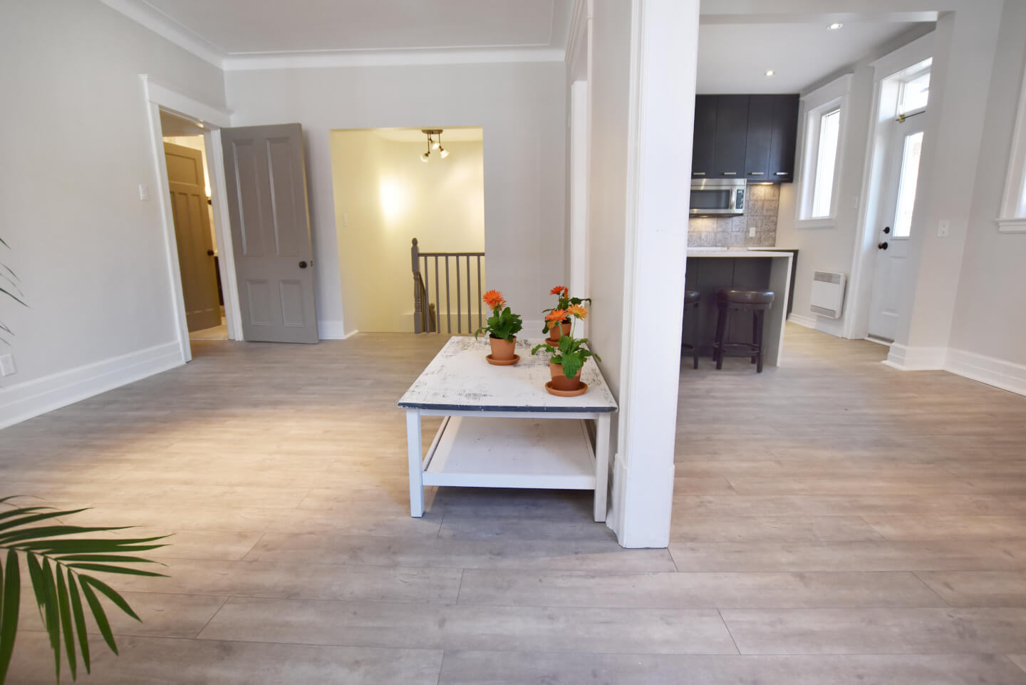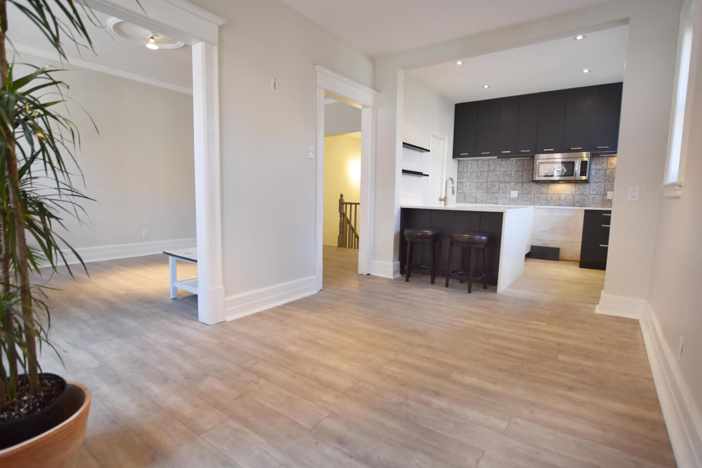 Adjacent Westmount, Victoria Village, on Marlowe, lovely Lower renovated move-in condition. This 3 bedrooms, 3 full bathrooms on radiant floors offers a eat-in island +/-2008 kitchen; all on floating floors. Finished basement family room on carpet. Shared parking. Exclusive garden. Step away from the Metro Vendôme, Glenn Hospital and more.
