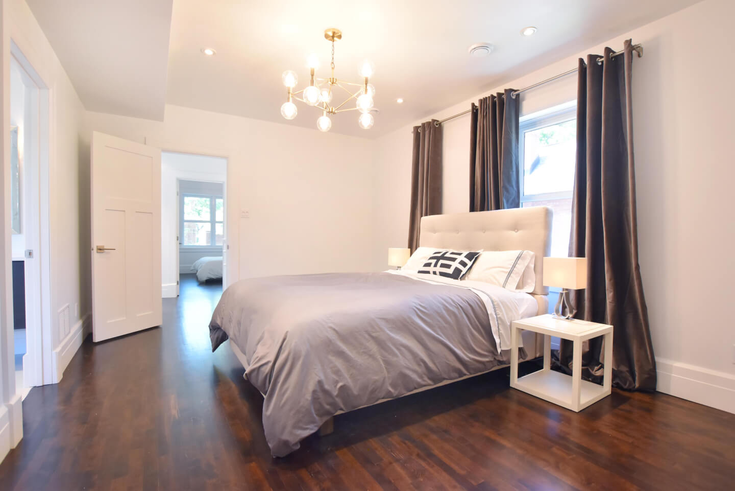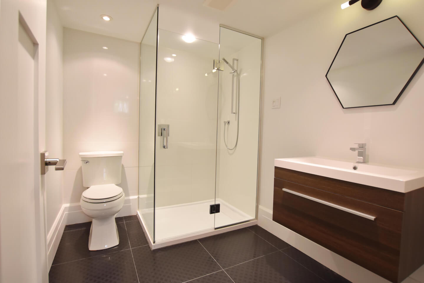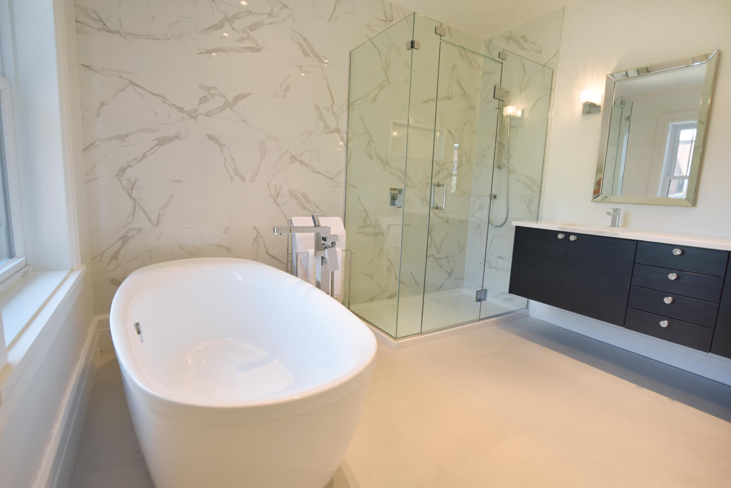 Master Bedroom with its spacious Ensuite bathroom, bathtub, glass shower, 2 sinks, skylight all on radiant floor