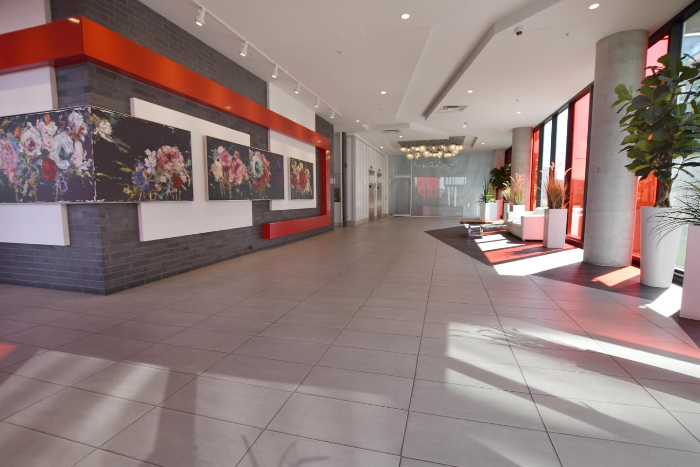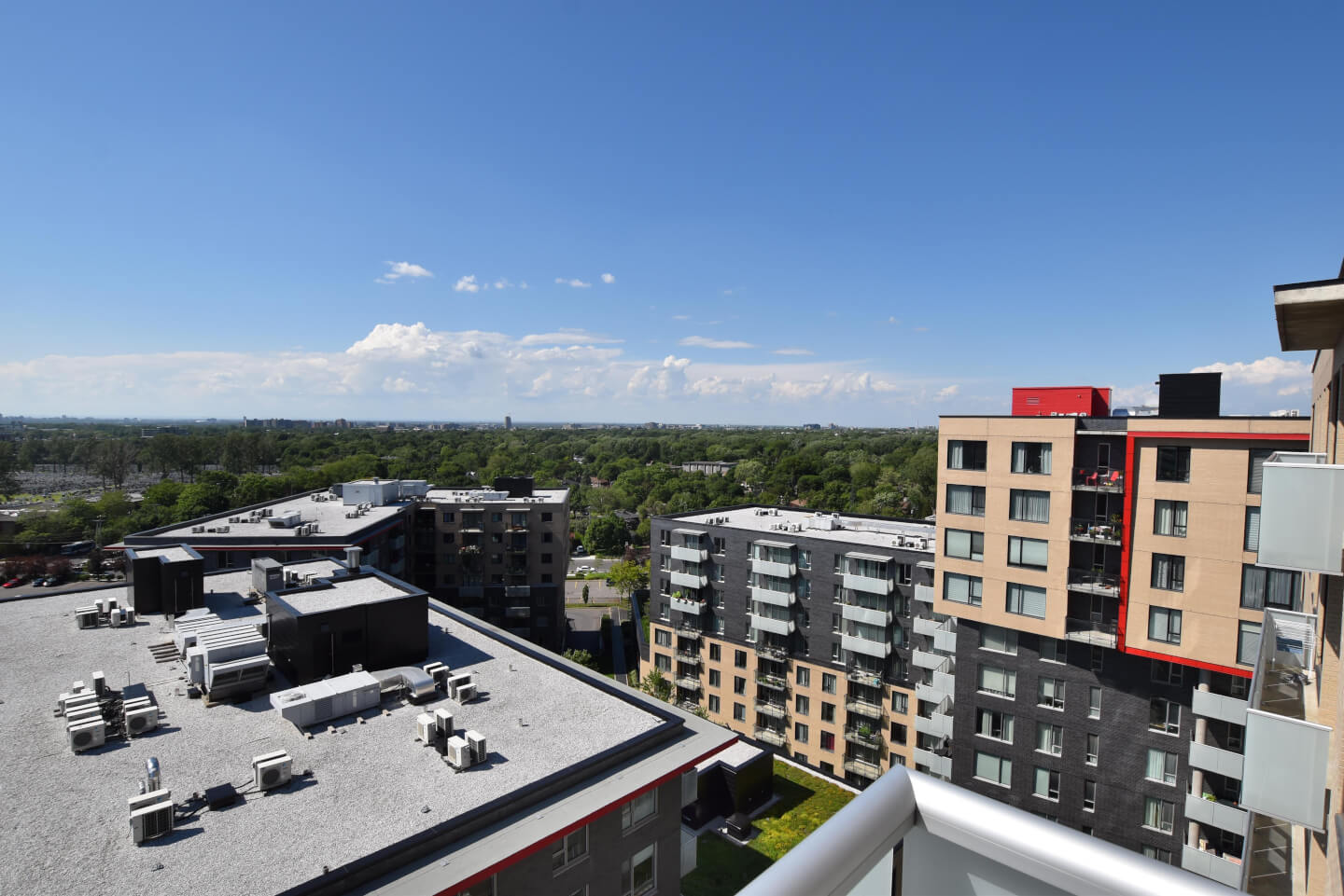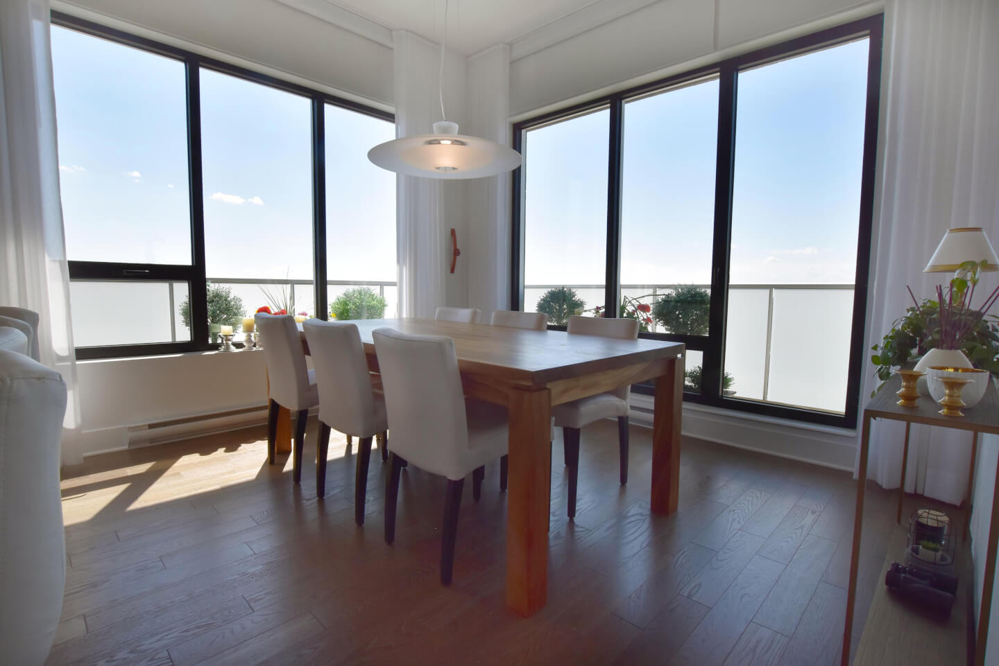 Spectacular top-floor penthouse in Rouge Condominiums Phase 4. With unlimited views, this exquisite corner unit is flooded with natural light has 10-foot ceilings, and offers 3 bedrooms, 2 bathrooms, 2 garages and a locker. The master bedroom has an Ensuite bathroom, walk-in and closet. It also benefits from an access to an interior swimming pool, a gym, a sauna, a jacuzzi and a rooftop terrace with BBQs. Sunsets everyday, a must-see!
