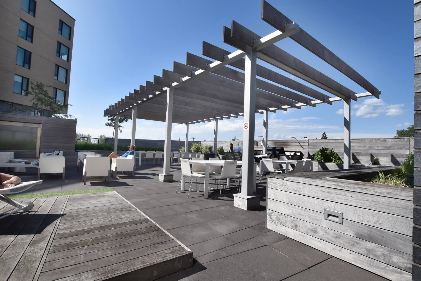 Access to Fusion Pavilion: swimming pool, sauna, jacuzzi, roof terrace with BBQ and pergola