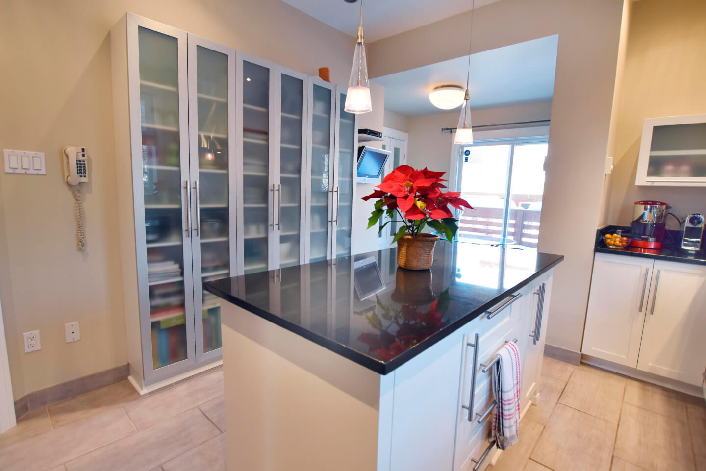 Superb kitchen Italian design inspiration, central breakfast island, Granite countertop, ceramic floor