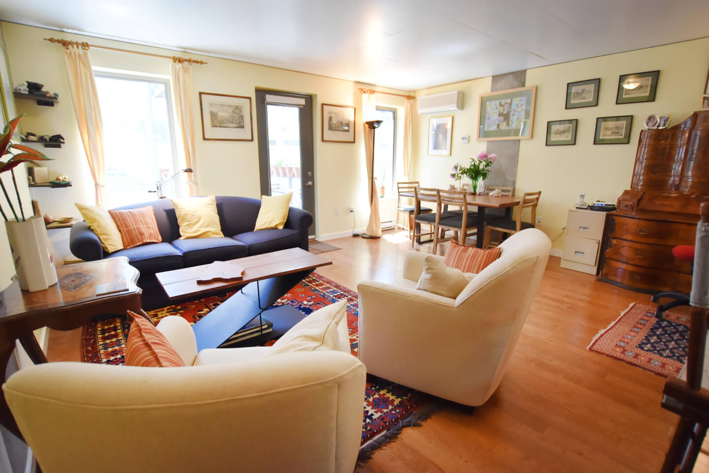 Discover a peaceful well-kept location in the hart of NDG. This 2 Bedroom in the Benny Square is strategically located near your favorite shop, the library, the sport center, the parc with tons of activity. Open space, lovely kitchen open to the dining room and living room, and then to a lovely terrace overlooking the gardens. Garage. Perfect pied à terre!