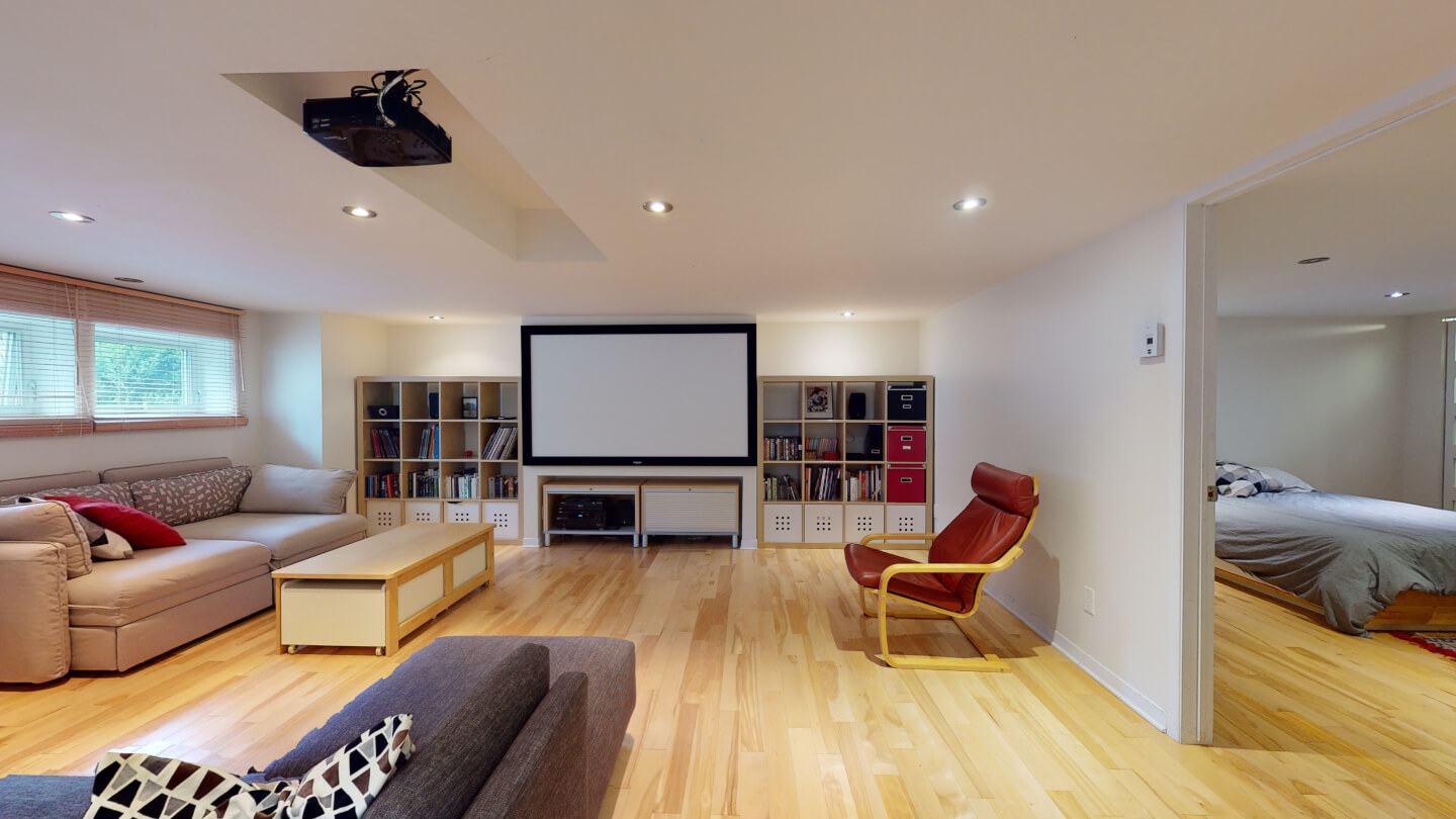Inclusions: Fridge, oven and induction cooking, oven fan, dishwasher, washer, dryer, alarm system, light fixtures, exterior antenna, kitchen TV, home theatre system (projector, screen, sound speakers and amplifier), storage units in family room in basement, blinds, garden tools, all in as-is condition