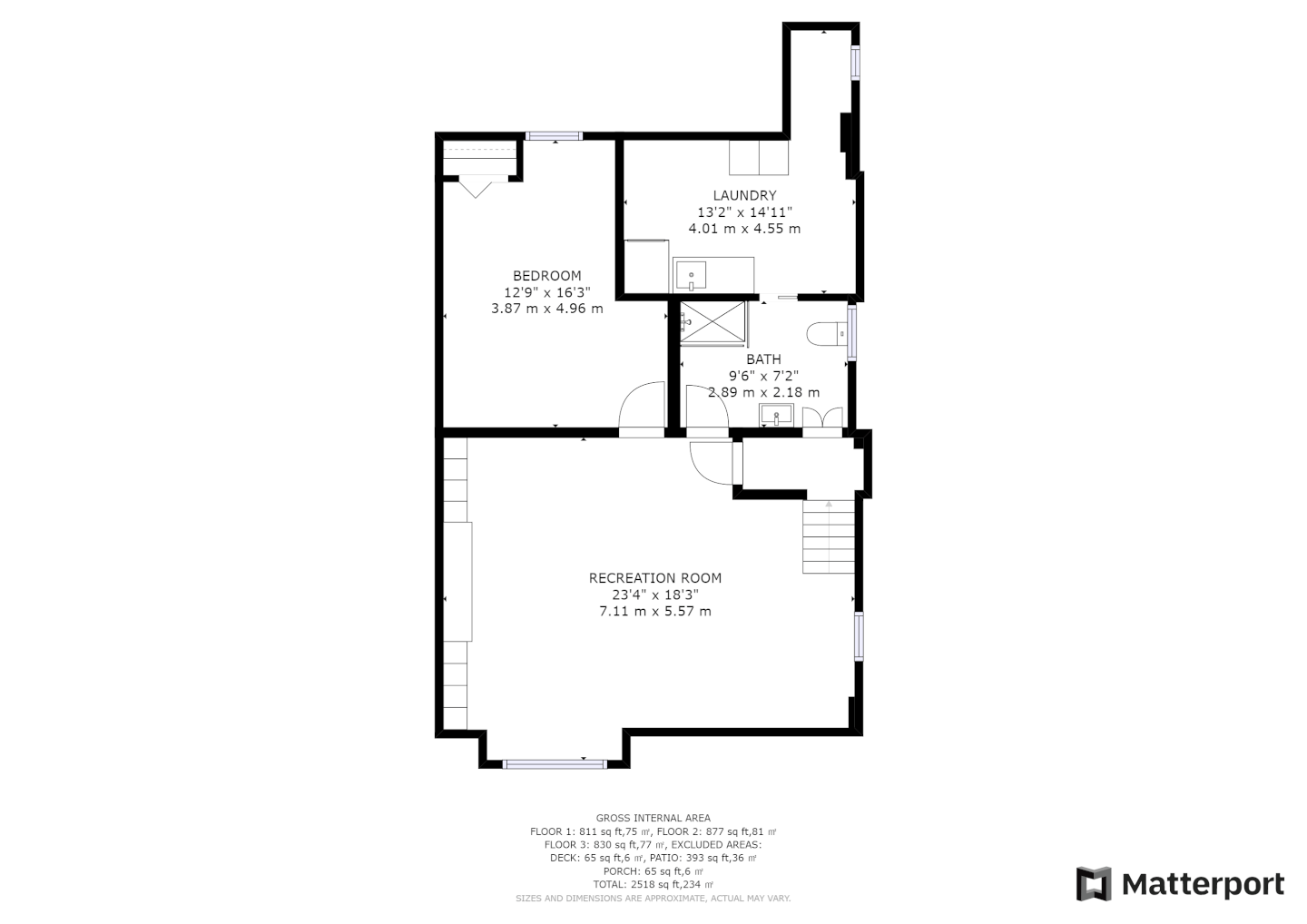 Finished basement 2010, engineering floor Ceiling height 6’-7’’ Family room 1 bedroom Bathroom, shower Laundry and storage