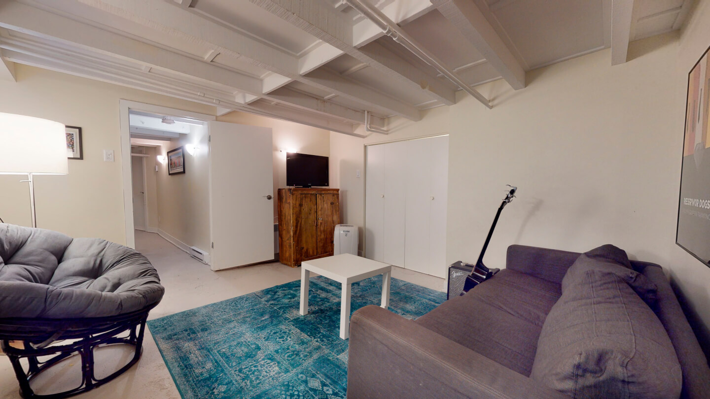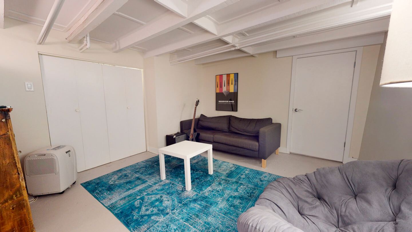 Finished basement, cement floor Ceiling height 6’ 5’’ Family room Laundry and storage cement floor