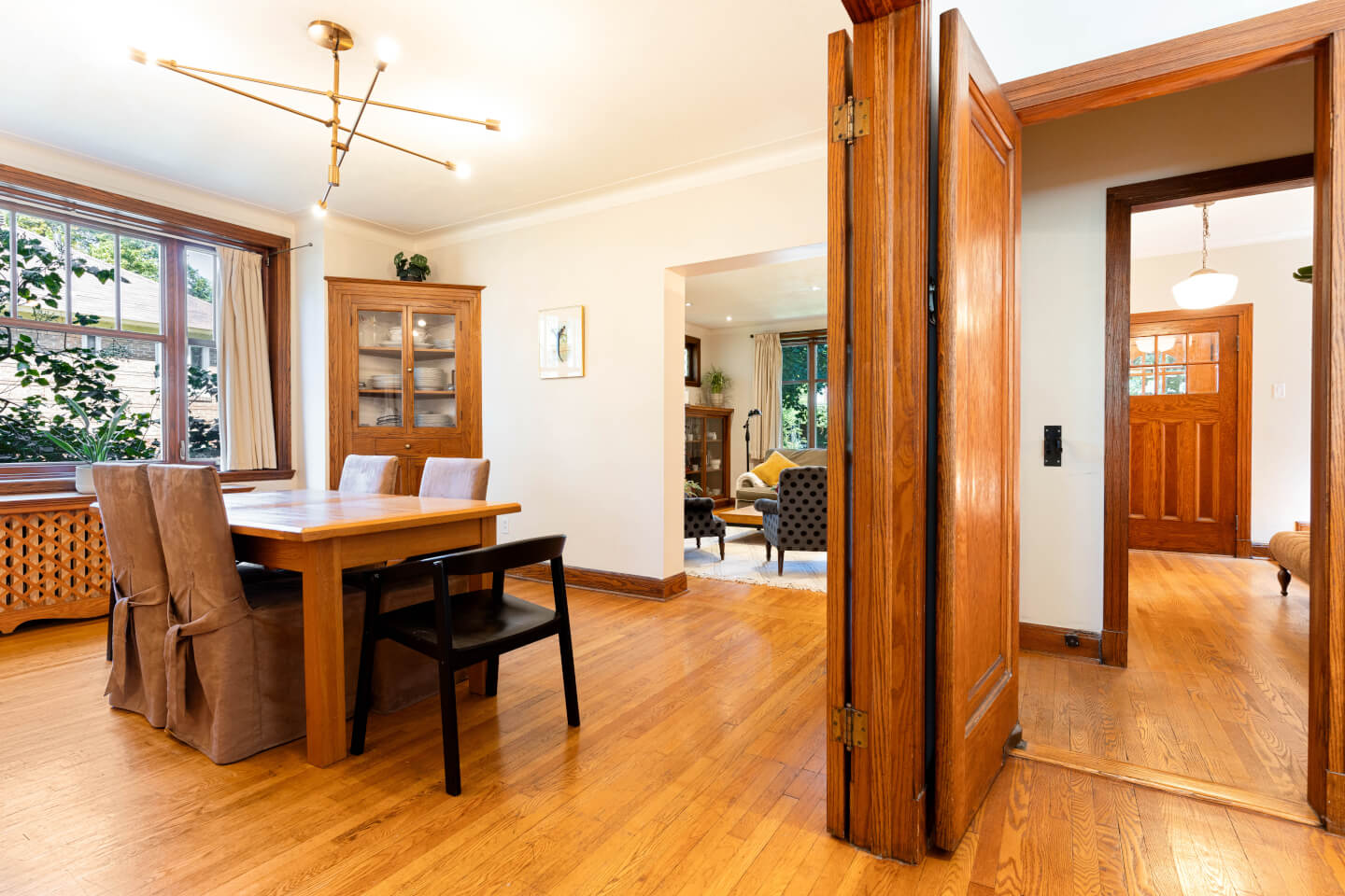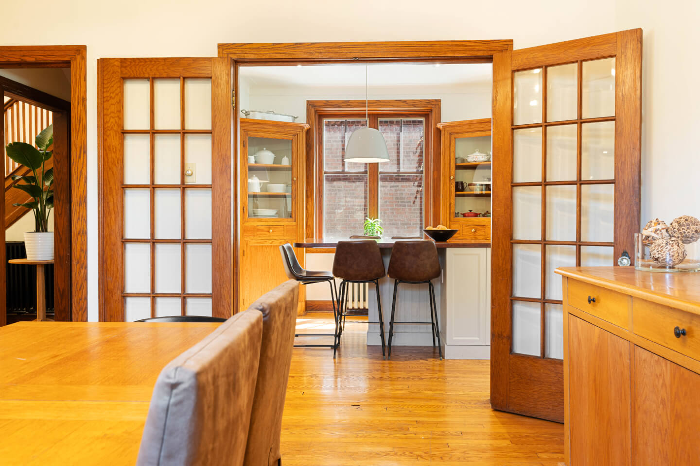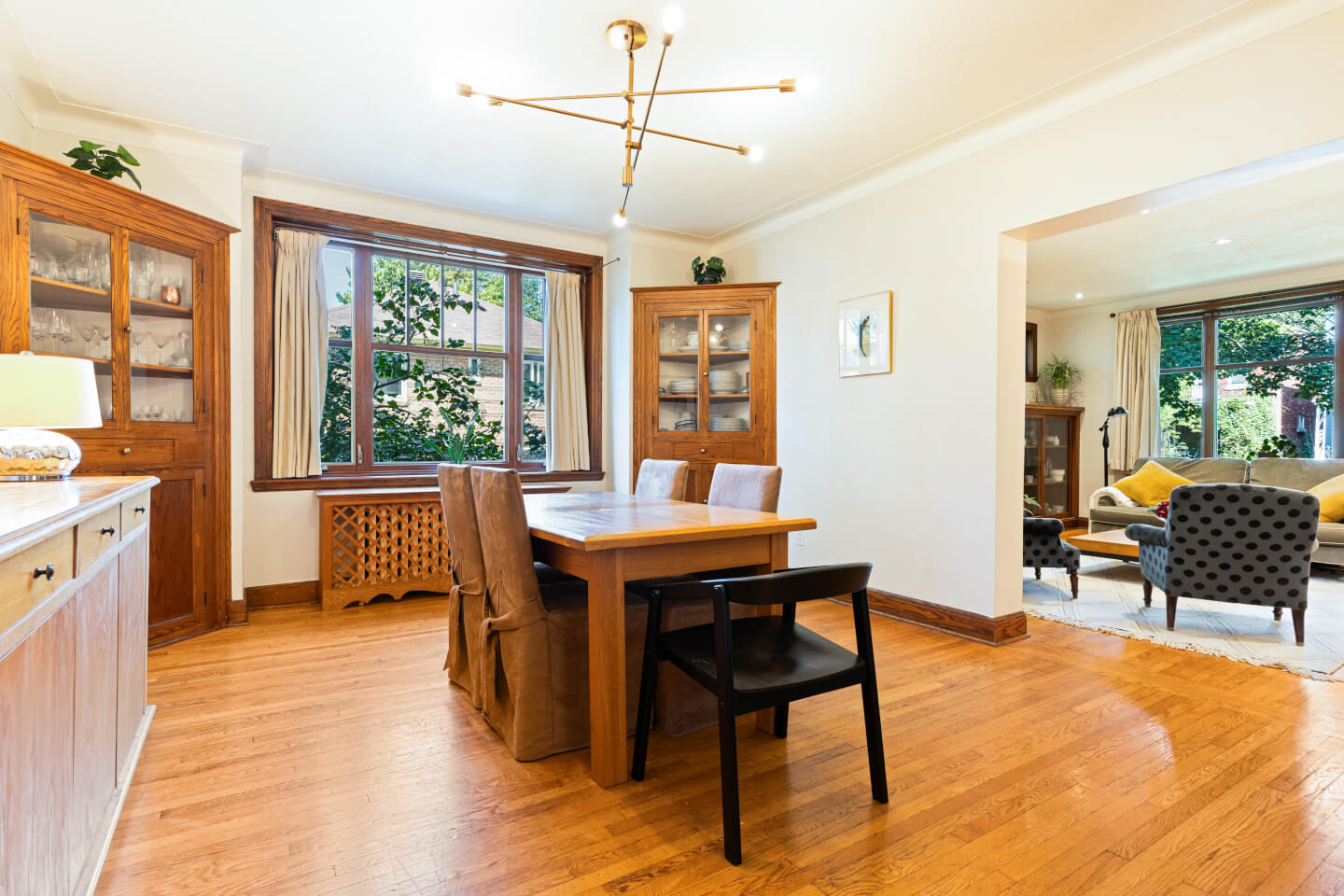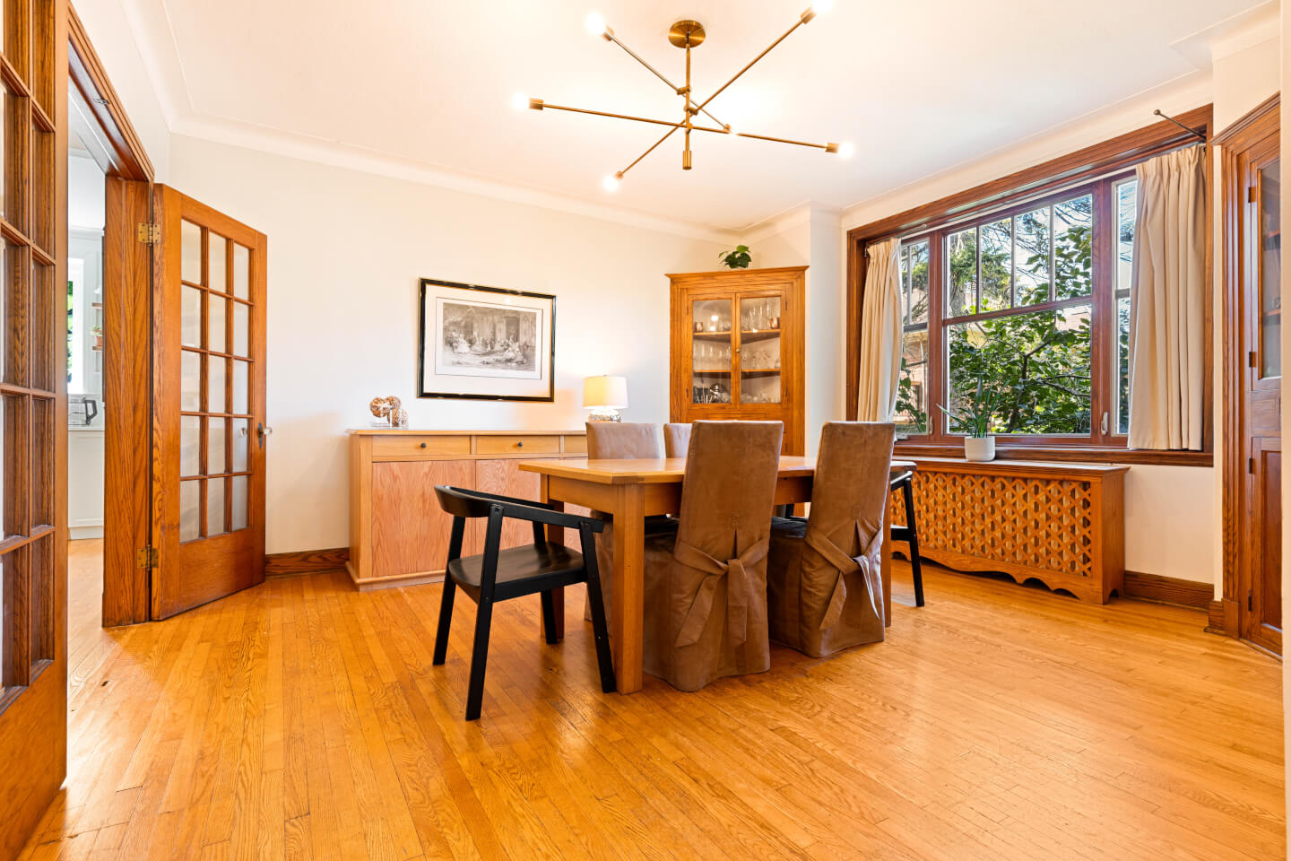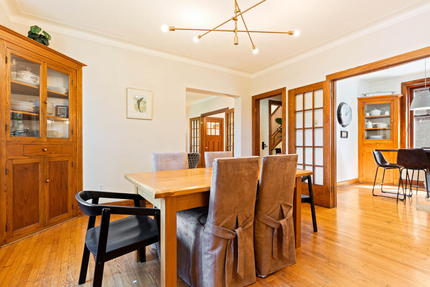 Find stunning woodwork, French doors, 4 original built-in China cabinets and 2 living room libraries, crowning this home.
