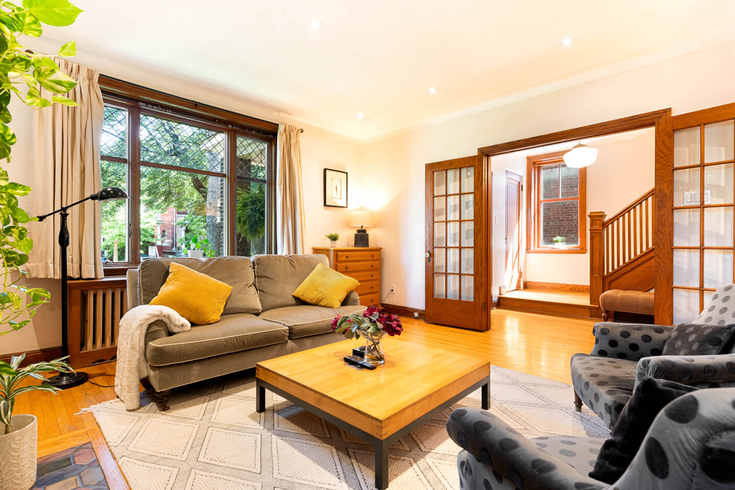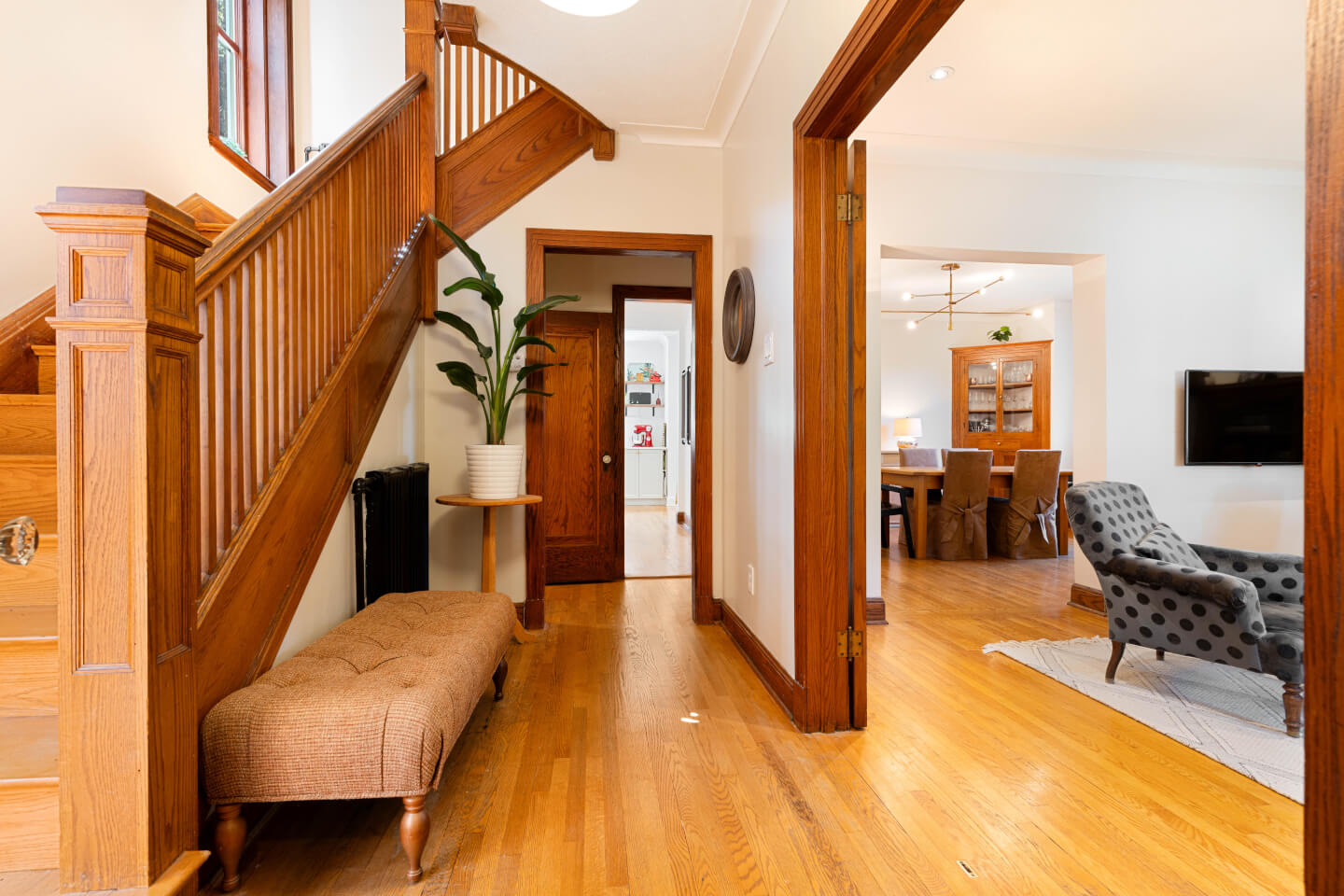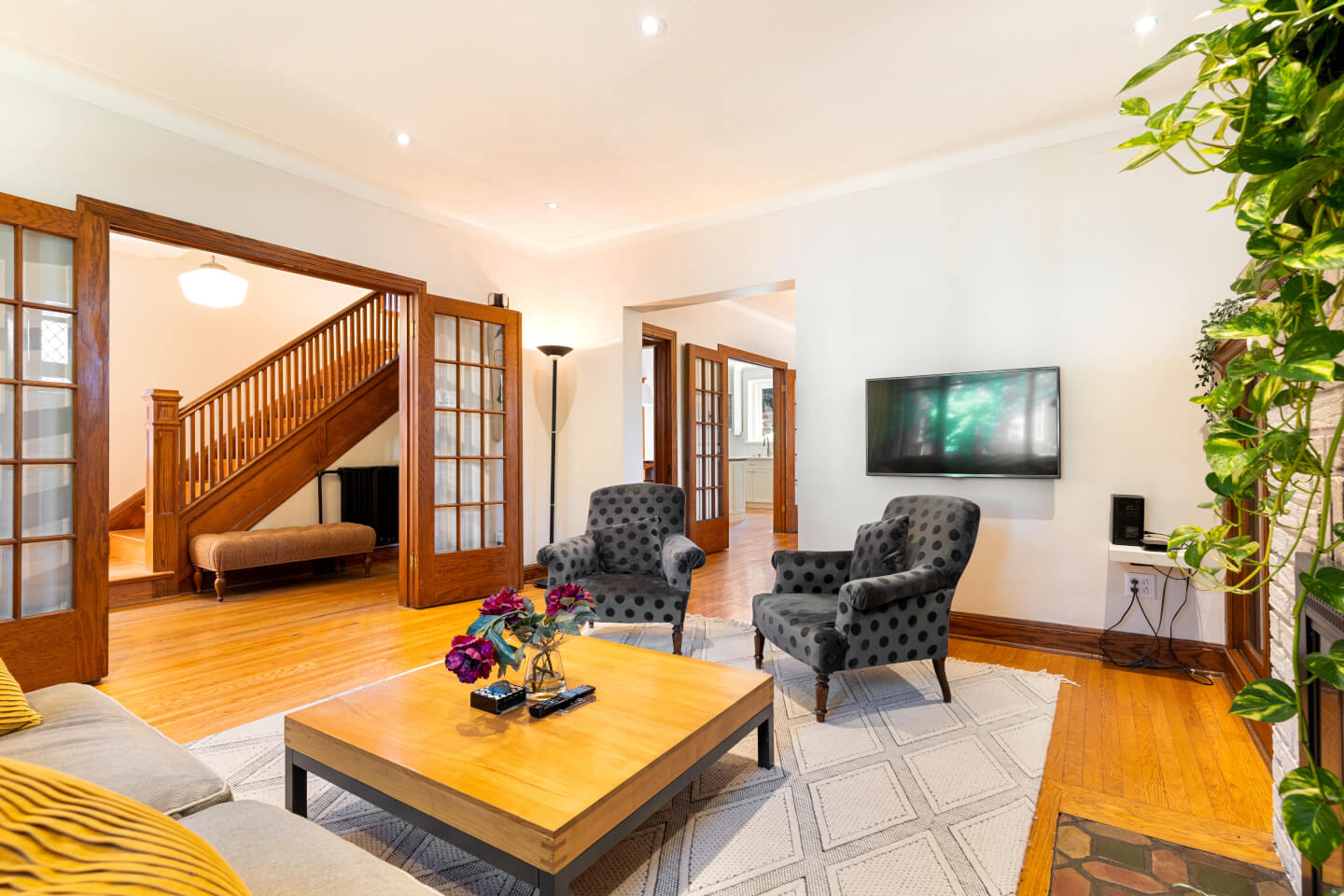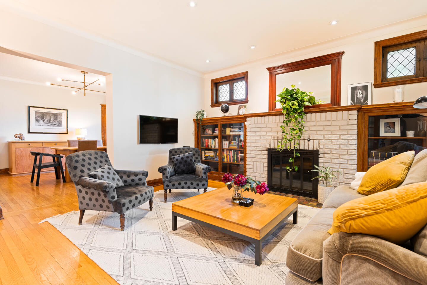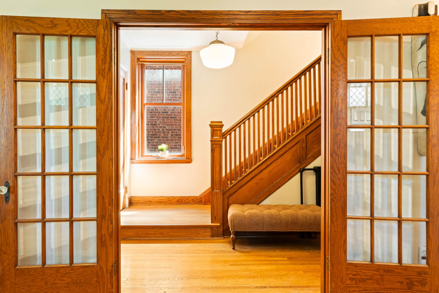 Find stunning woodwork, French doors, 4 original built-in China cabinets and 2 living room libraries, crowning this home.