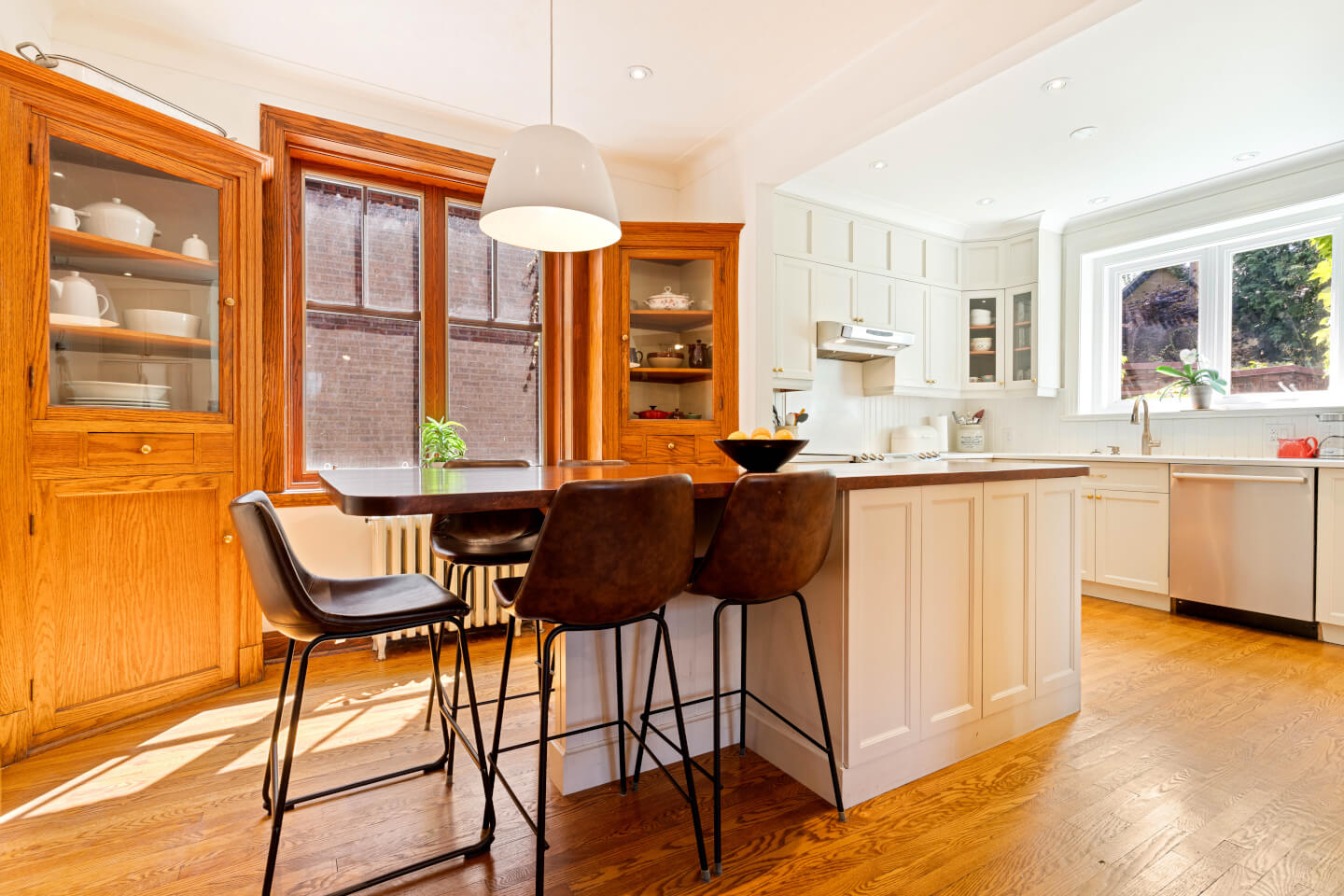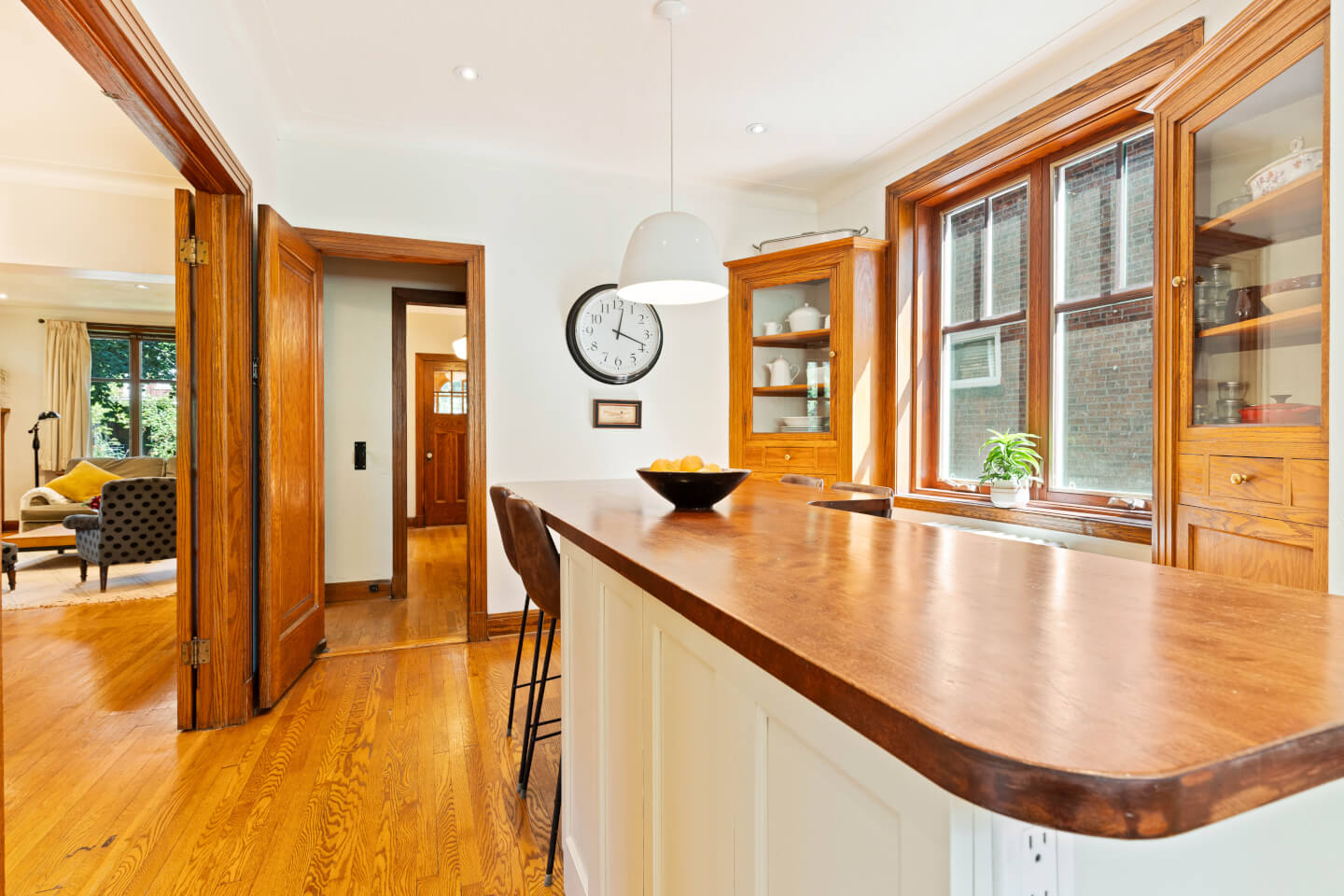 Dinette 2 original corner built-in China cabinets, main Island open to the kitchen