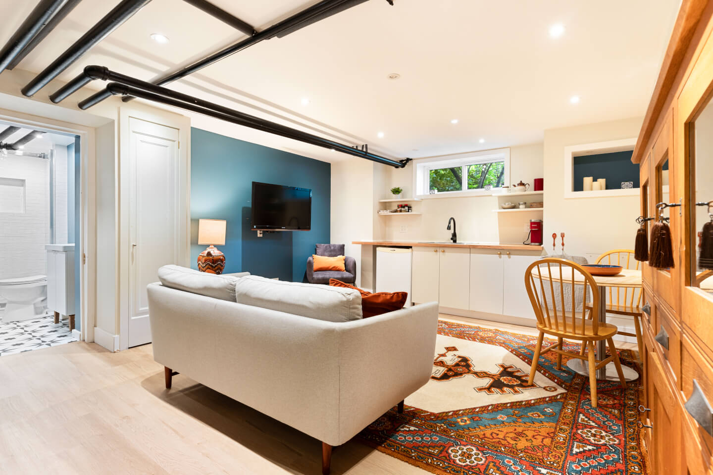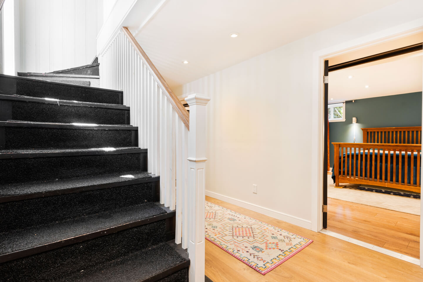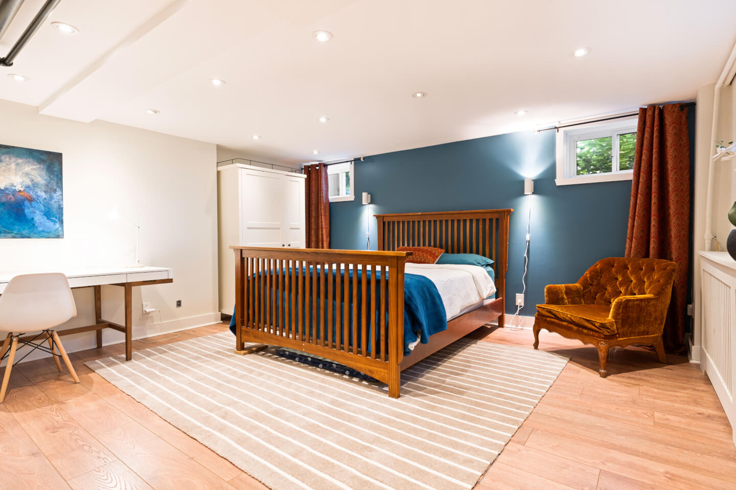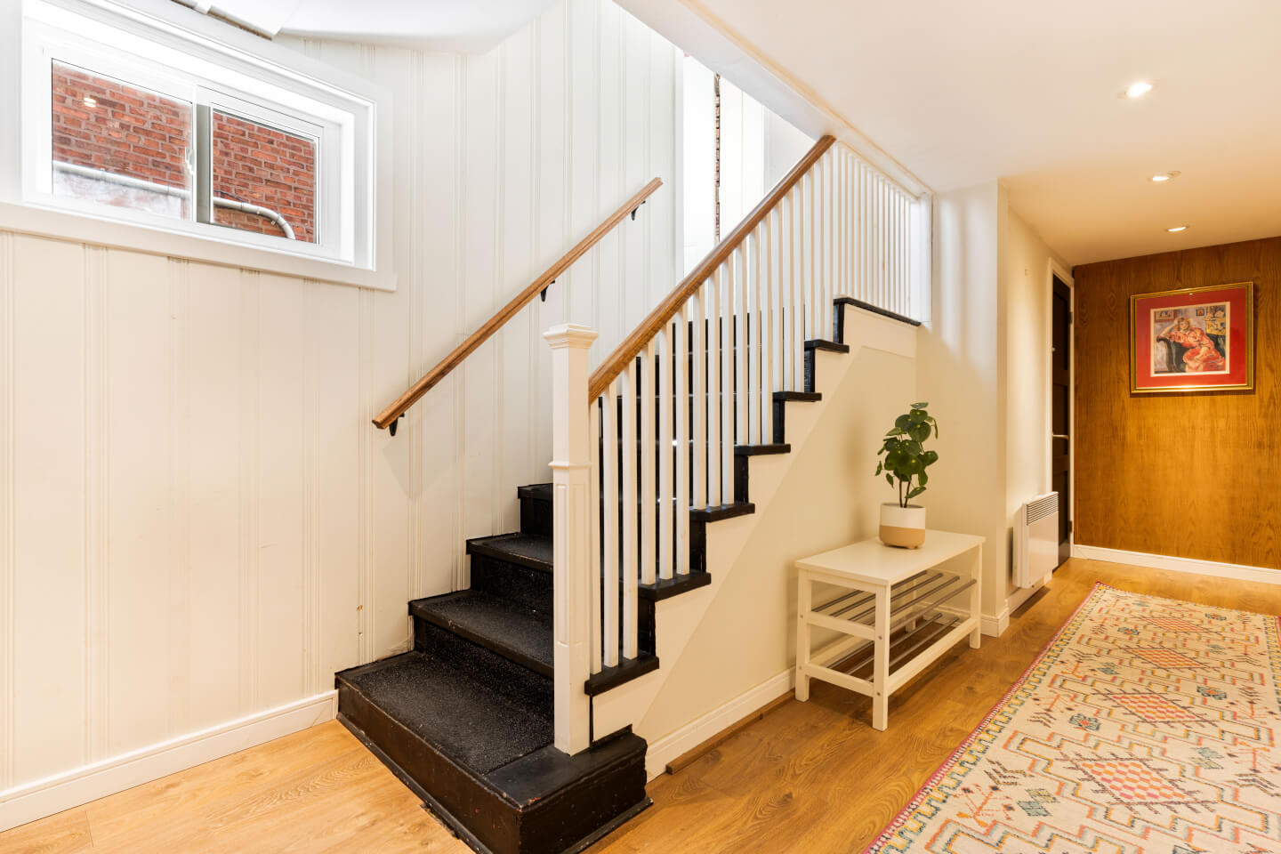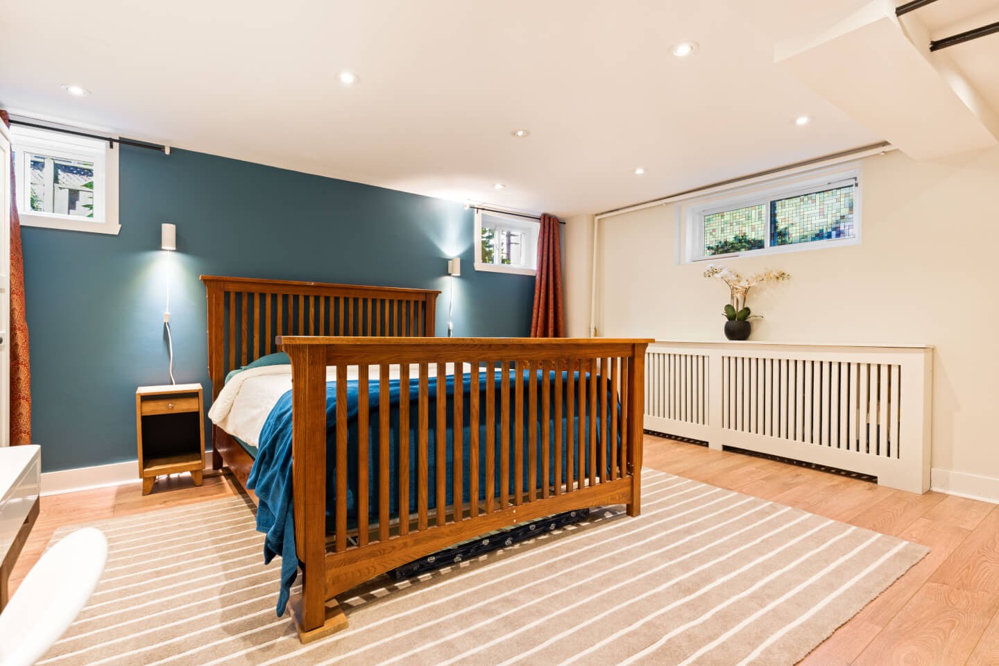 Finished basement, floating floor Ceiling height 7’ Versatile basement choice; intergenerational, home office or 5th bedroom and family room Bathroom/ shower Storage