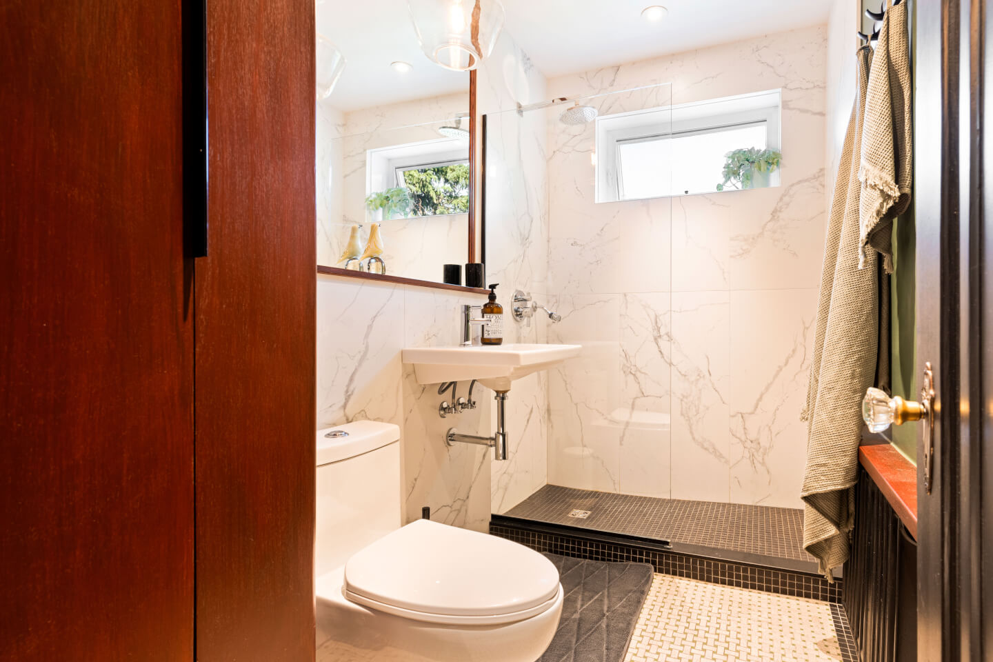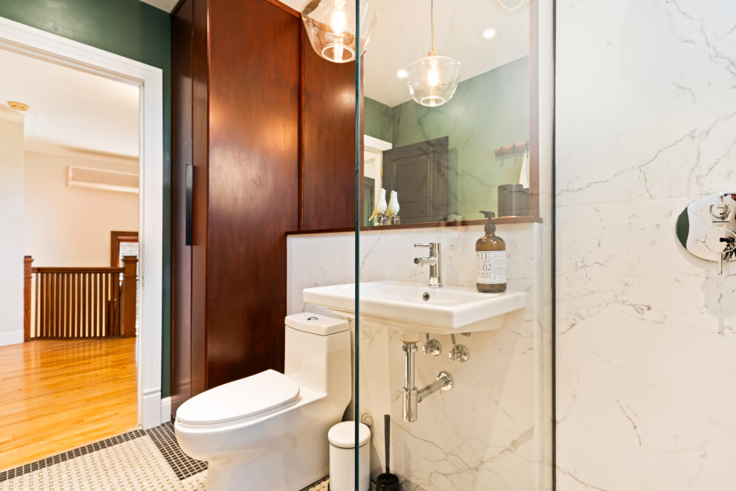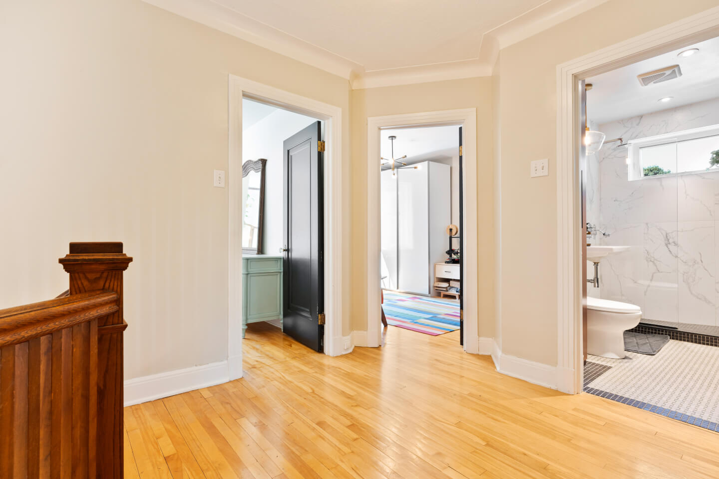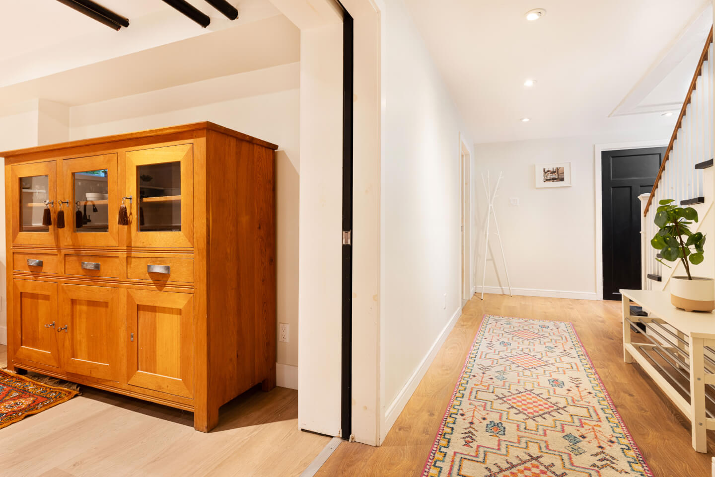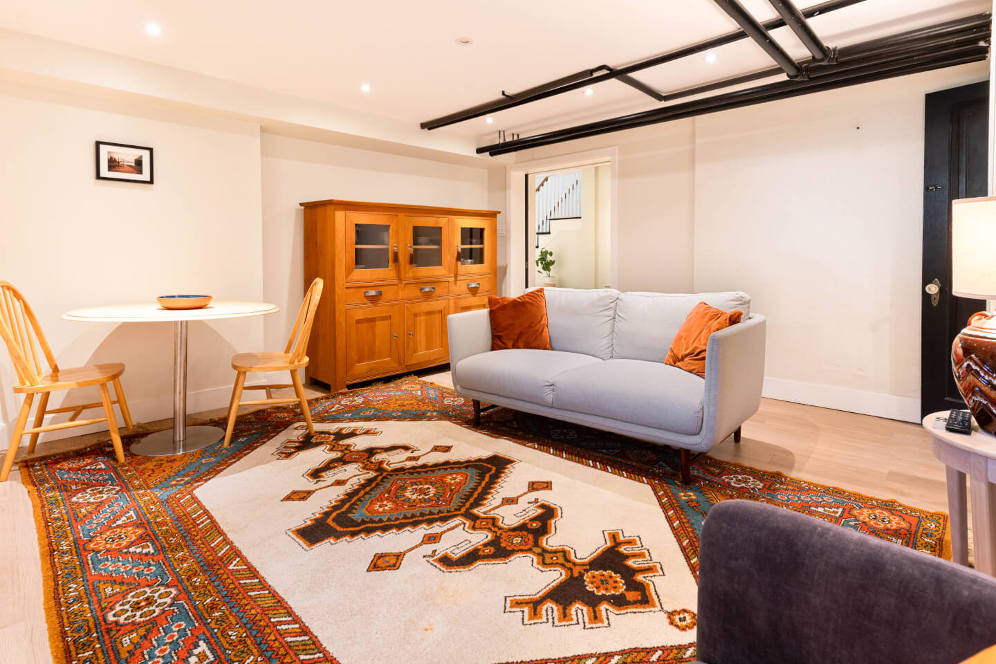 Finished basement, floating floor Ceiling height 7’ Versatile basement choice; intergenerational, home office or 5th bedroom and family room Bathroom/ shower Storage