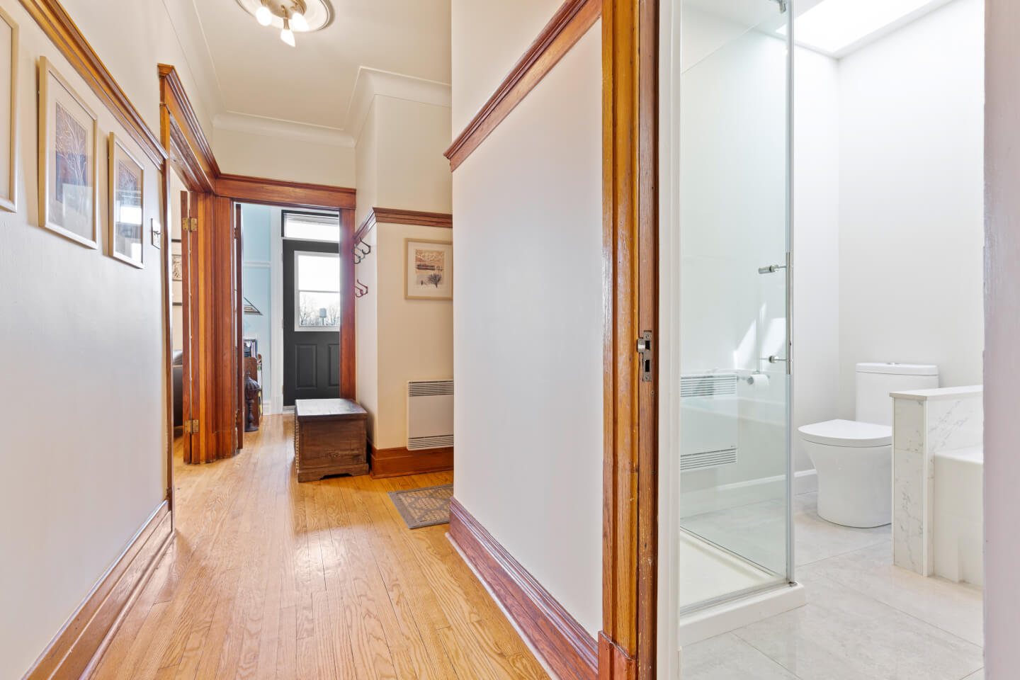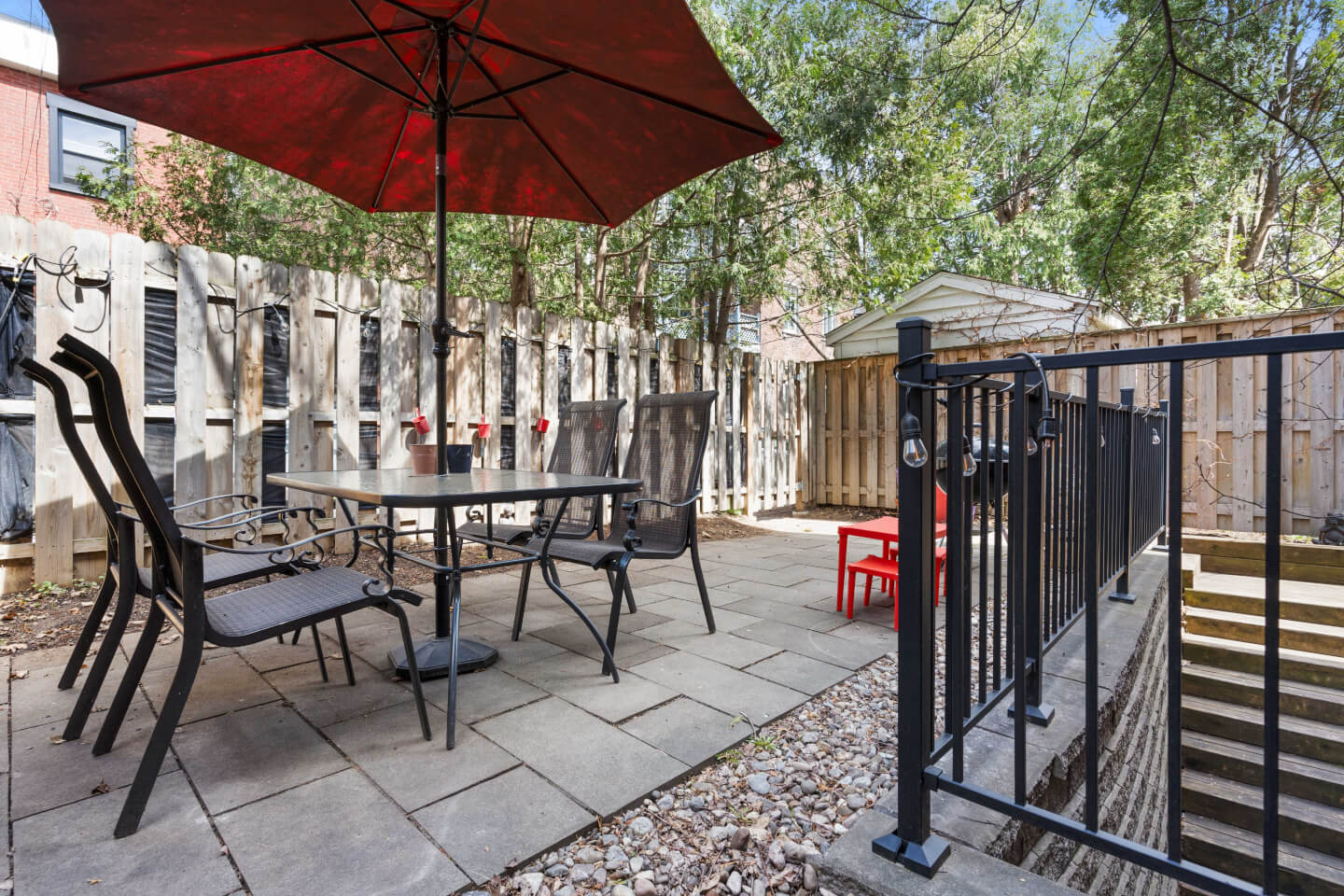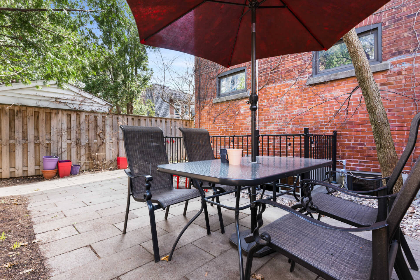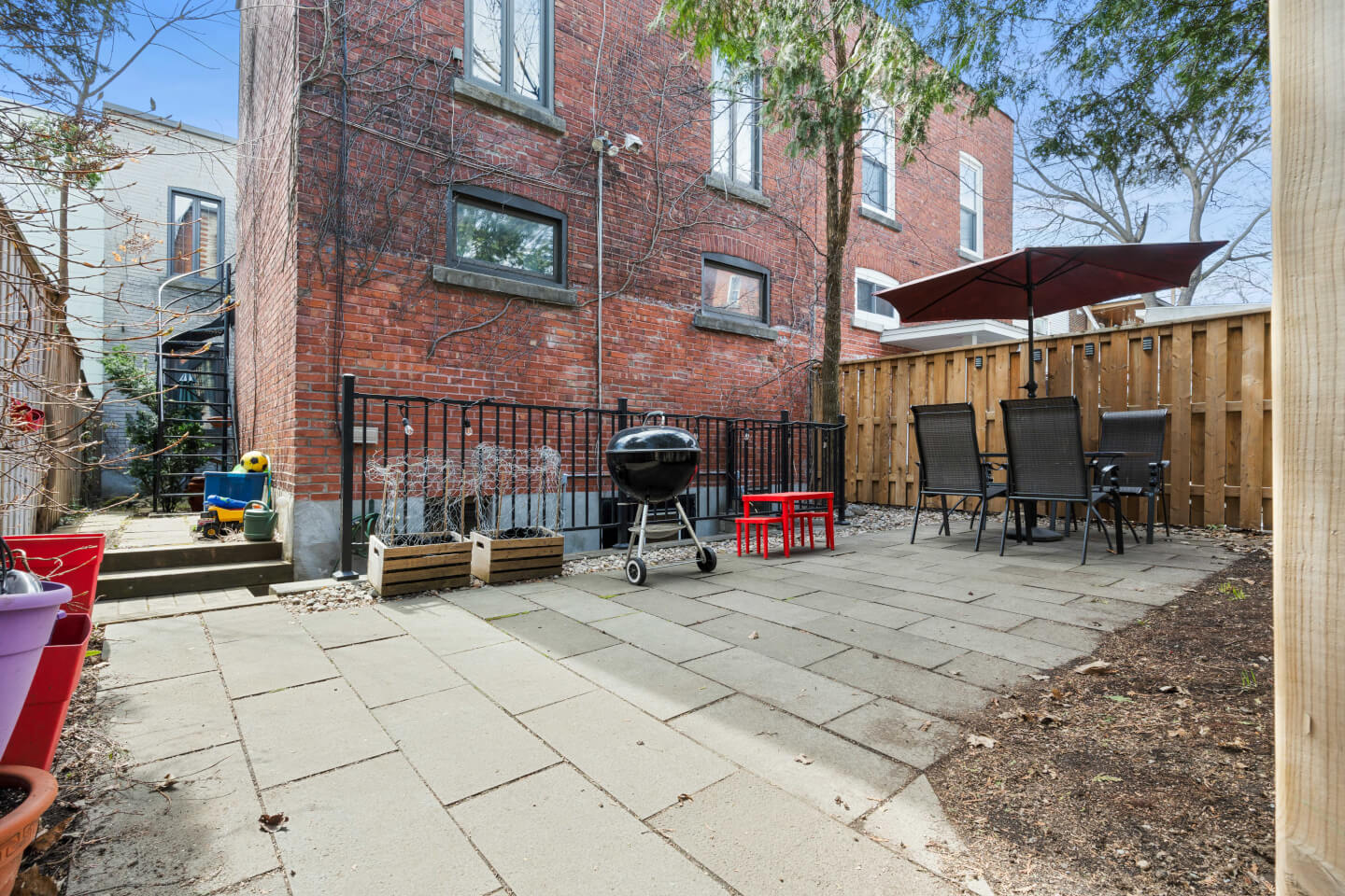Exclusivity to 2 skylights, part of the basement & part of the backyard and the shed (according to the plans – co-ownership agreement). Possibility of removing the shed * Presently none*, to create parking under certain conditions.