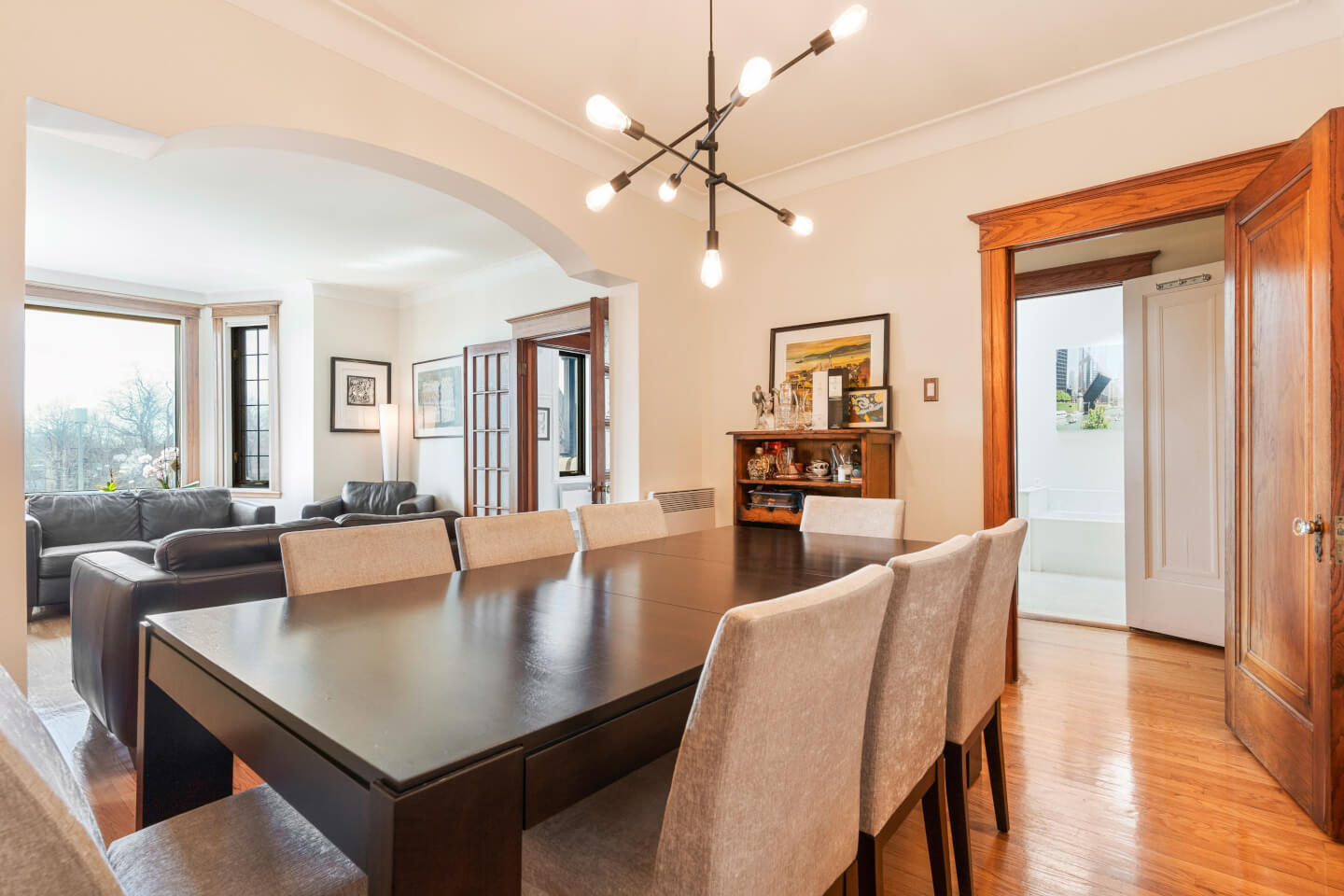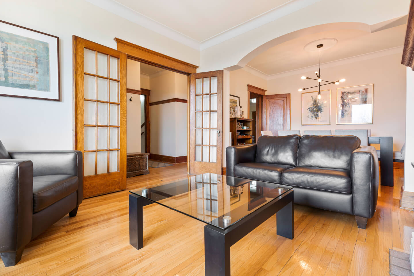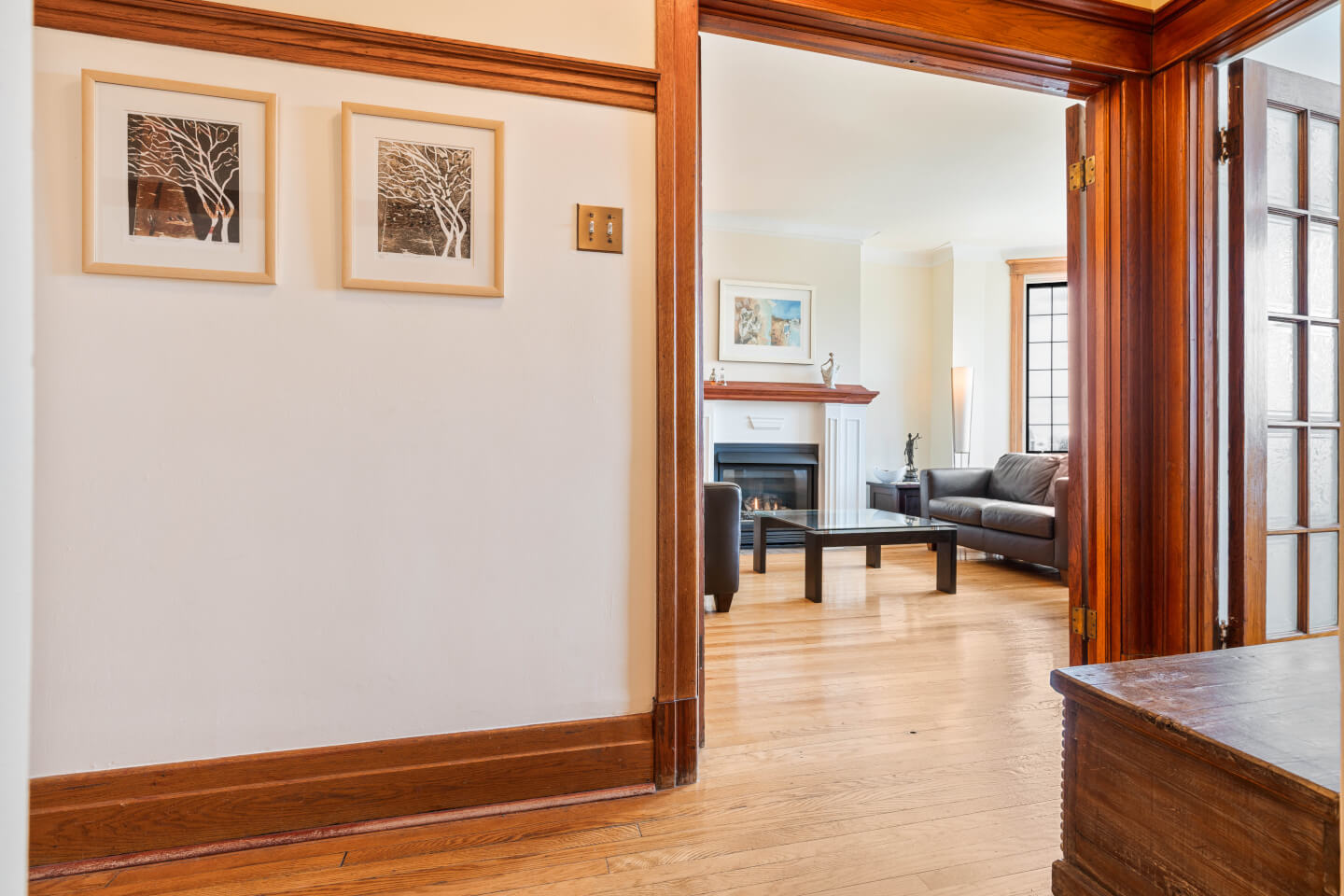 Double living room, presently combined with the dining room, gas fireplace, bay window