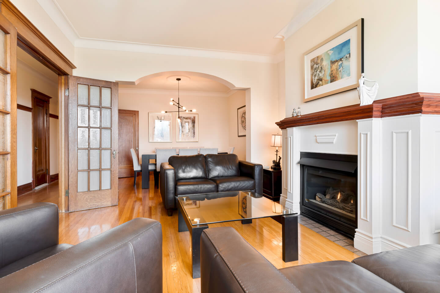 Superb upper undivided ideally located close to metro, library, pool, schools, NDG park and Monkland Street. 3 bedrooms +1 office & front balcony, lovely double living room, gas fireplace, bay window. Large dining room/family room near the kitchen with its 2nd balcony. Magnificent main bathrooms.