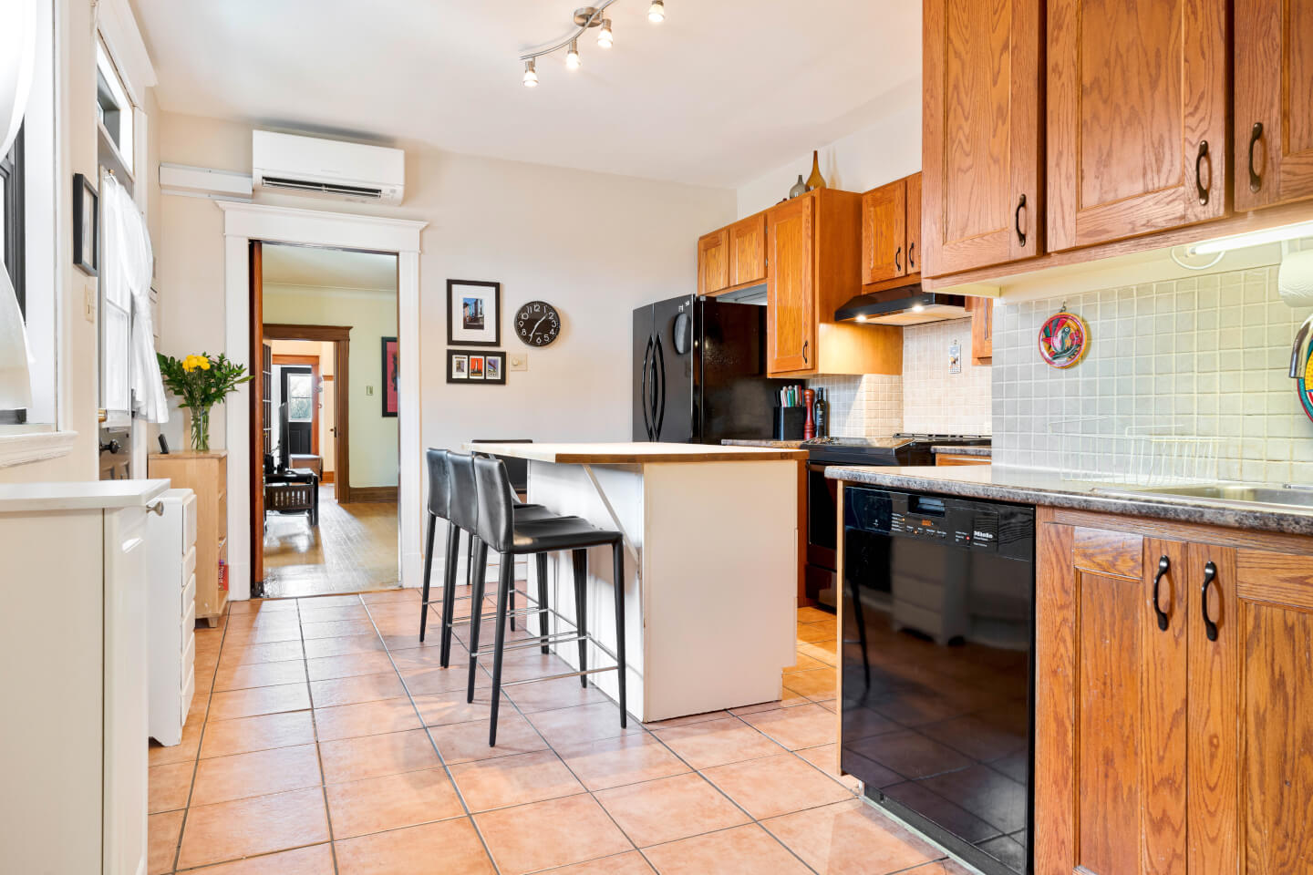 Wood cabinet kitchen, central island, walk-in pantry & A/C heat pump