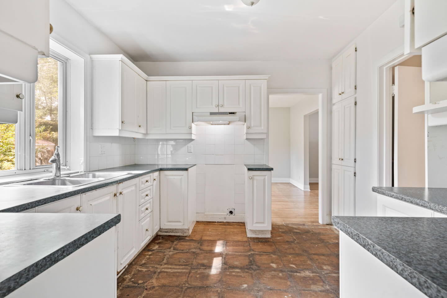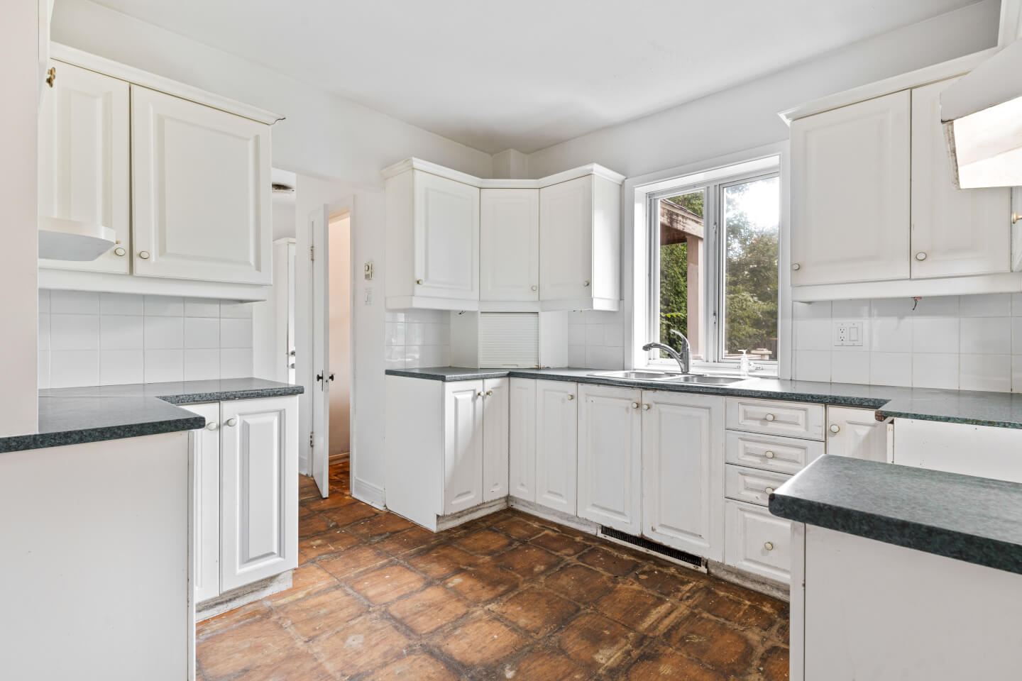 Kitchen with a large rear terrace