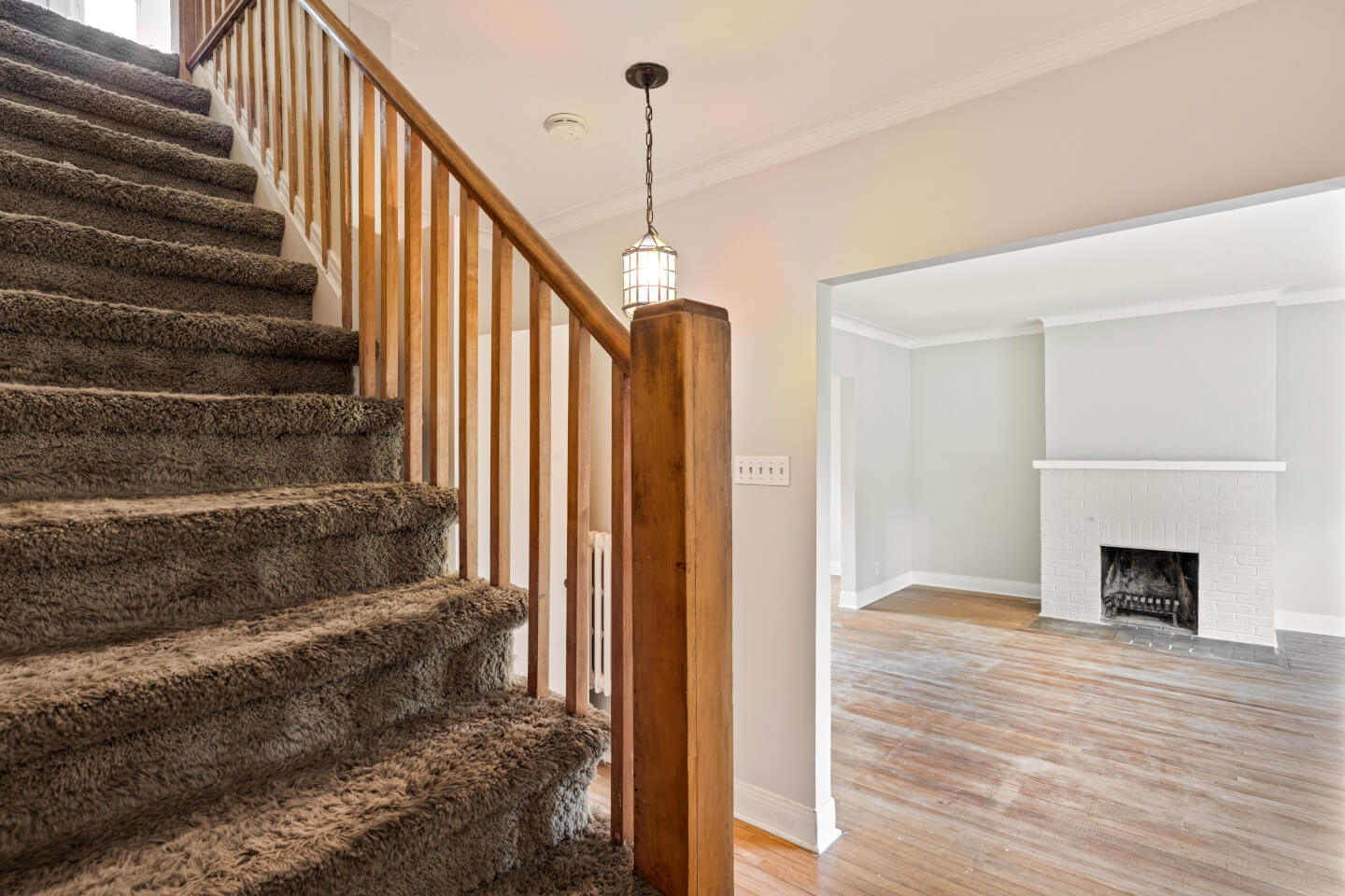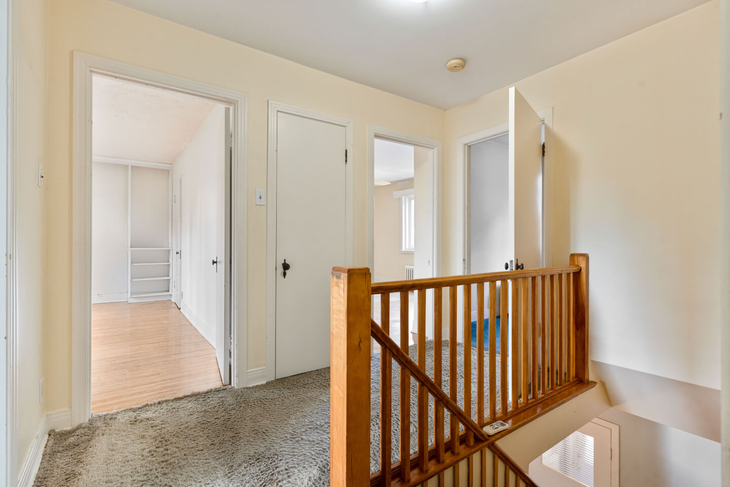 2nd floor: hardwood flooring and carpet