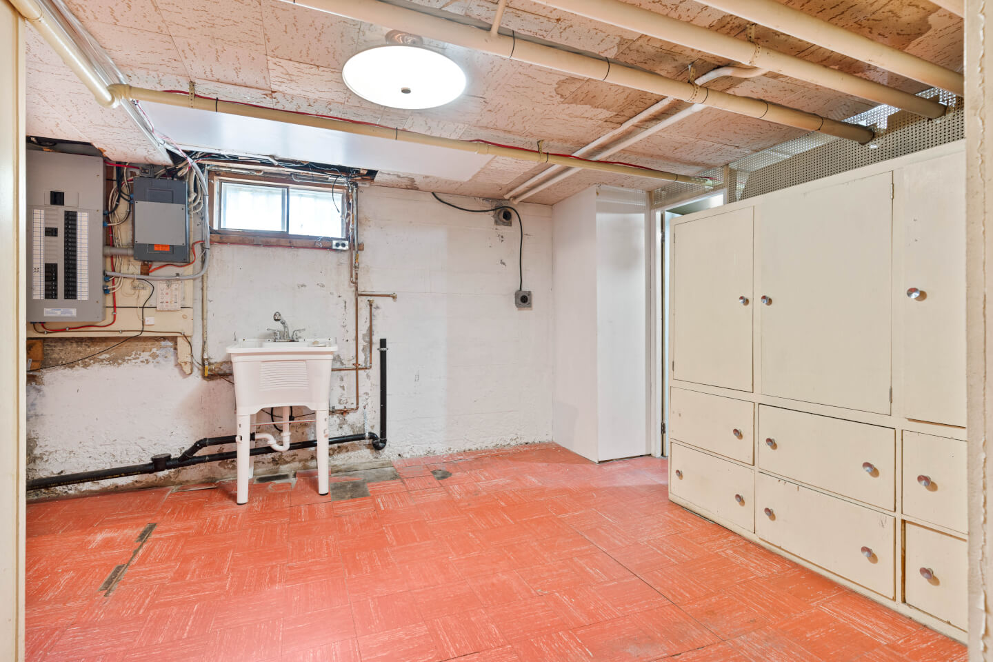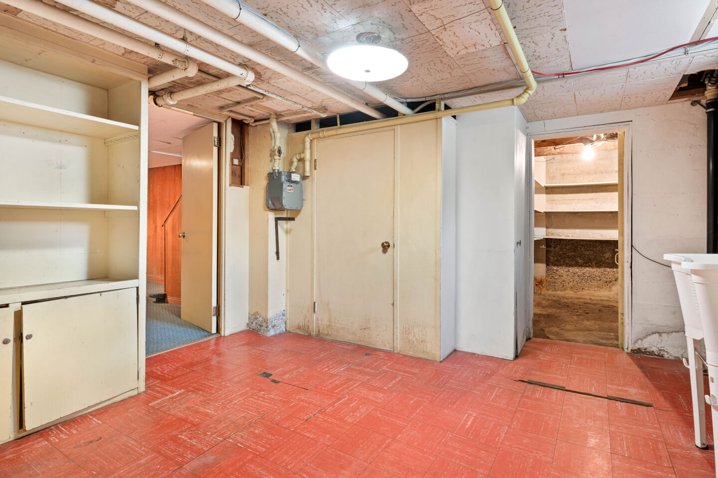 Basement: concrete flooring and carpet