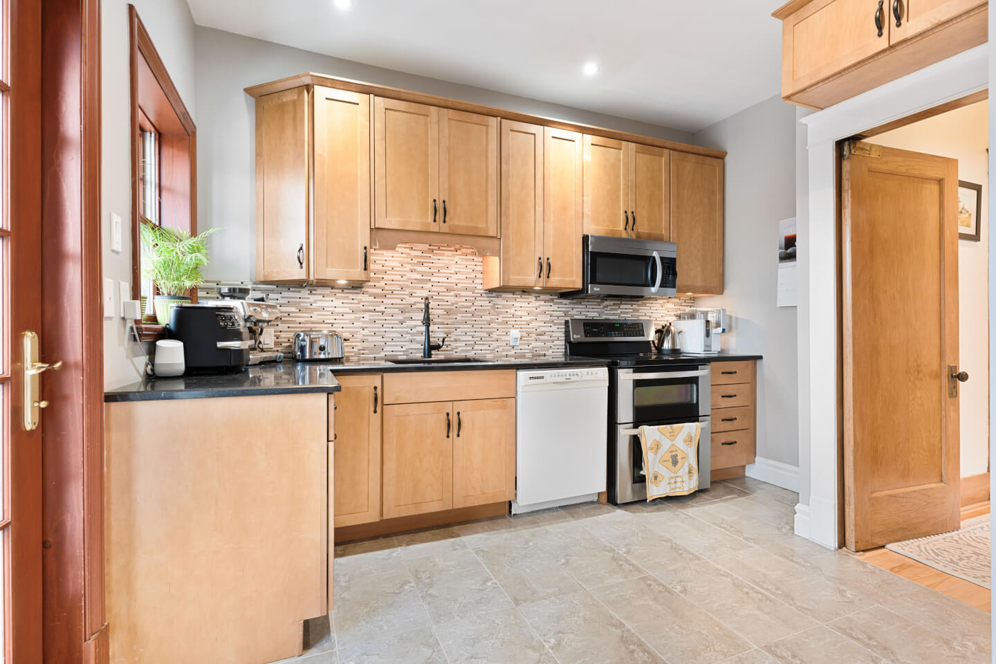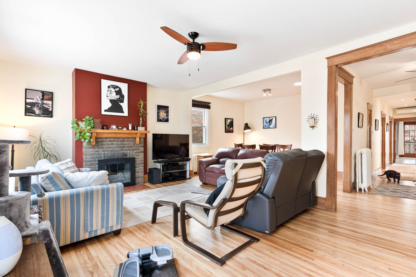 Monkland Village! Superb undivided upper duplex, with the neighborhood's typical woodwork and charm. This bright, turnkey property offers beautiful open concept living spaces at the front: hall, living room, office area, dining room. The renovated and very functional kitchen opens onto a cozy dinette and overlooks a lovely rear terrace. Two bedrooms, a bathroom, three skylights, and a thermopump/A/C. The electrical wiring done in 2011 (200 AMP) and most of the windows were replaced in 2020. The basement is unfinished with storage and a laundry room. No garden. Street parking.