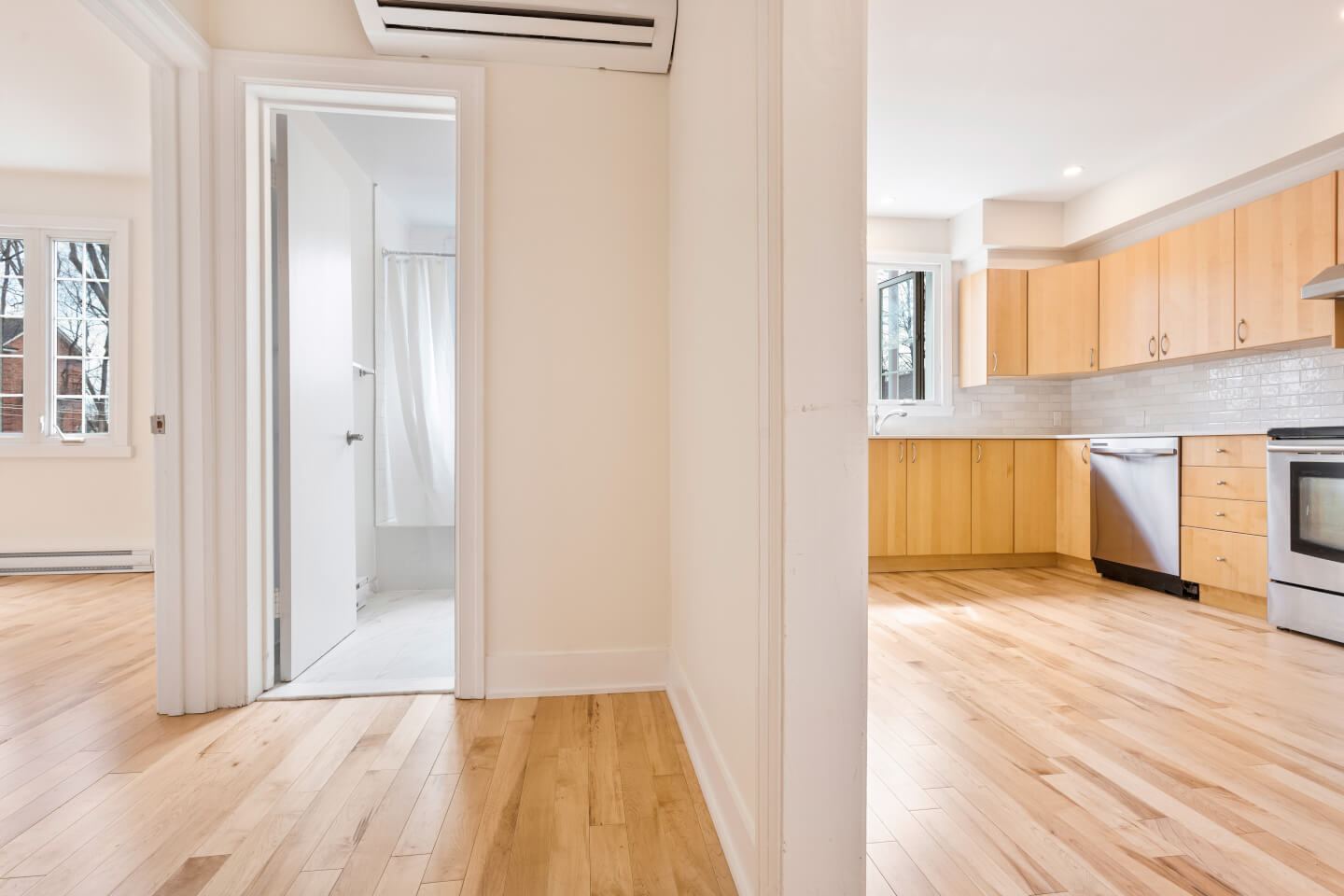 Lovely upper apartment renovated with elegance and quality, bathed in natural light. Enjoy spacious a living room open to its dining room, as well as a newly renovated kitchen equipped with a Quartz counter and a dinette area with a sunny balcony. You will find two good-sized bedrooms as well as a renovated bathroom. This property is available to rent for $1950 per month, fully equipped and unheated. On-street parking.