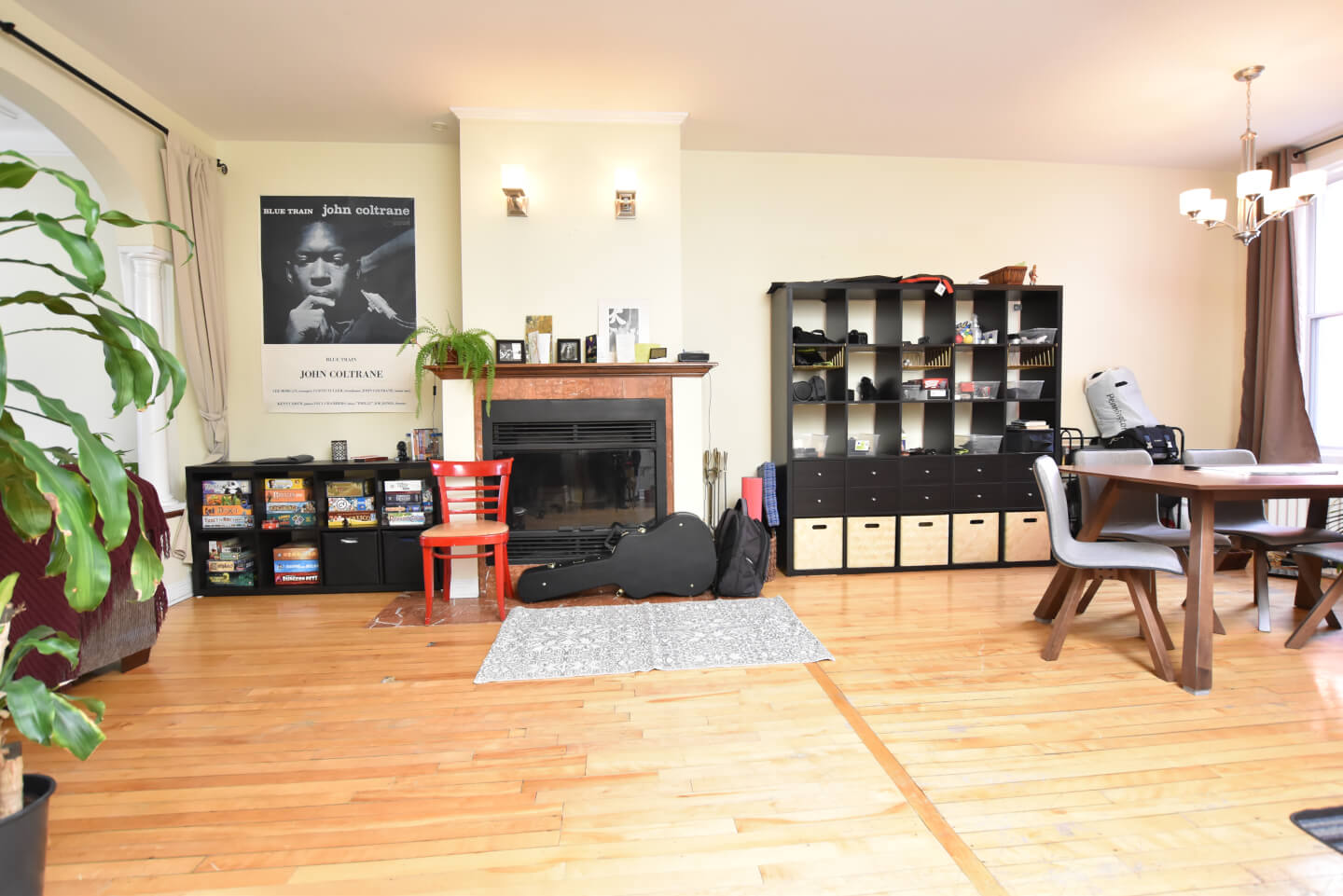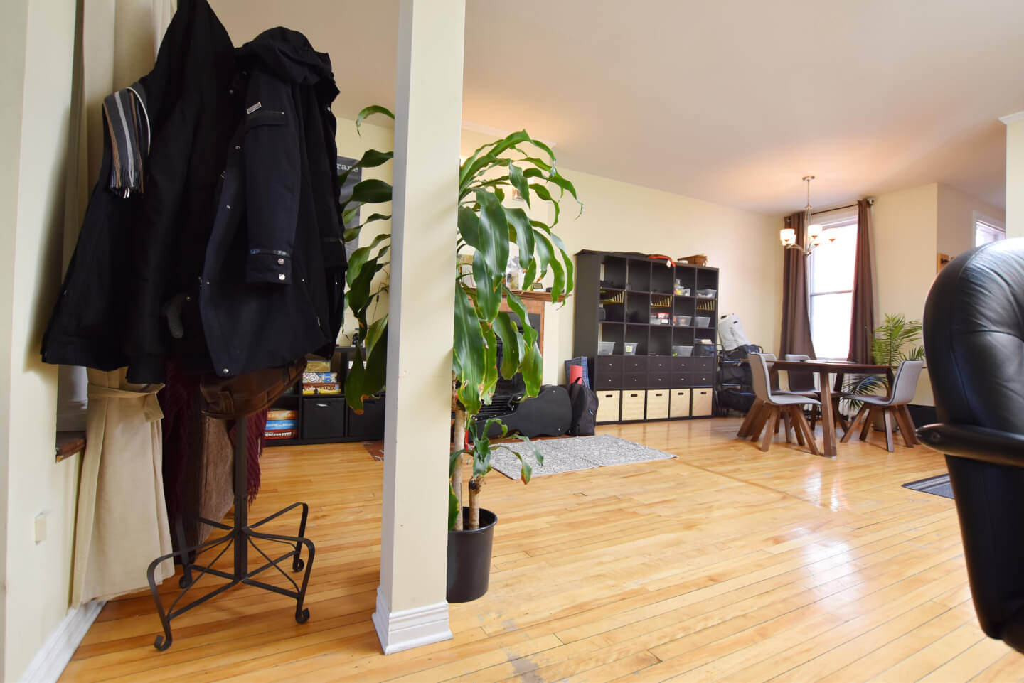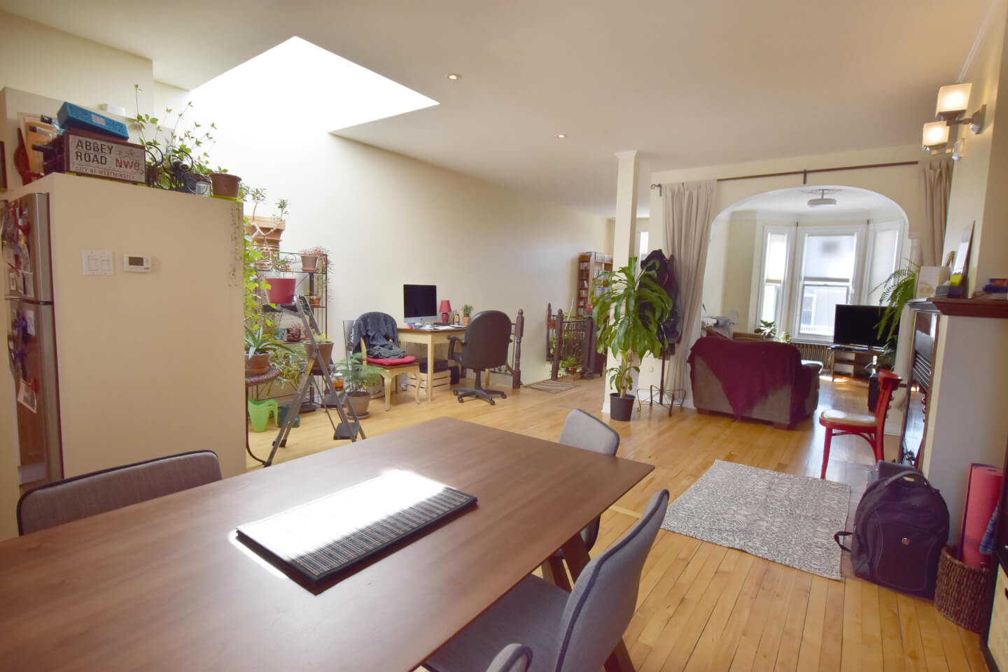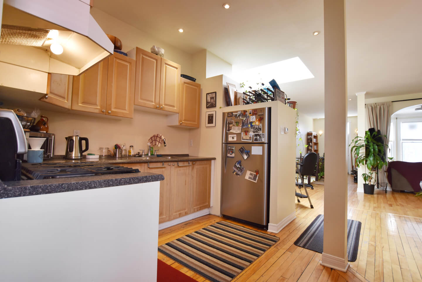 Upper was nicely renovated open plan, very bright/ skylight. Kitchen open to dining room and living areas, 1 den with columns, 1 bedroom; walk-in with washer/ dryer, nice bathroom