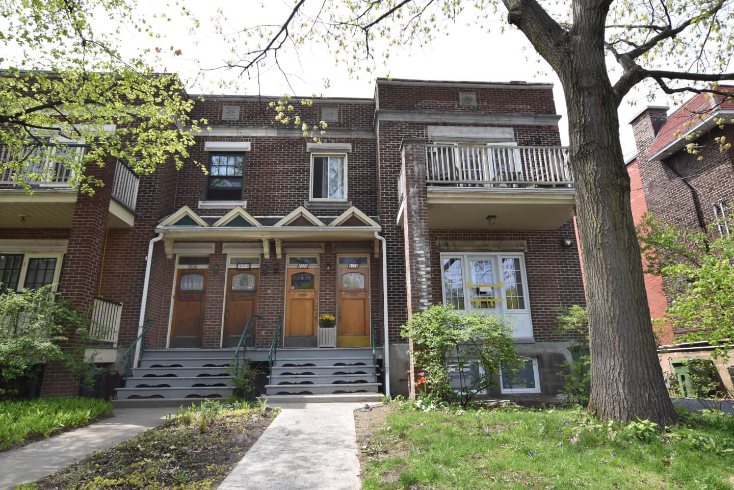 Upper CONDO on Marcil Ave., in the heart of the Monkland Village! The unit has a nice flowing layout with lots of old charm & woodwork. Lovely living room with front balcony. A wow of brightness at the rear dining room open partly to the kitchen (yours to redesign or update), rear balcony, older bathroom. Two good-size bedrooms and 2 smaller bedrooms. Good space and height in the basement, access to your own indoor garage.