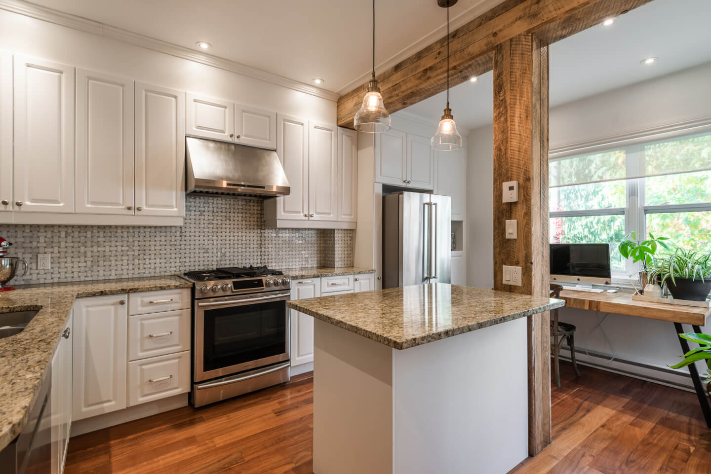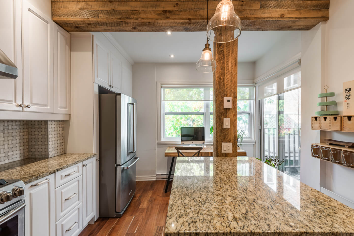 Spacious new kitchen 2017 Granite countertop and marble mosaic back splash, Central Island, new wood floor