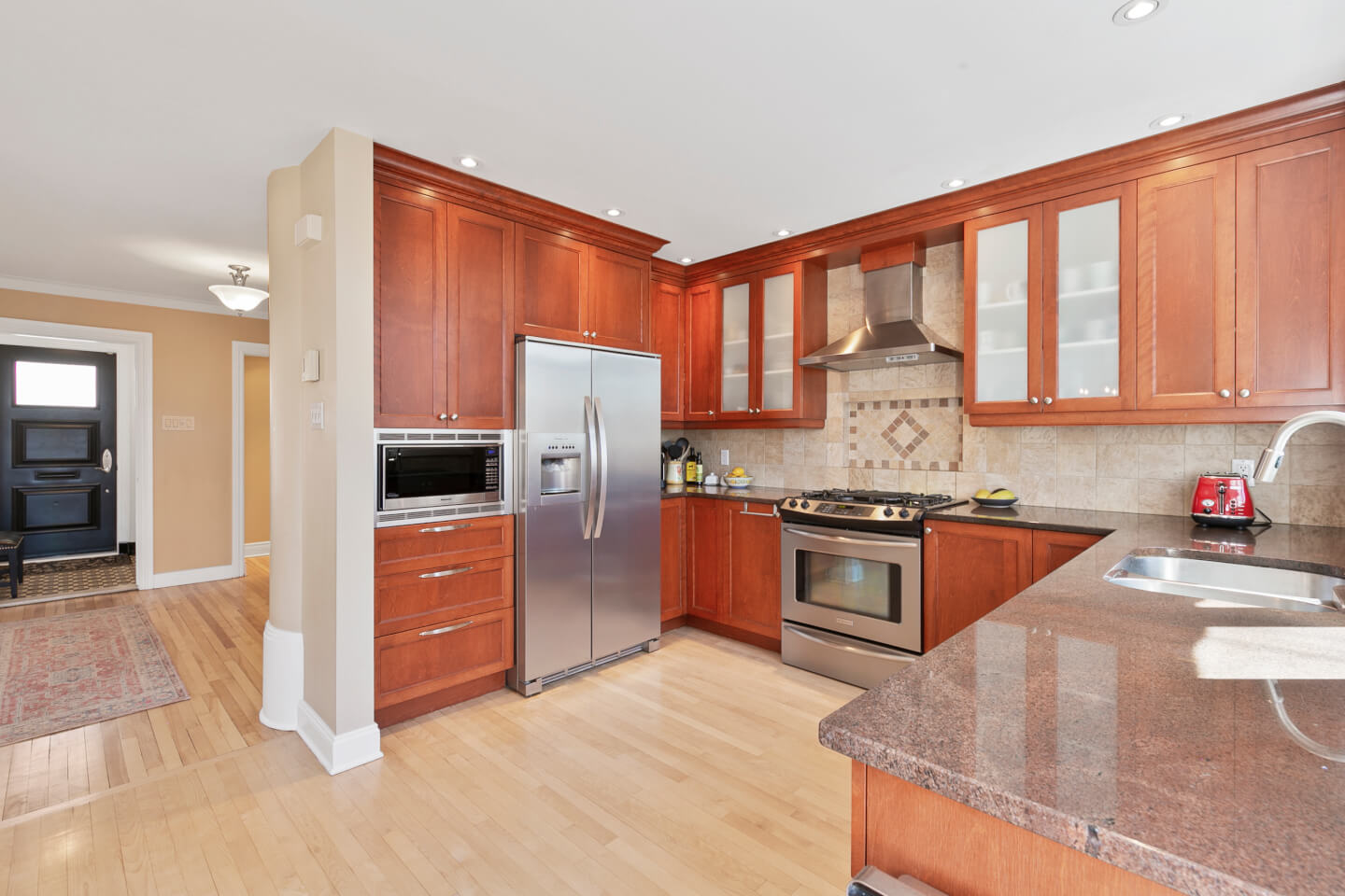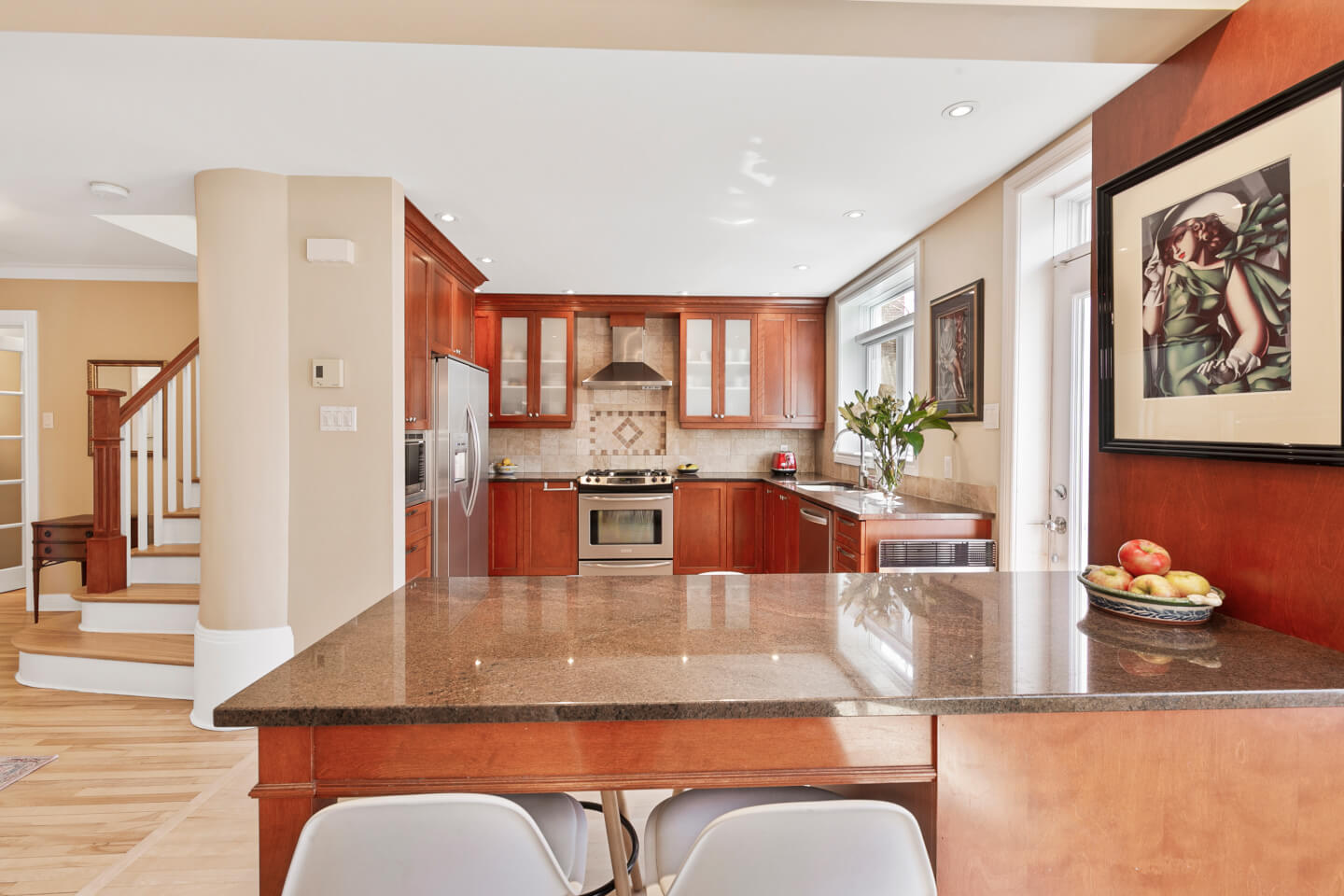 2007 Kitchen, wood cabinet, Granite countertop, eat-in breakfast Island, wood floor
