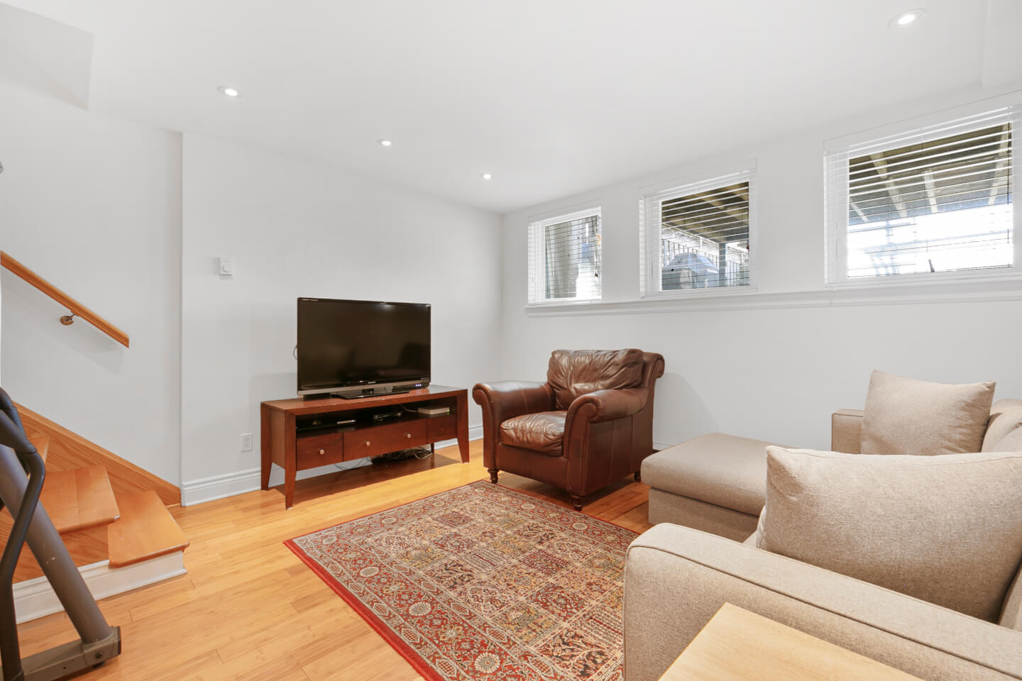 Inclusions: all kitchen appliances, washer and dryer, all window treatments, all light fixtures (other than hanging light fixture in dining room and hanging light fixtures in kids’ bedrooms), mirror in basement bathroom, motorised awning for back deck (with remote), remote and A/C wall unit, garage door openers (2), all in as-is condition.