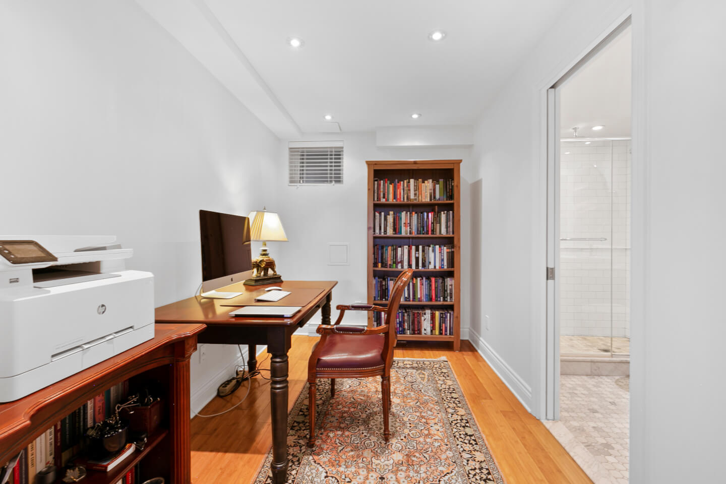 Bamboo floor_Ceiling height 7’ 6’’ Family room Office or Bedroom with Pocket French doors Bathroom 2011, shower Laundry and storage
