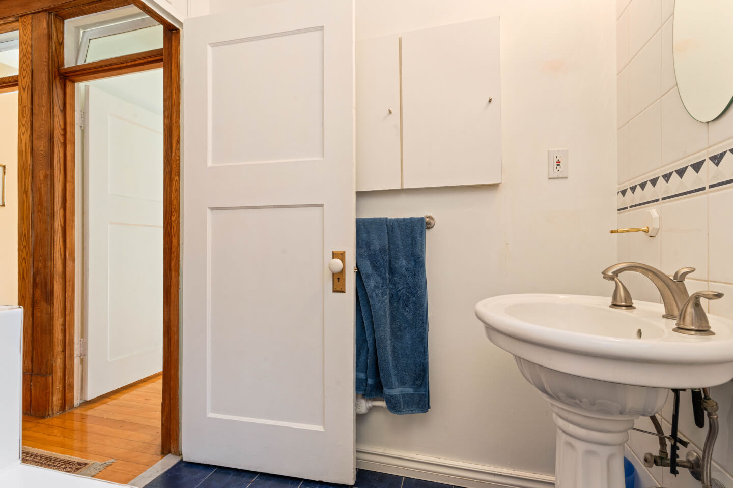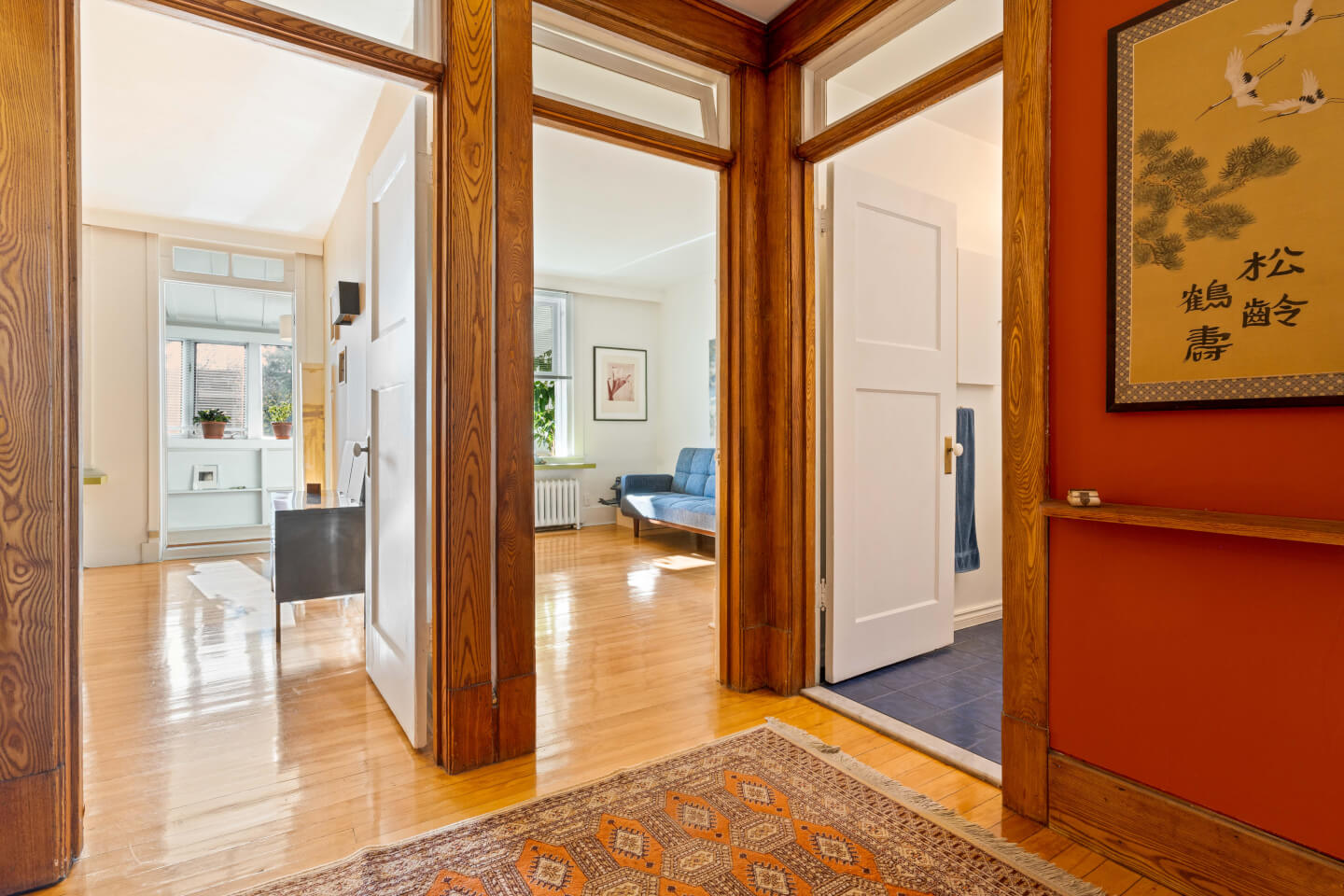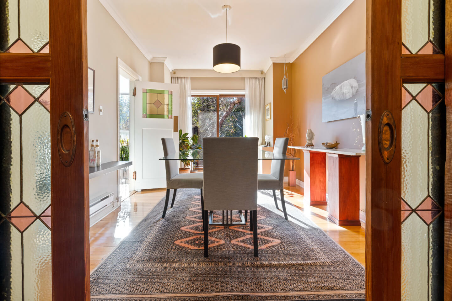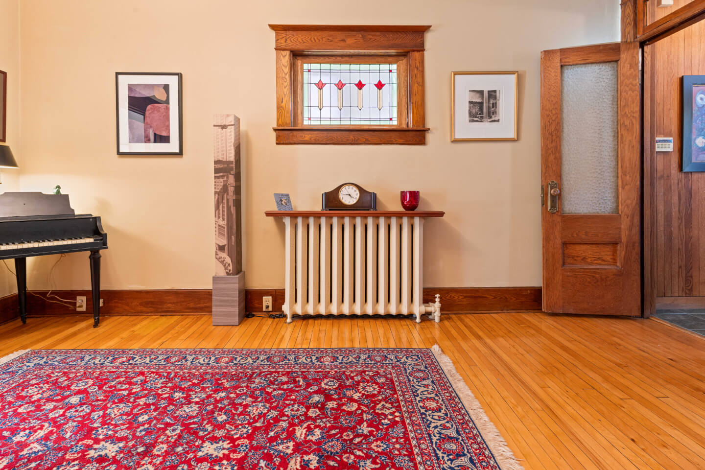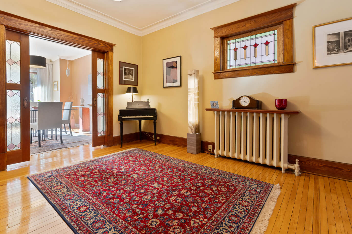 This elegant single-family home with its spacious cross-hall plan, living room and dining room, offers a refreshed 90’s kitchen and open to its sunny dinette.