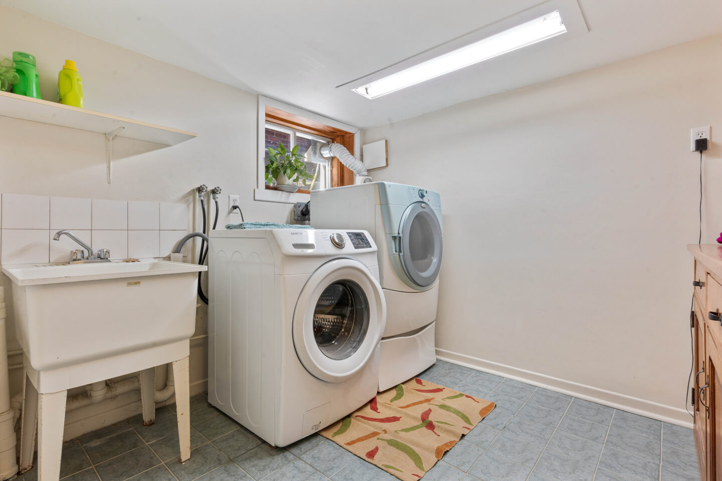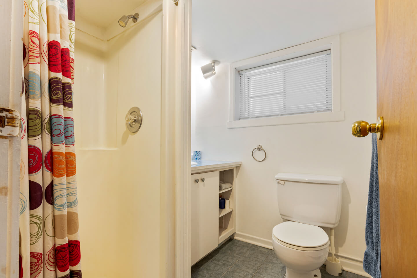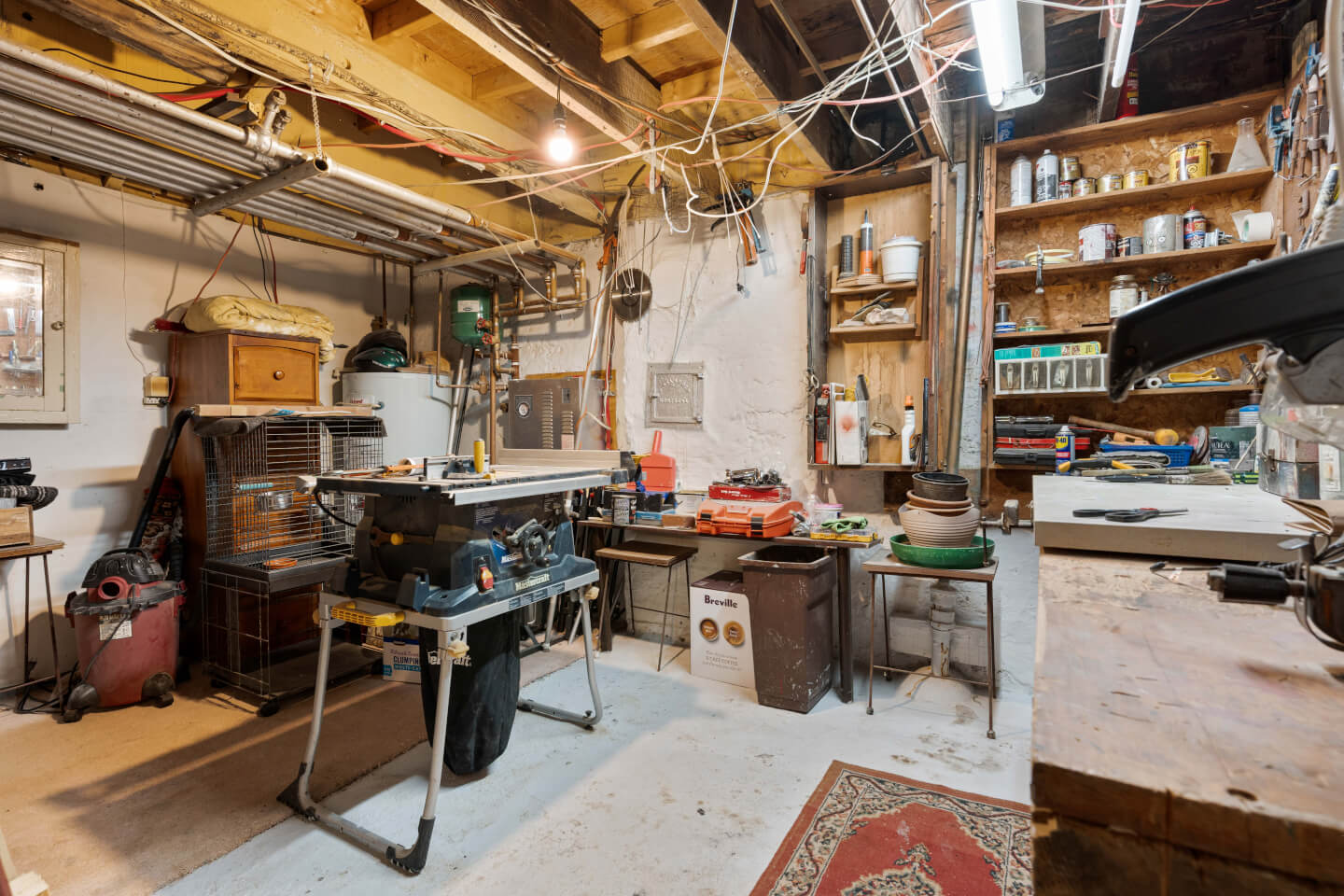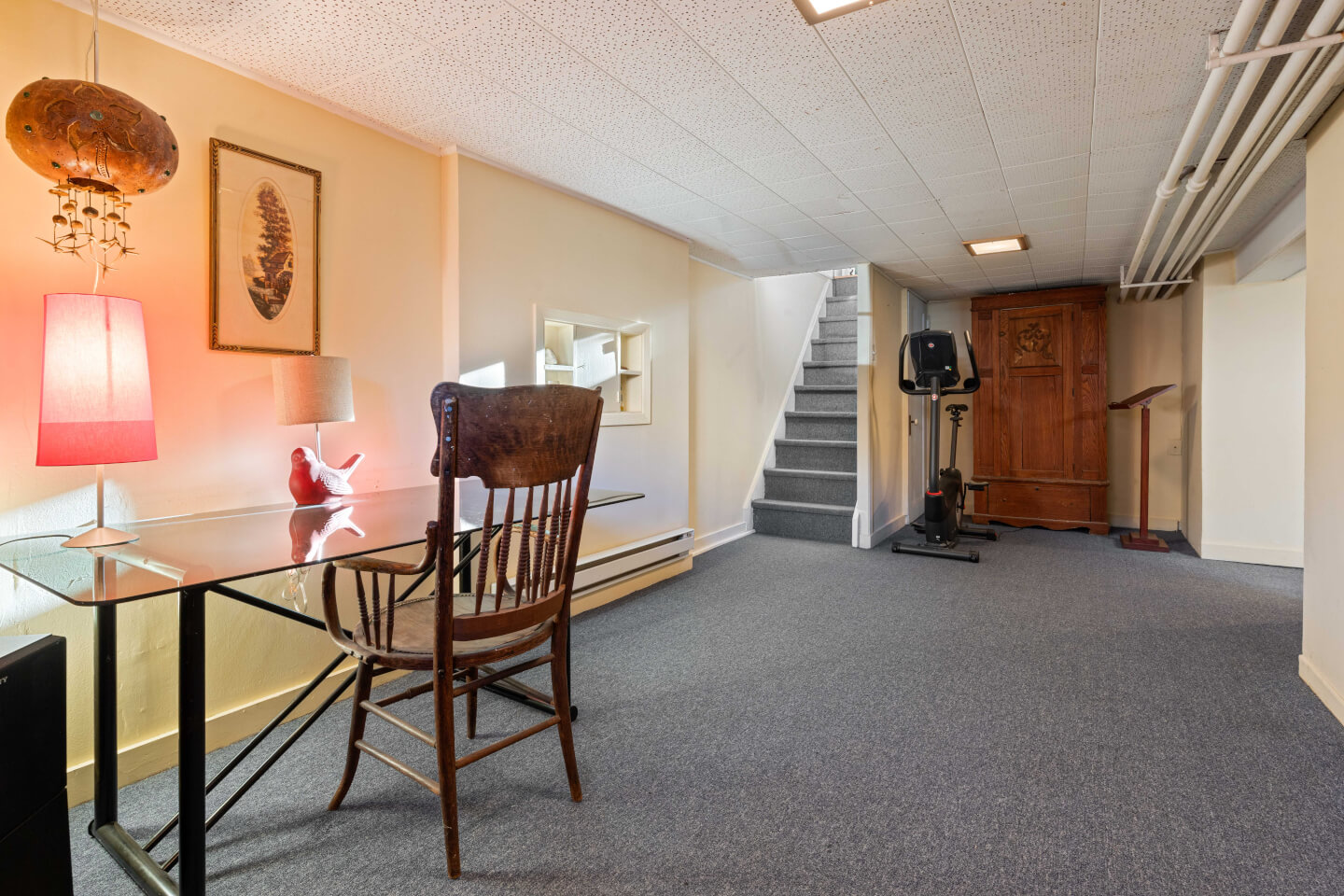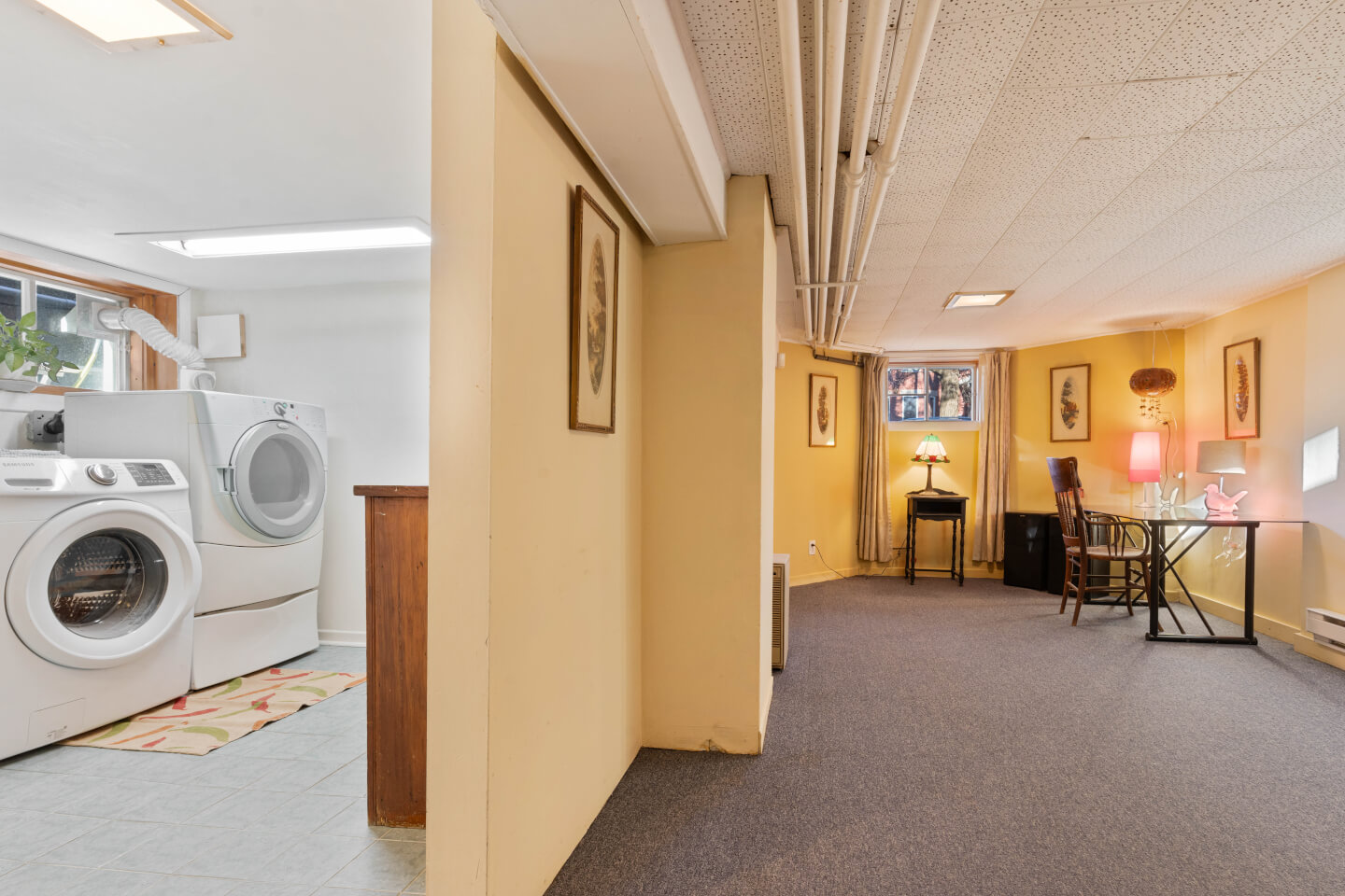Finished basement, on carpet Ceiling height 6’ 4’’ Family room with windows in Bay Bedroom Bathroom/ Shower Laundry room Mechanical room/ workshop/ storage; on concrete floor + exit to the garden