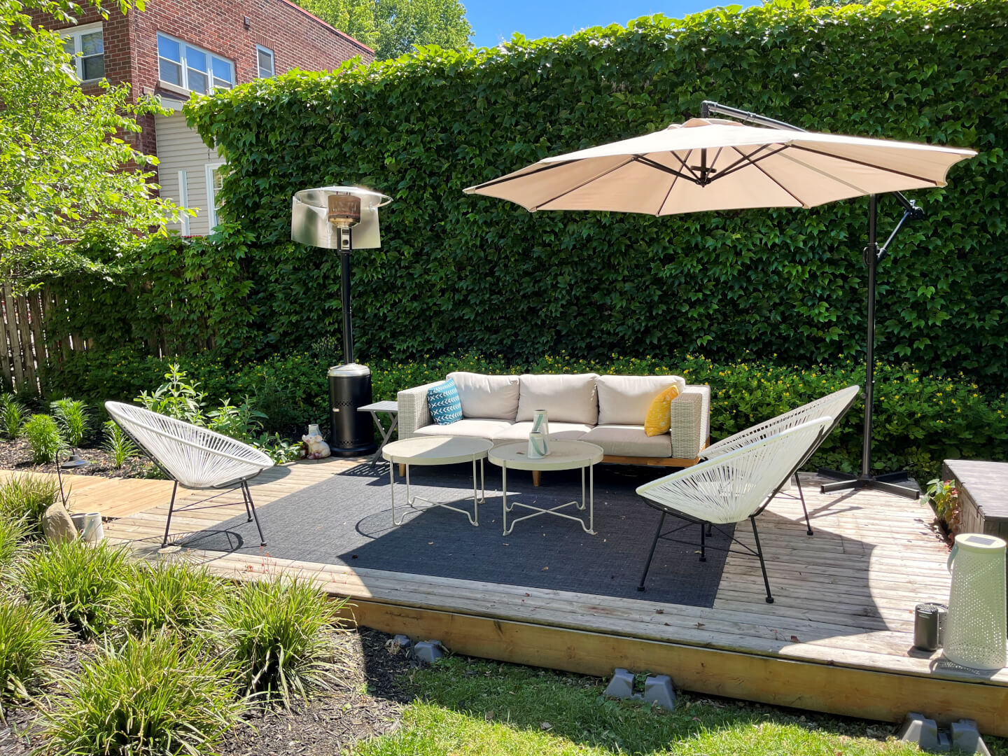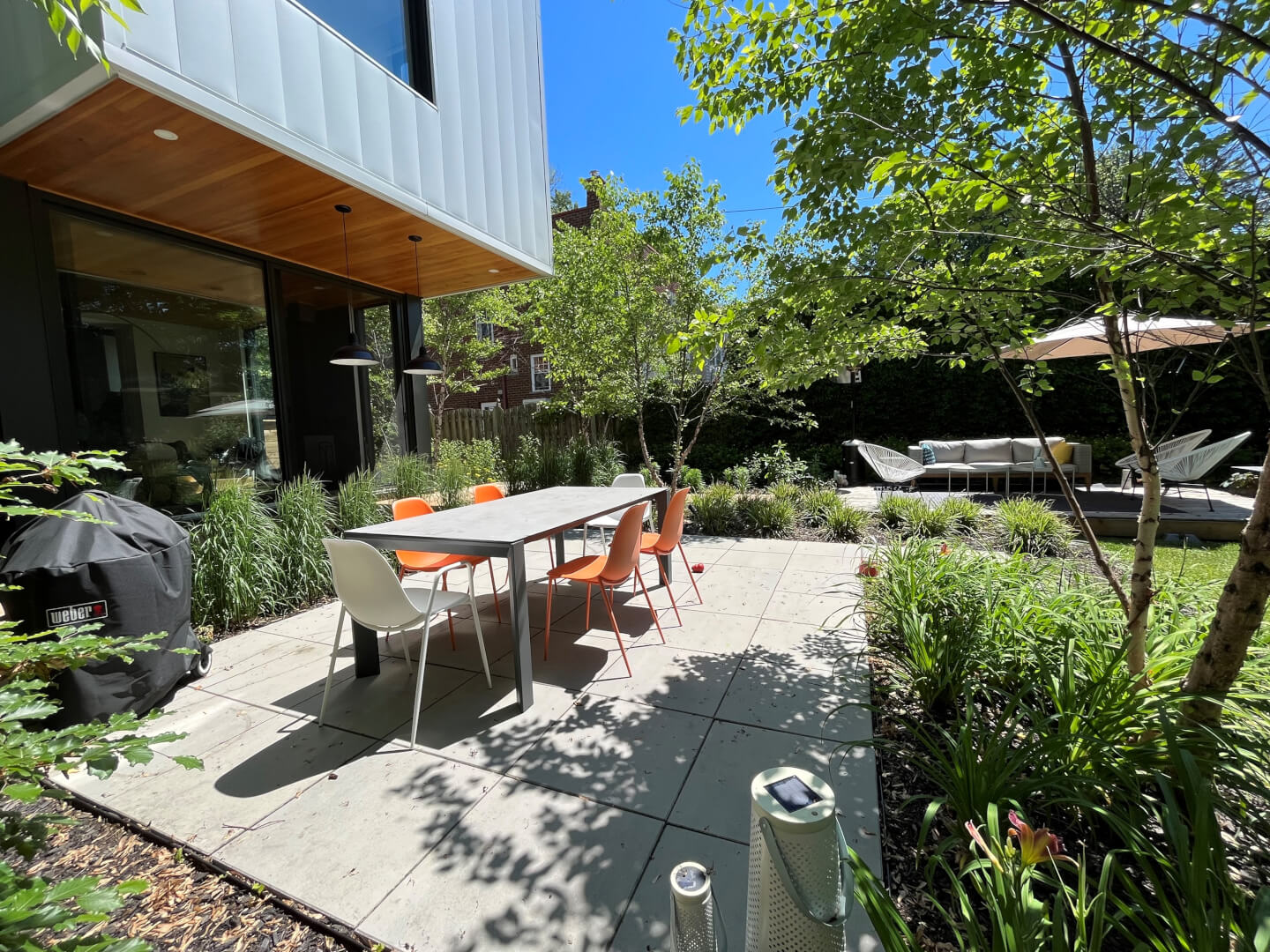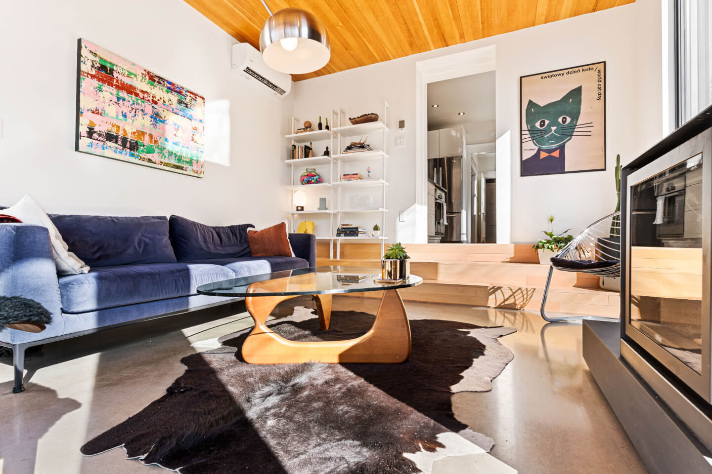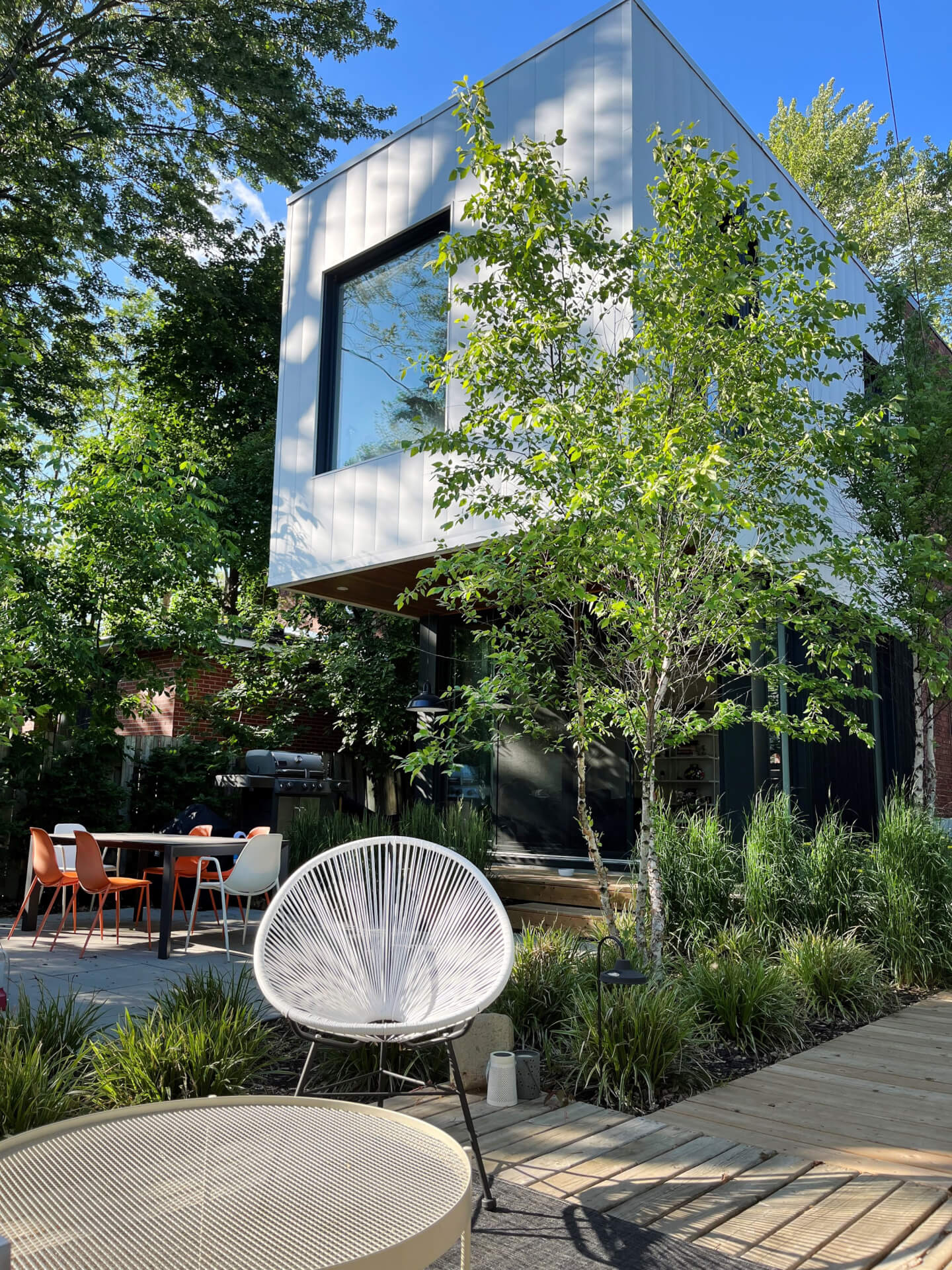Access to the beautiful family room, heated concrete floor, 2020 wood fireplace in accordance with city regulations, A/C, wall-to-wall fenestration for total immersion in the landscaped garden