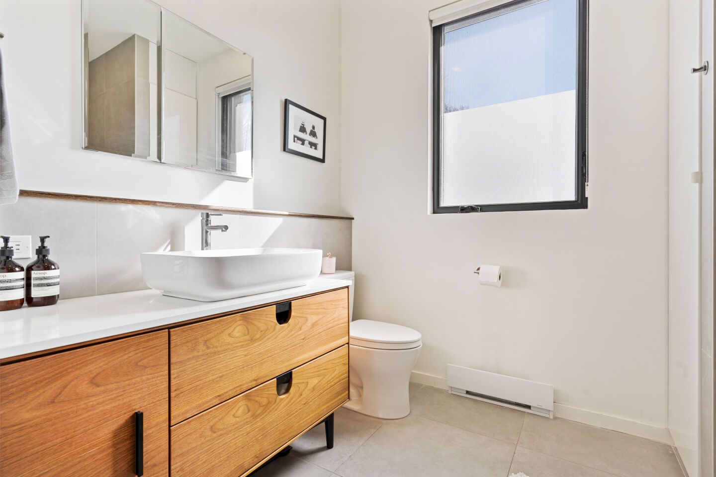 Imagine yourself living in nature with panoramic windows harmoniously assimilated to the pure and modern curve of your Master bedroom suspended in this universe.