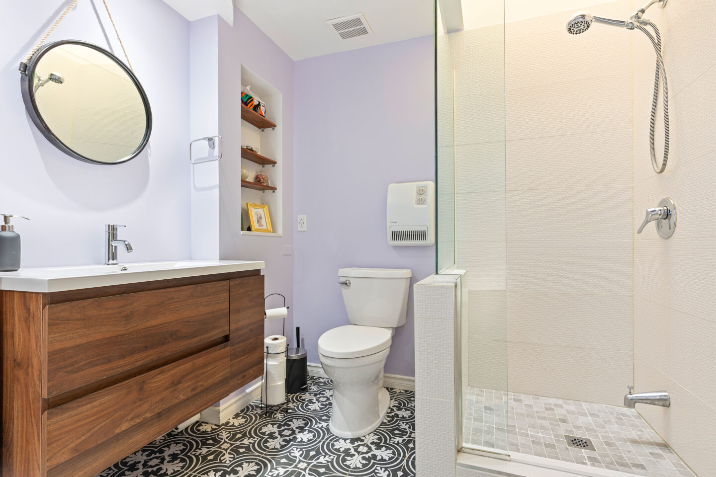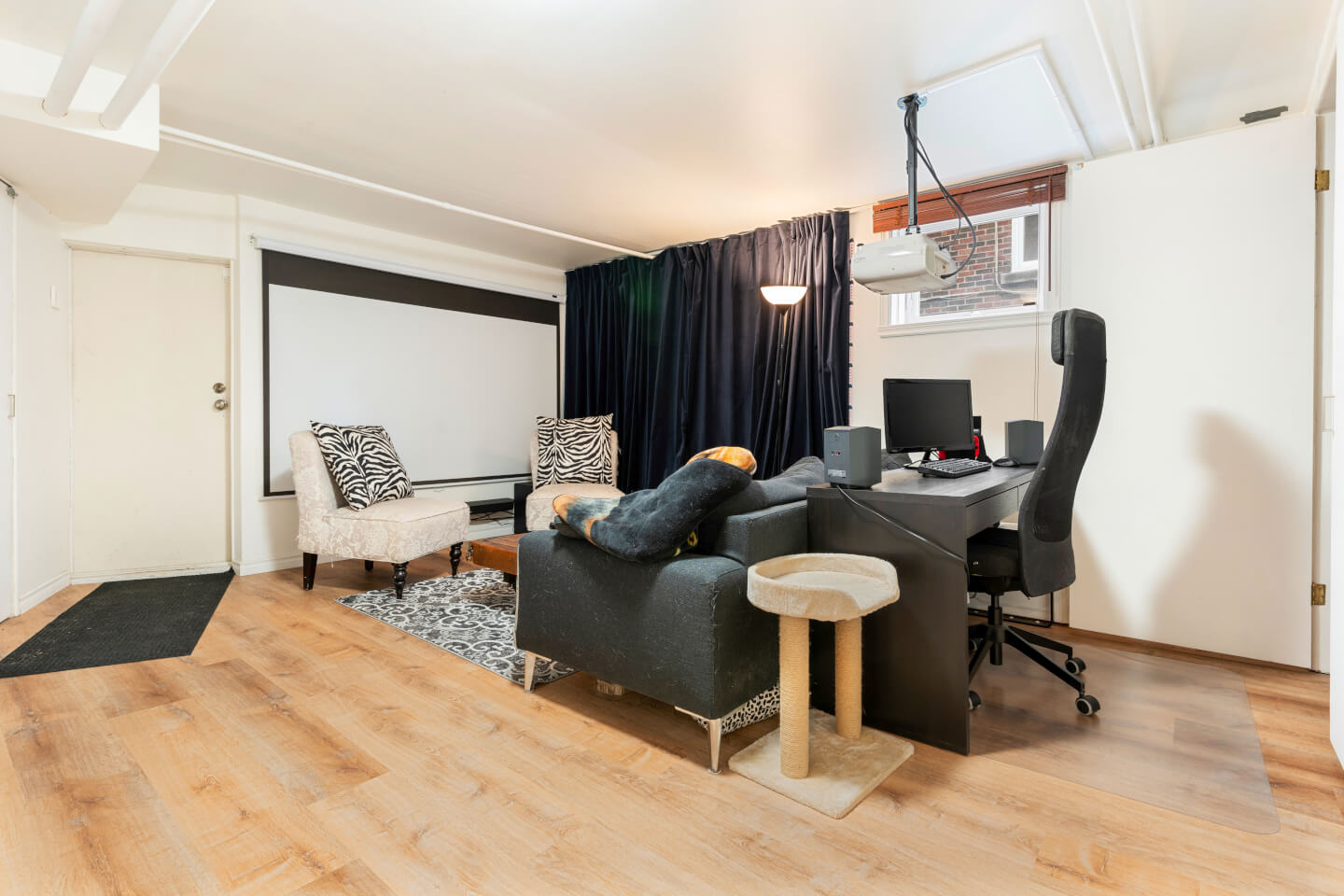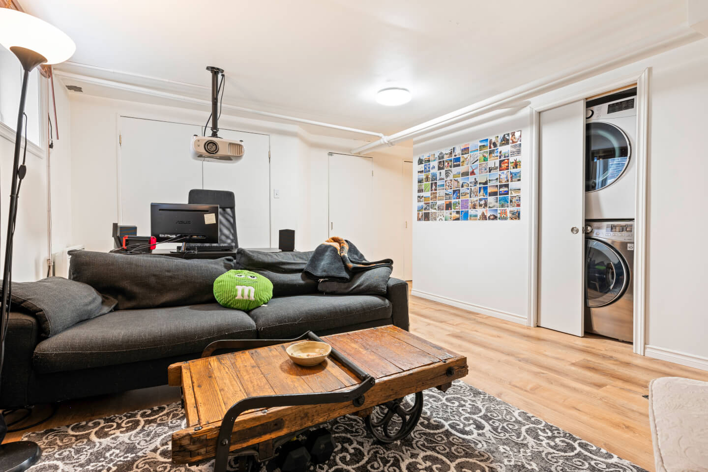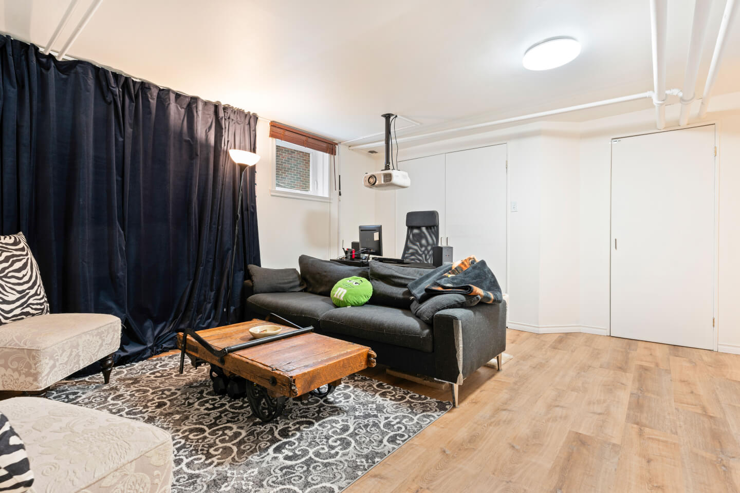 Finished basement, with floating floor Ceiling height 7’-4’’’ Family room or bedroom Bathroom laundry and storage Indoor access to the Garage