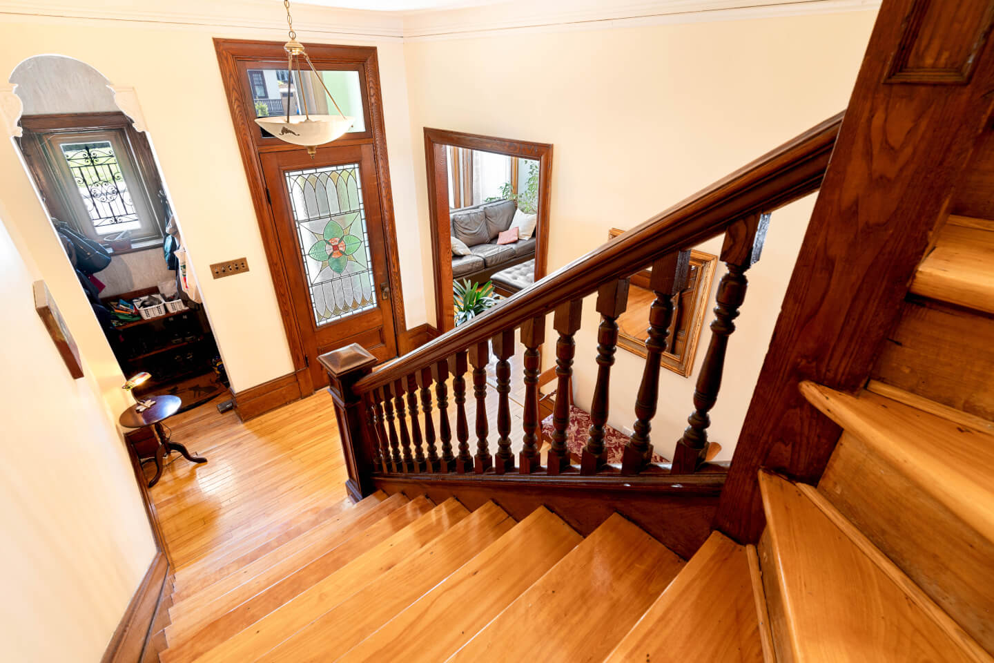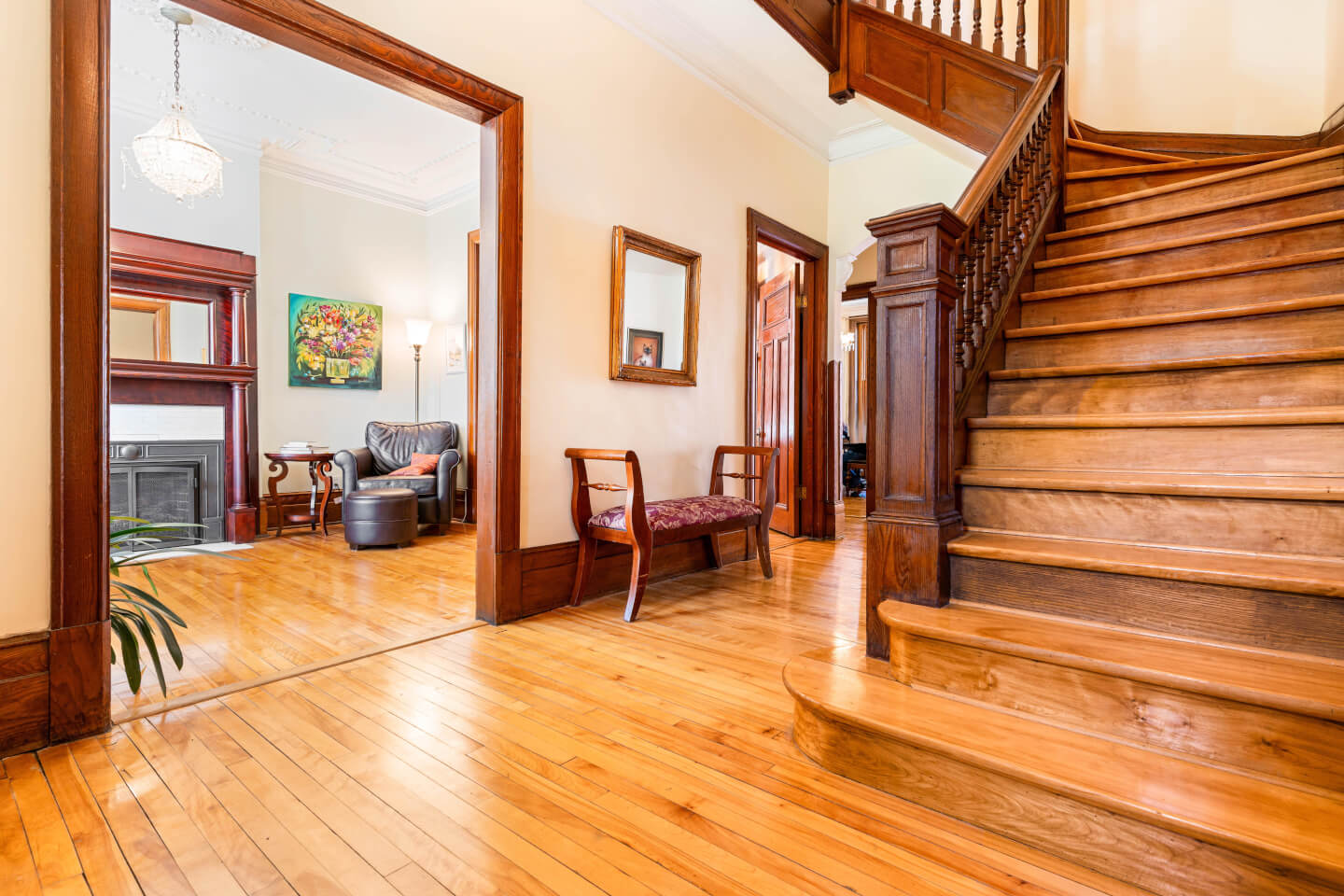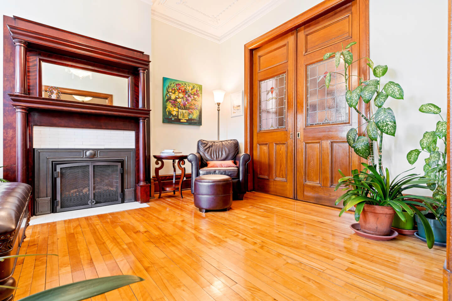 Living room, gas fireplace, original Mantel fireplace with spectacular details Original decorative 2nd fireplace on the second floor