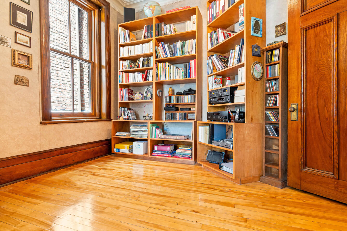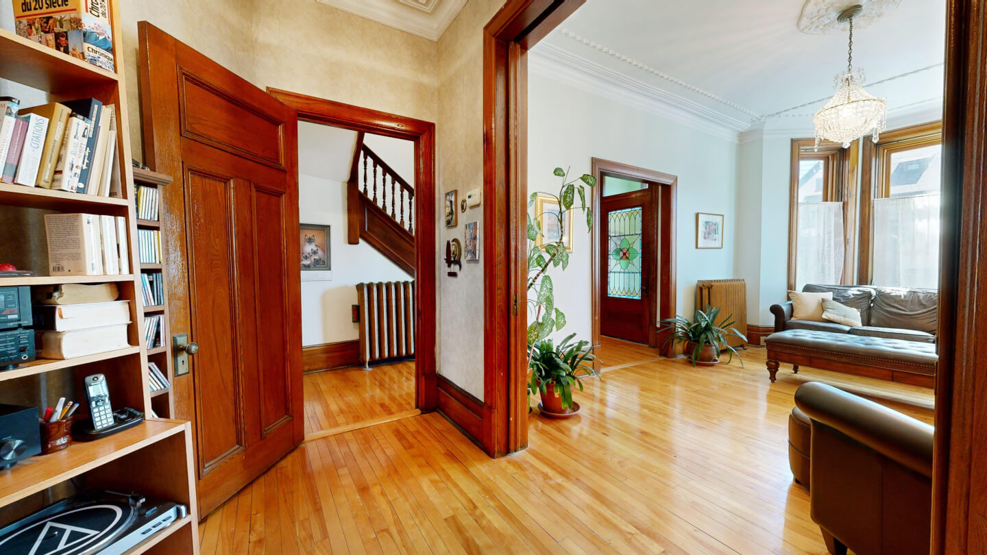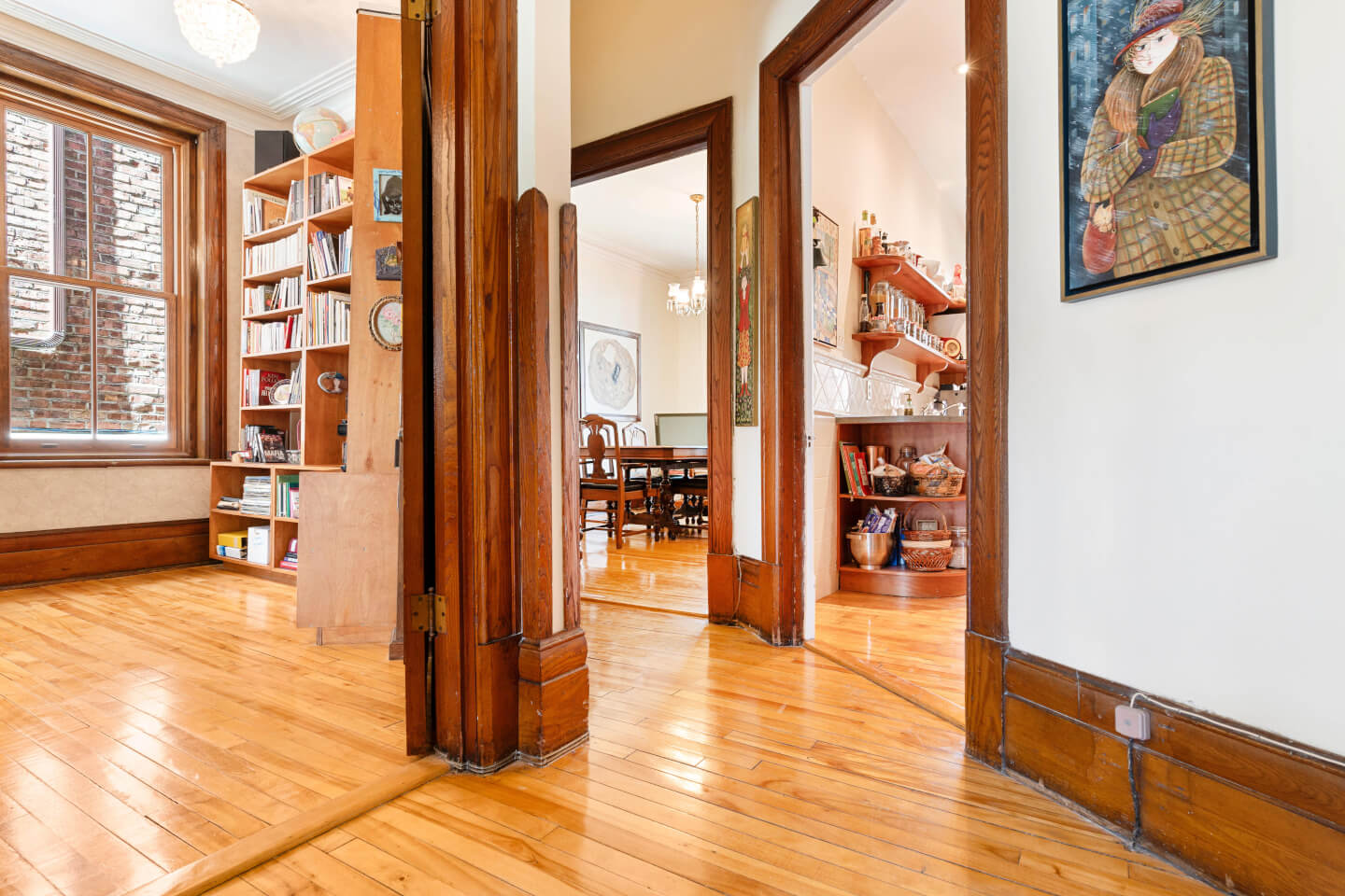 Surprise! Find an additional room, library or music room to the living room with beautiful sliding doors
