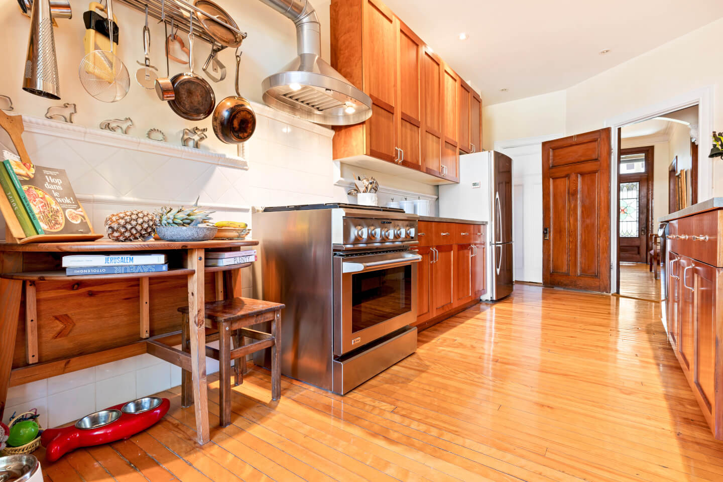 A kitchen that blends with the traditional style and direct access to the outdoor spaces and its famous alley, Kingdom of Children!