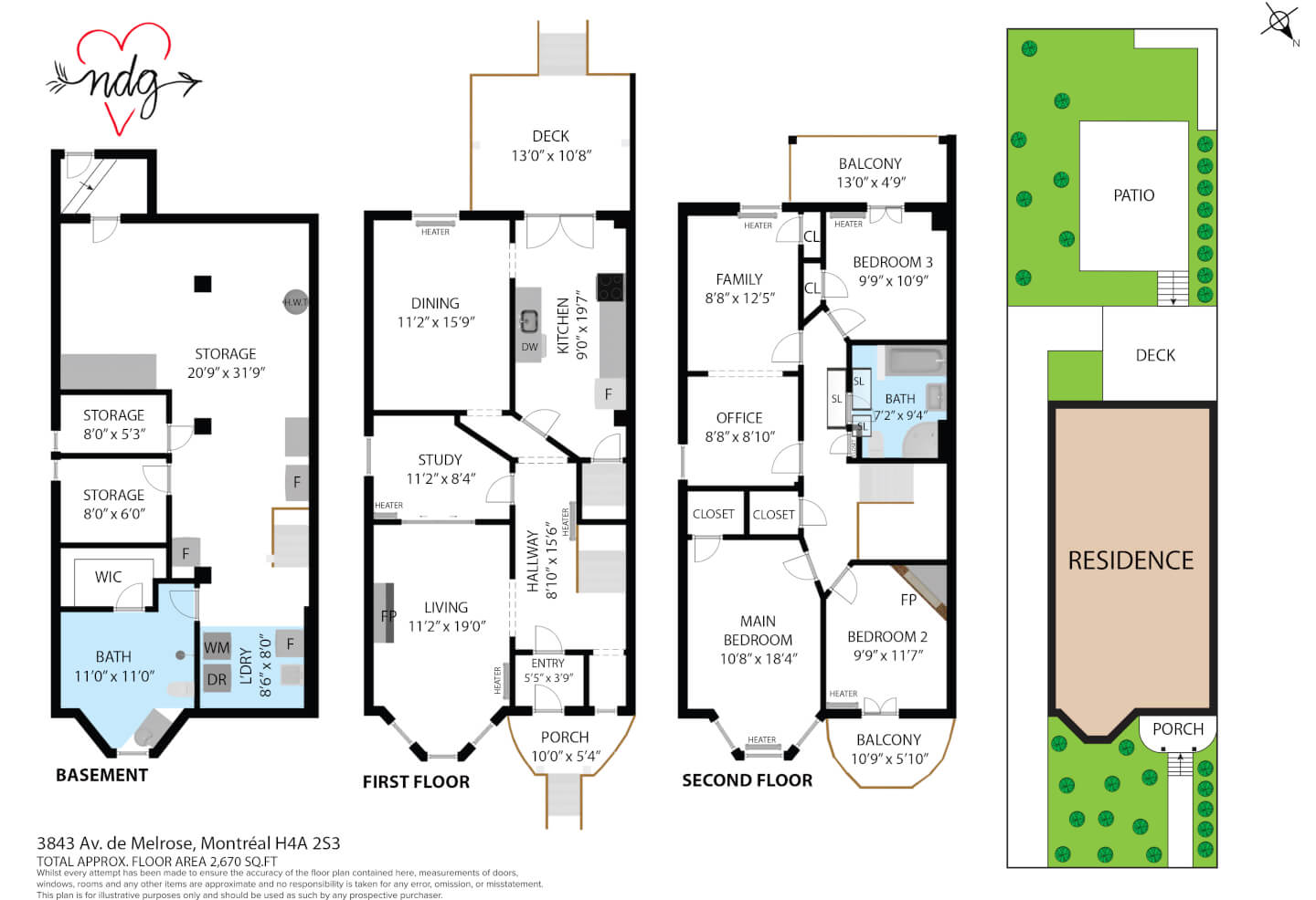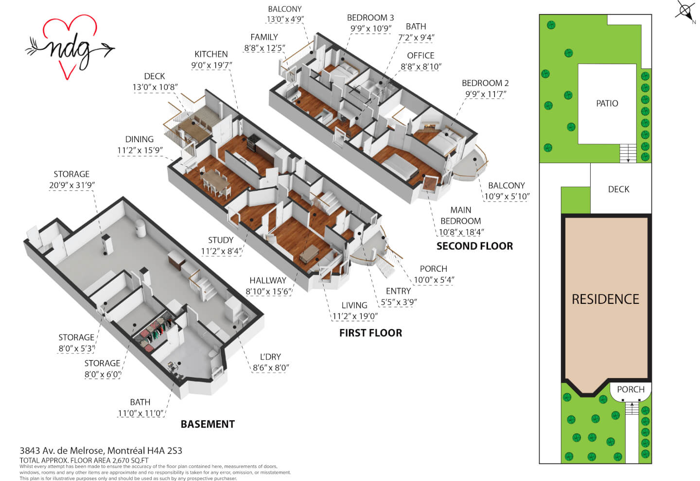 + 89.20sq. m. (960sq. ft.) for the basement *Based on the evaluation role of the City of Montreal
