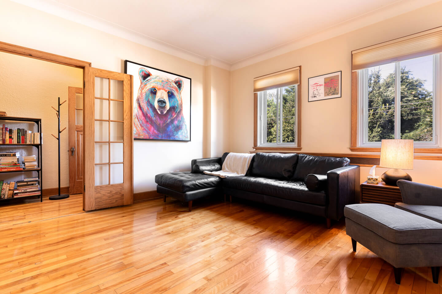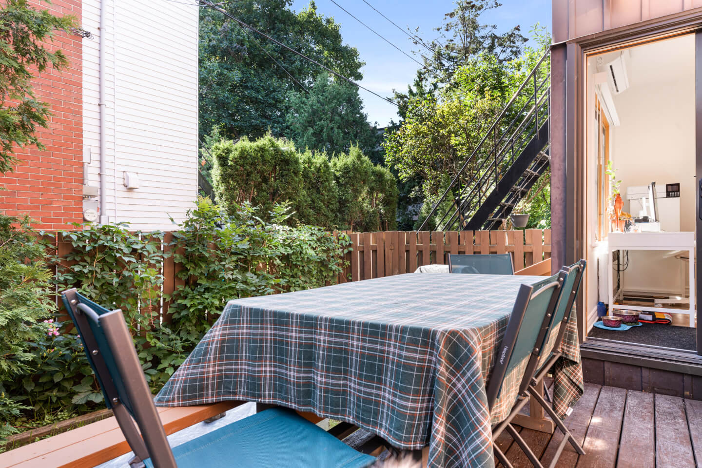 Bright lower undivided unit directly across from Macdonald Park. Close to schools and services, this impeccably maintained property is an interesting alternative to a single-family home. This large ground floor + basement with beautiful woodwork typical of the neighborhood offers a beautiful living room, a classic dining room and a renovated kitchen. 2 bedrooms on the ground floor and bathroom, plus a fully finished basement with a large family room or a 3rd bedroom, 2nd bathroom, laundry room. Exclusive large garage and driveway parking, as well as a workshop! Beautiful back deck with a sunny private west-side garden. A surprise awaits you!