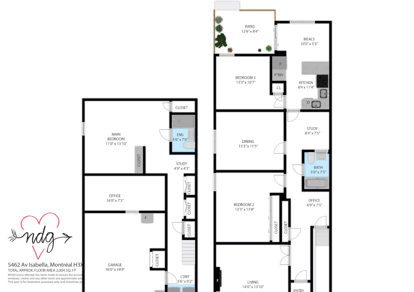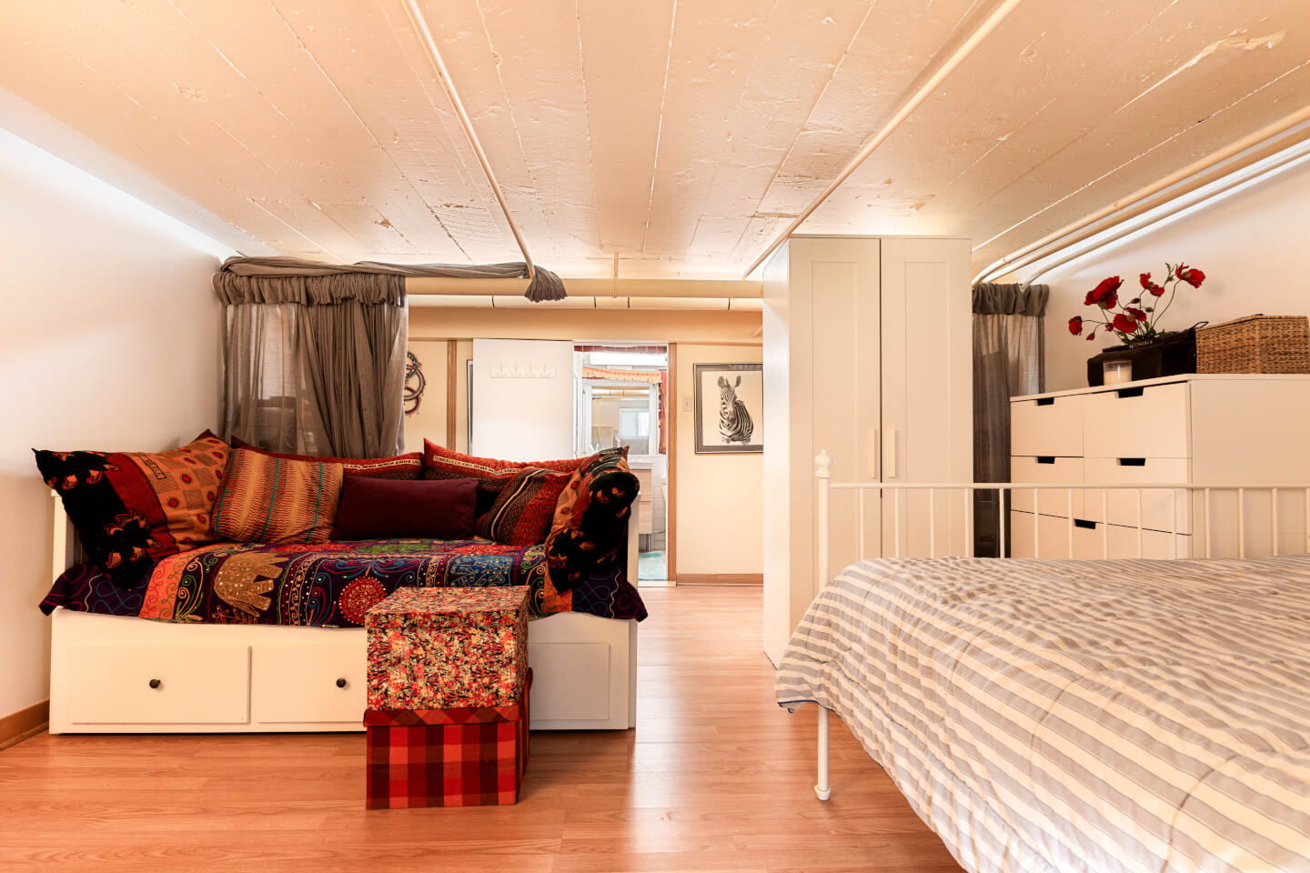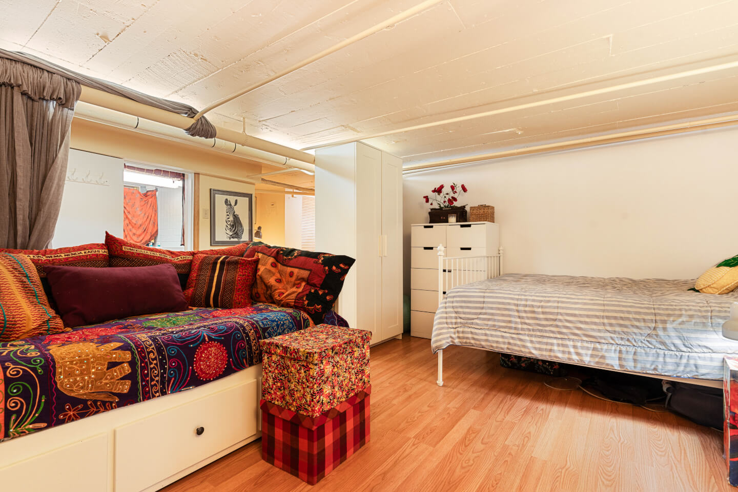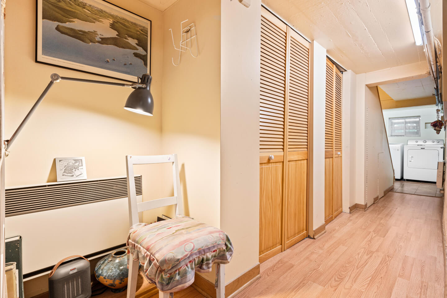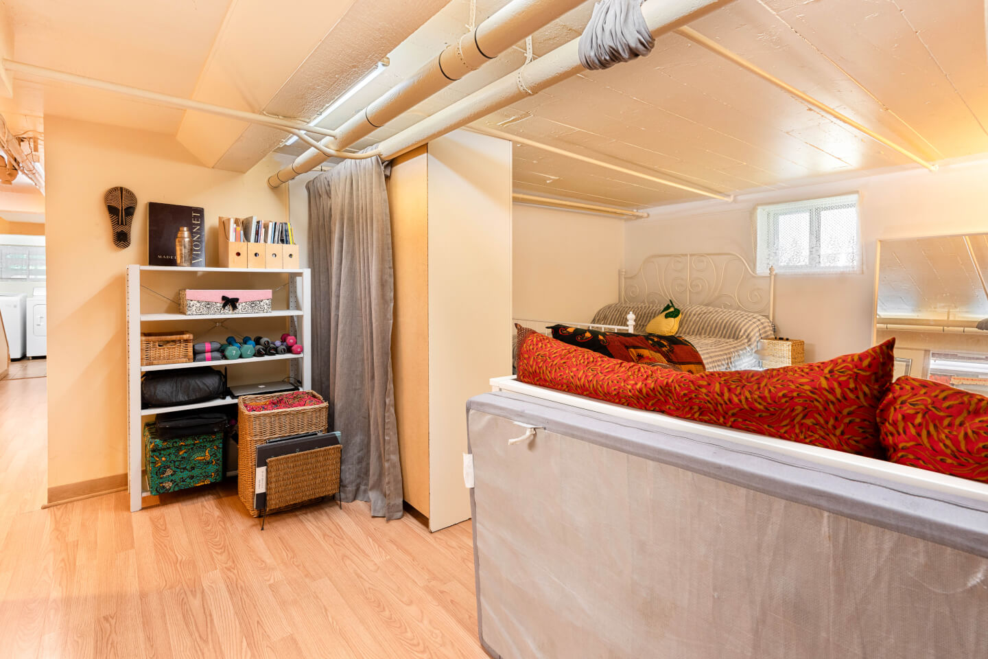 2 bedrooms with ample storage, possibility of converting the dining room into a 3rd bedroom. Basement: Large family room or bedroom