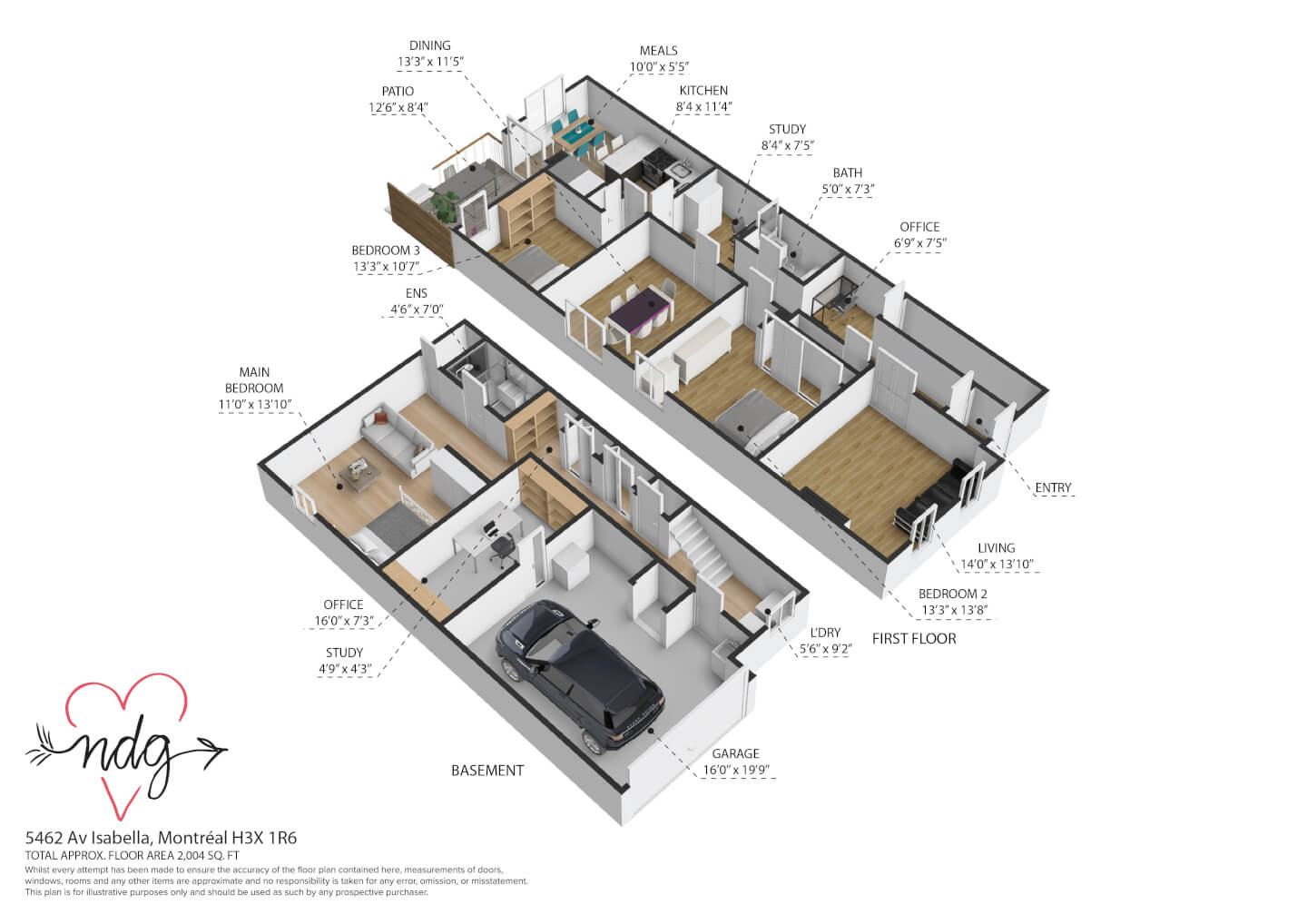 Usage and ownership according to the indivision agreement: 5462 Isabella: first floor, indoor garage, basement, backyard, portion of the front lot that gives access to the indoor garage. 5464 Isabella: second floor, part of the basement (storage area).