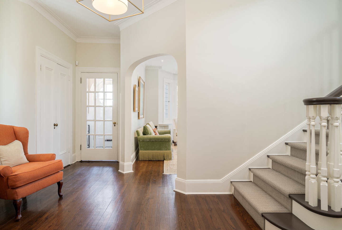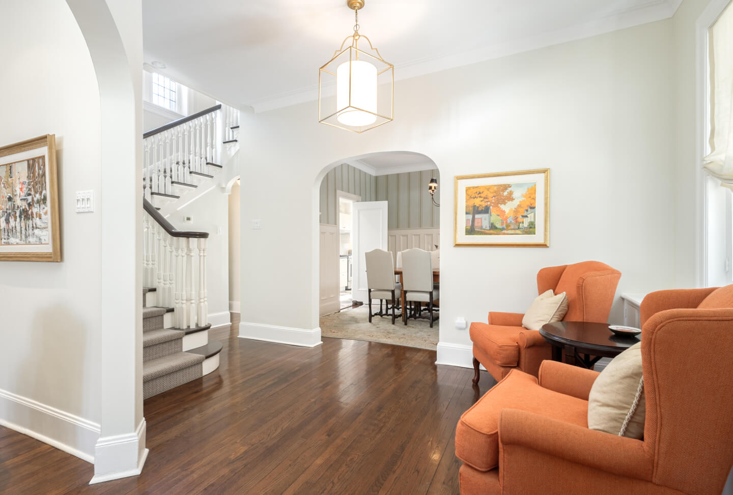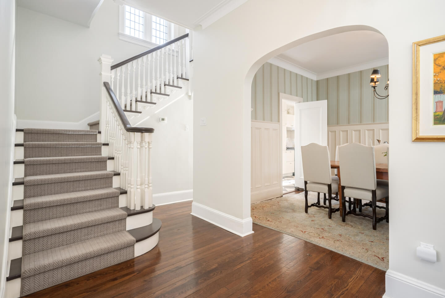 -Grand entryway with gleaming hardwood floors sets a timeless tone.