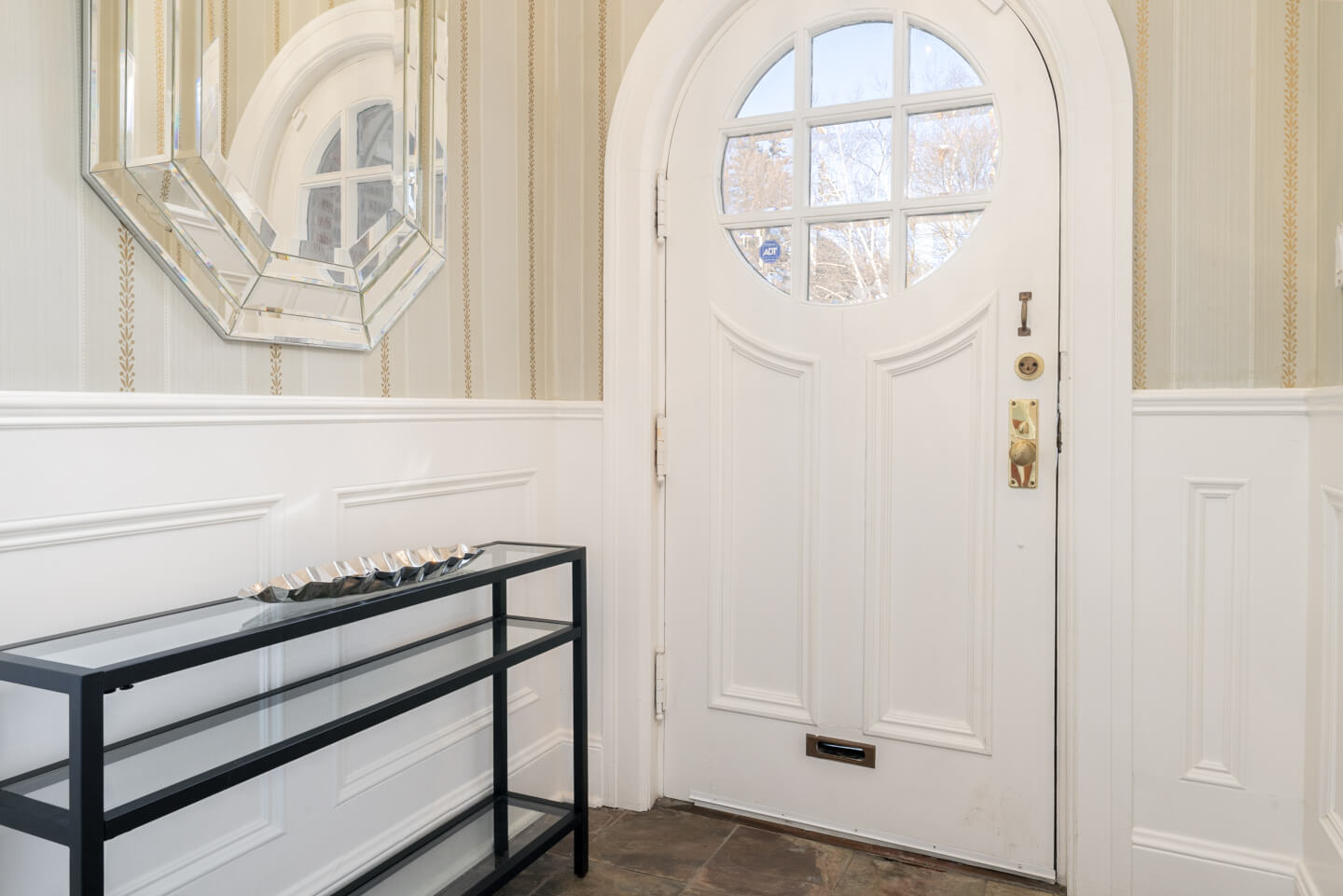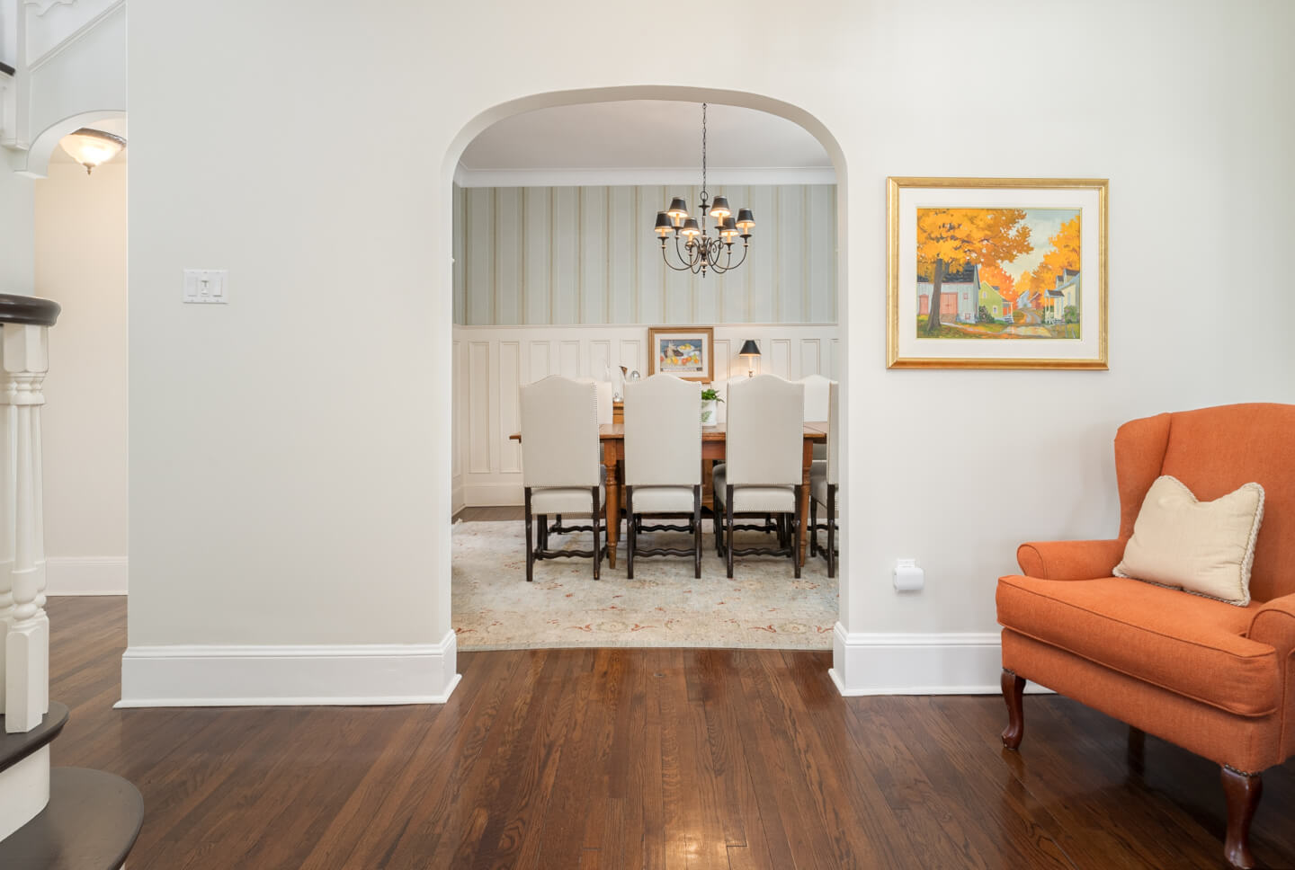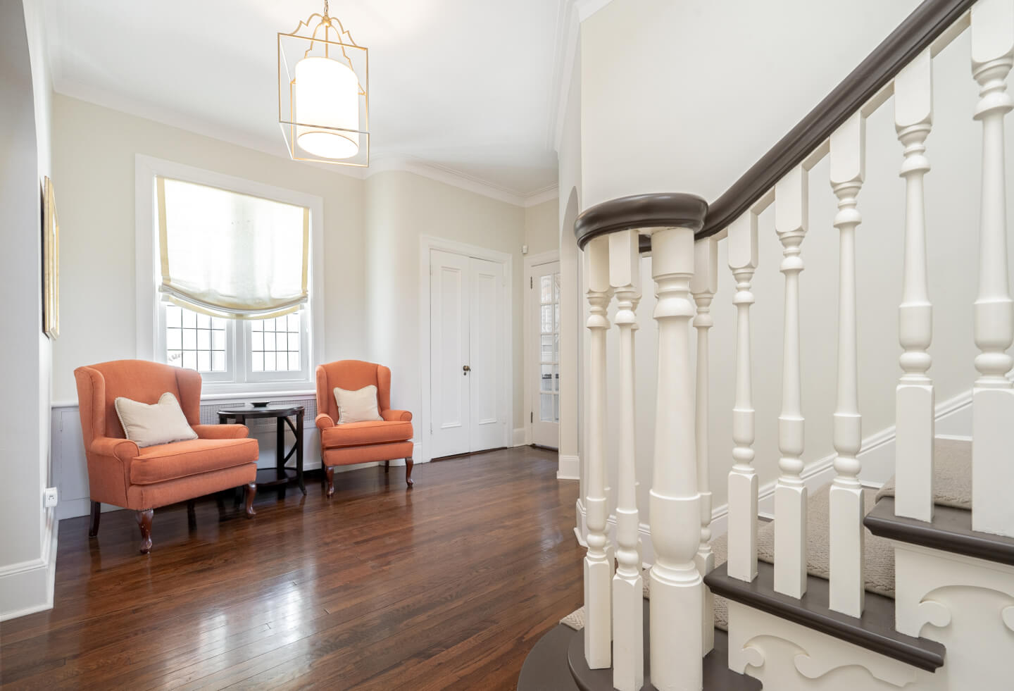 -Grand entryway with gleaming hardwood floors sets a timeless tone.