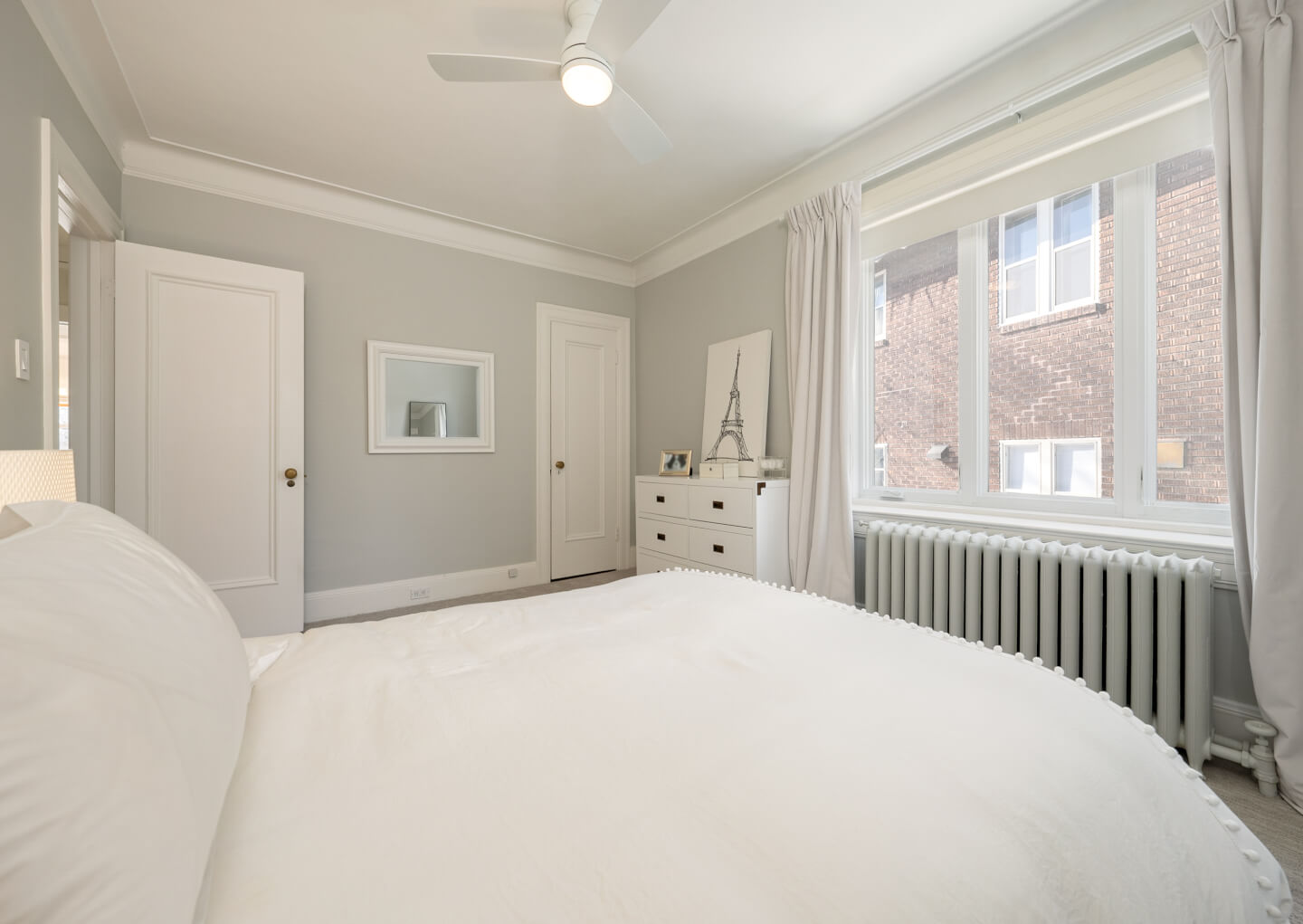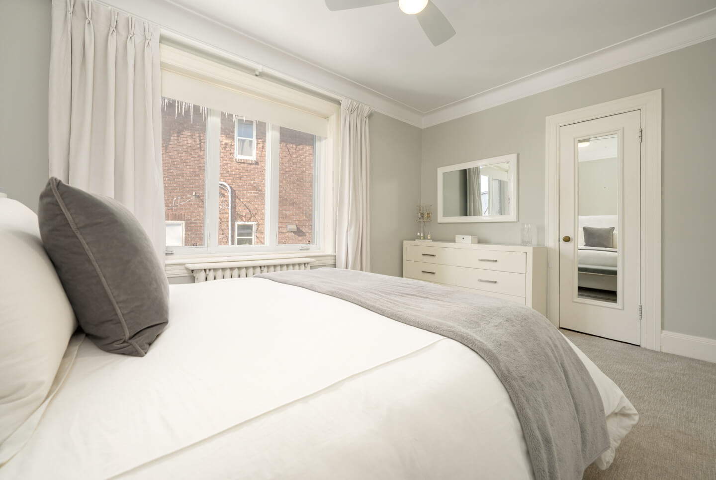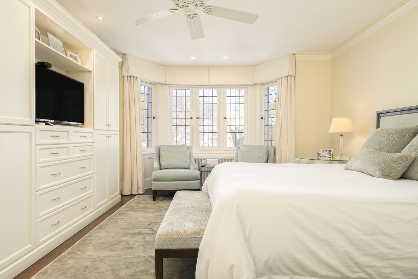 -Expansive primary suite with a walk-in closet, renovated en-suite, and built-in storage.