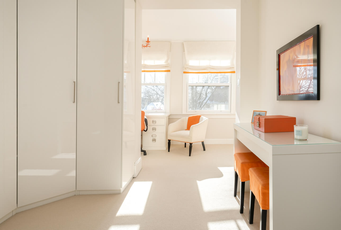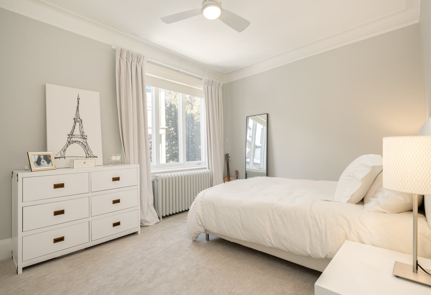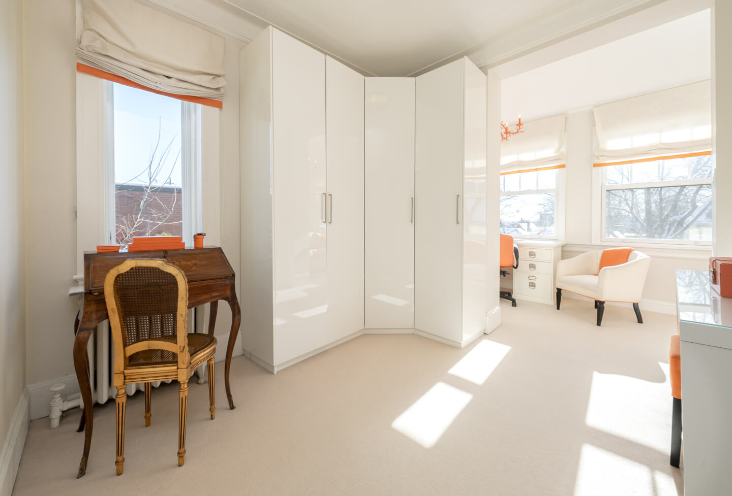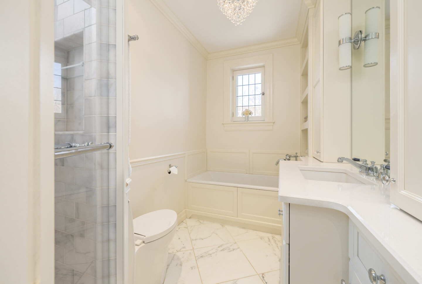 -Expansive primary suite with a walk-in closet, renovated en-suite, and built-in storage.