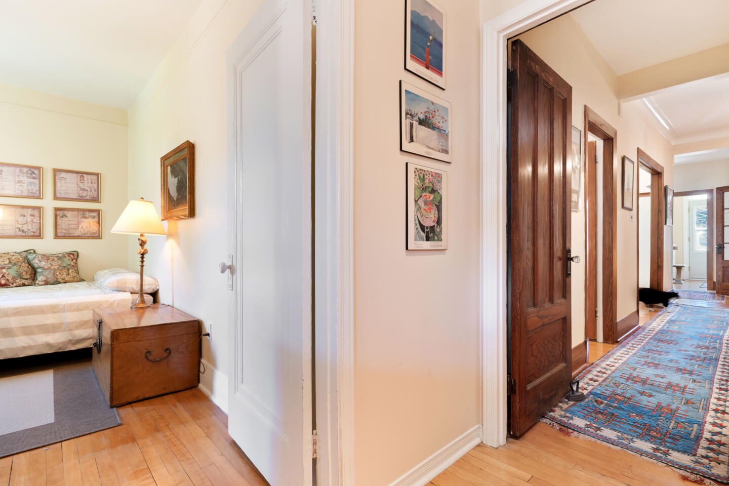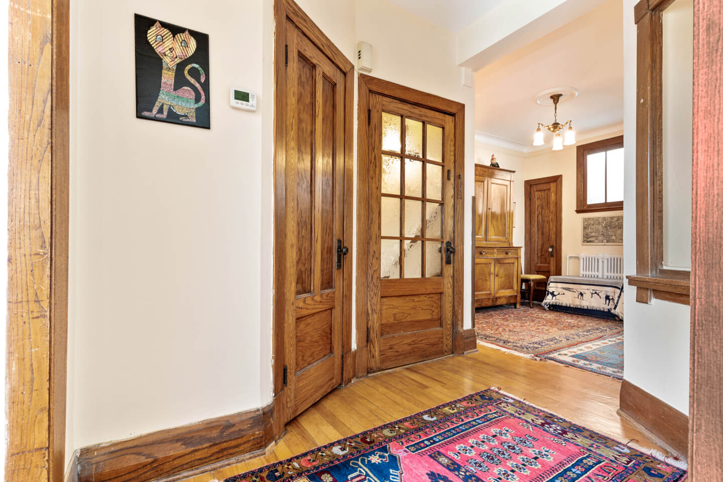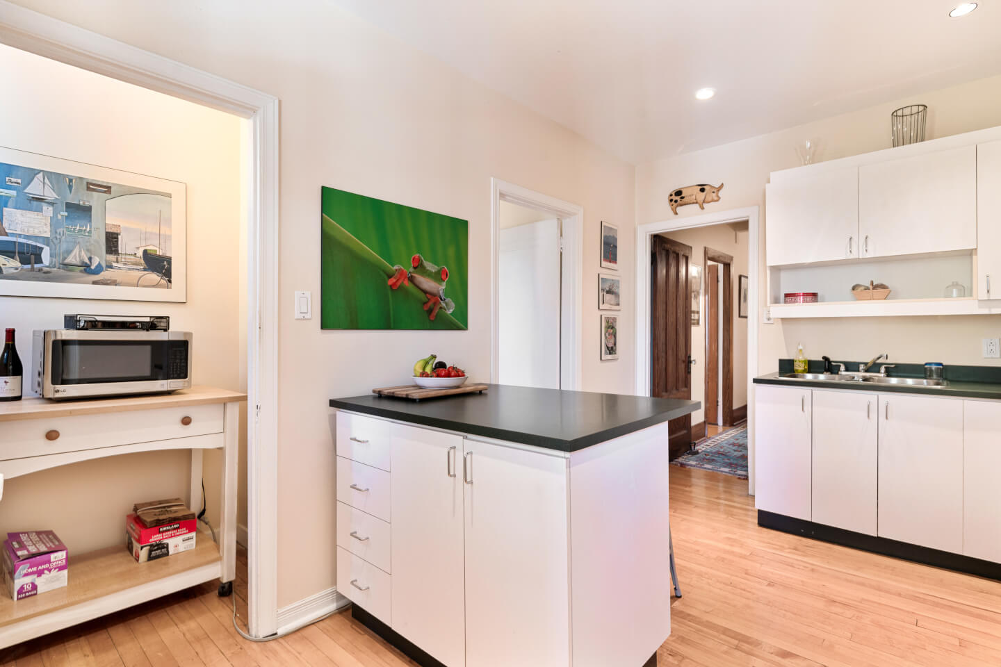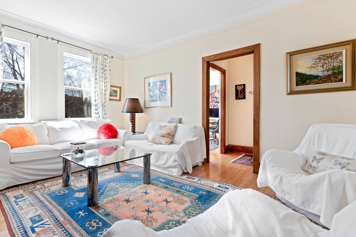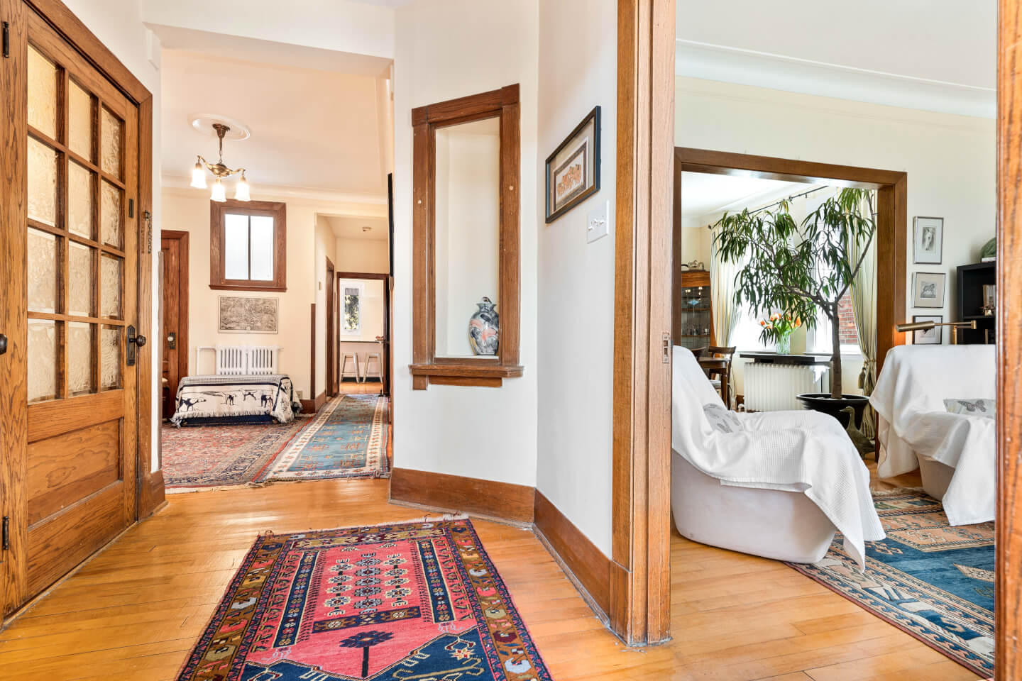 This classic undivided upper unit in NDG will charm you with its exceptional natural light, stunning woodwork and sought-after location. Featuring 2 bedrooms plus an office, it offers a spacious living room that opens onto an elegant dining room with original wainscoting and built-in cabinetry. The bright, sunny kitchen is a true highlight. Front and back balconies complete the space. The foundation requires repairs or replacement — estimates are available. The lower unit has been sold and its buyers are eager to plan the foundation project with the future owners of the upper unit. Just steps from vibrant Monkland Avenue!