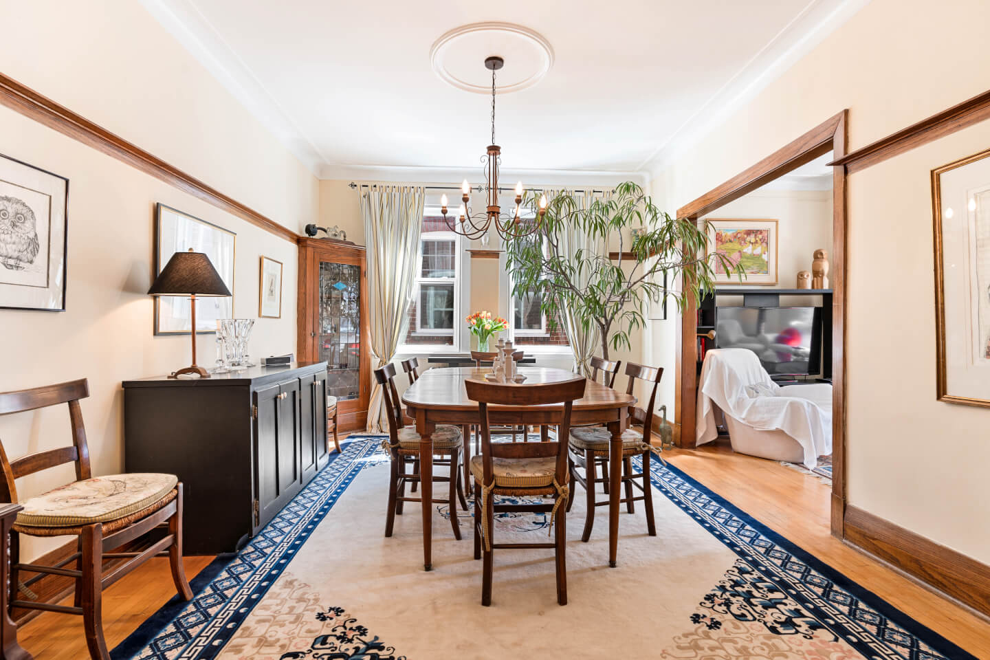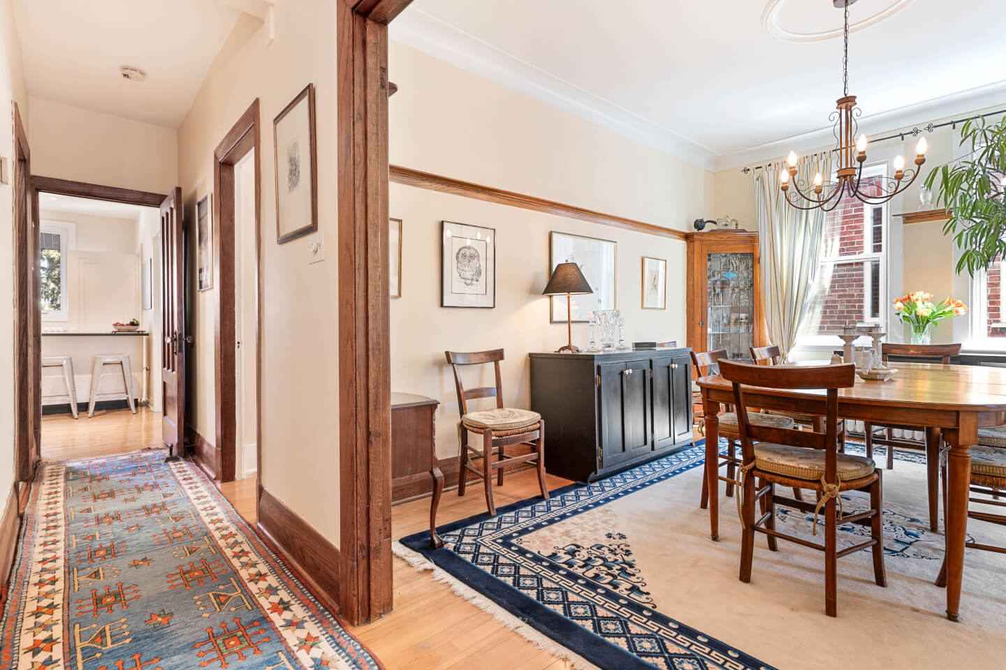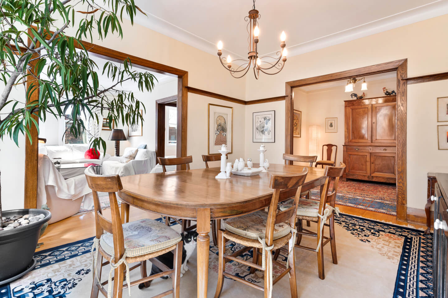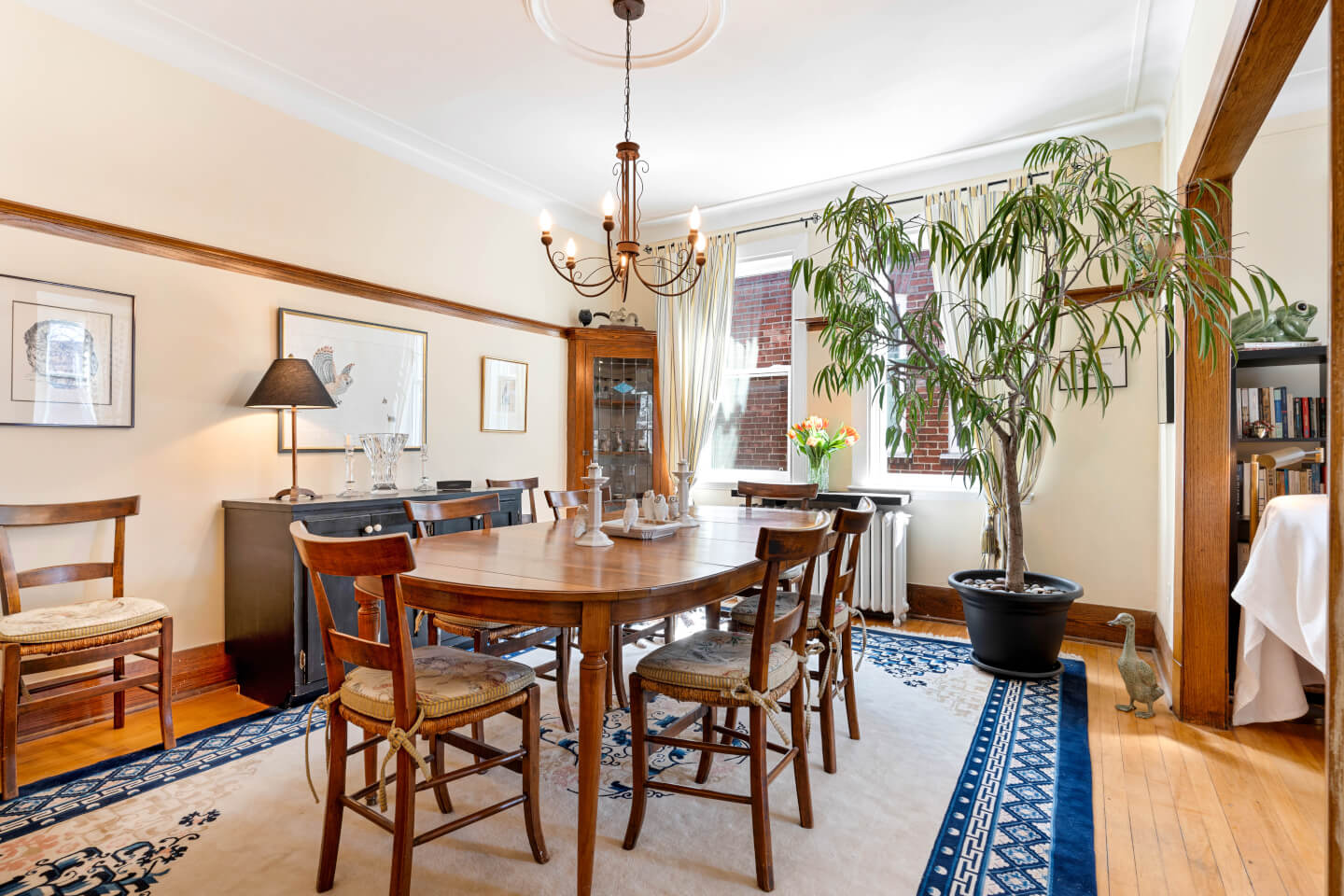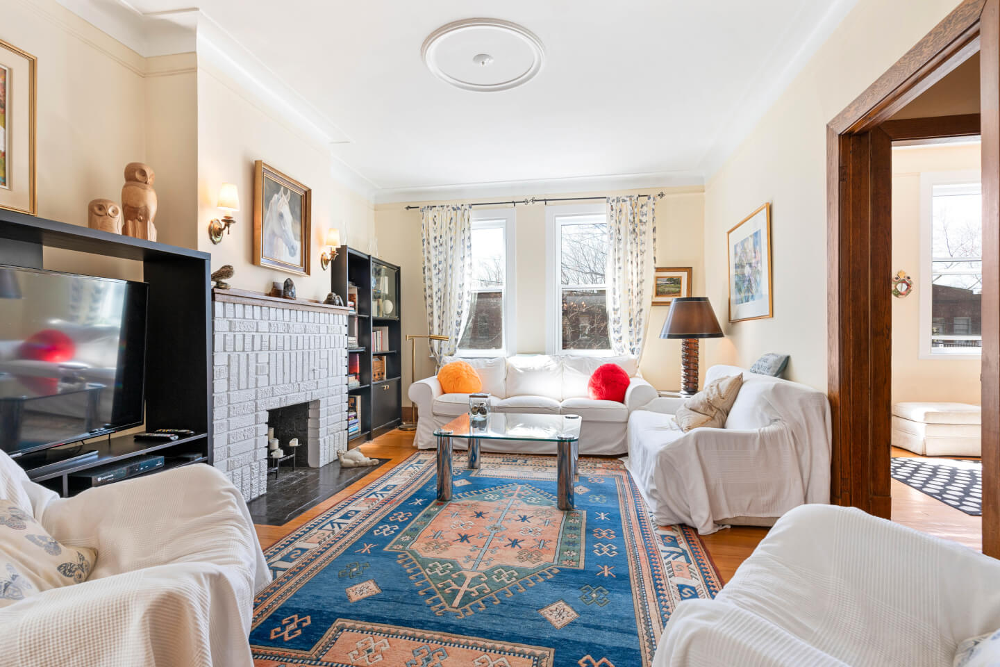 Living room open to the dining room (fireplace not compliant with Montreal city law)