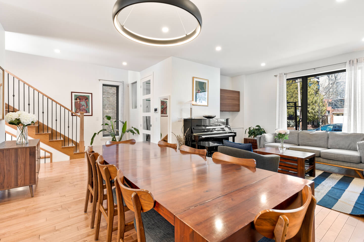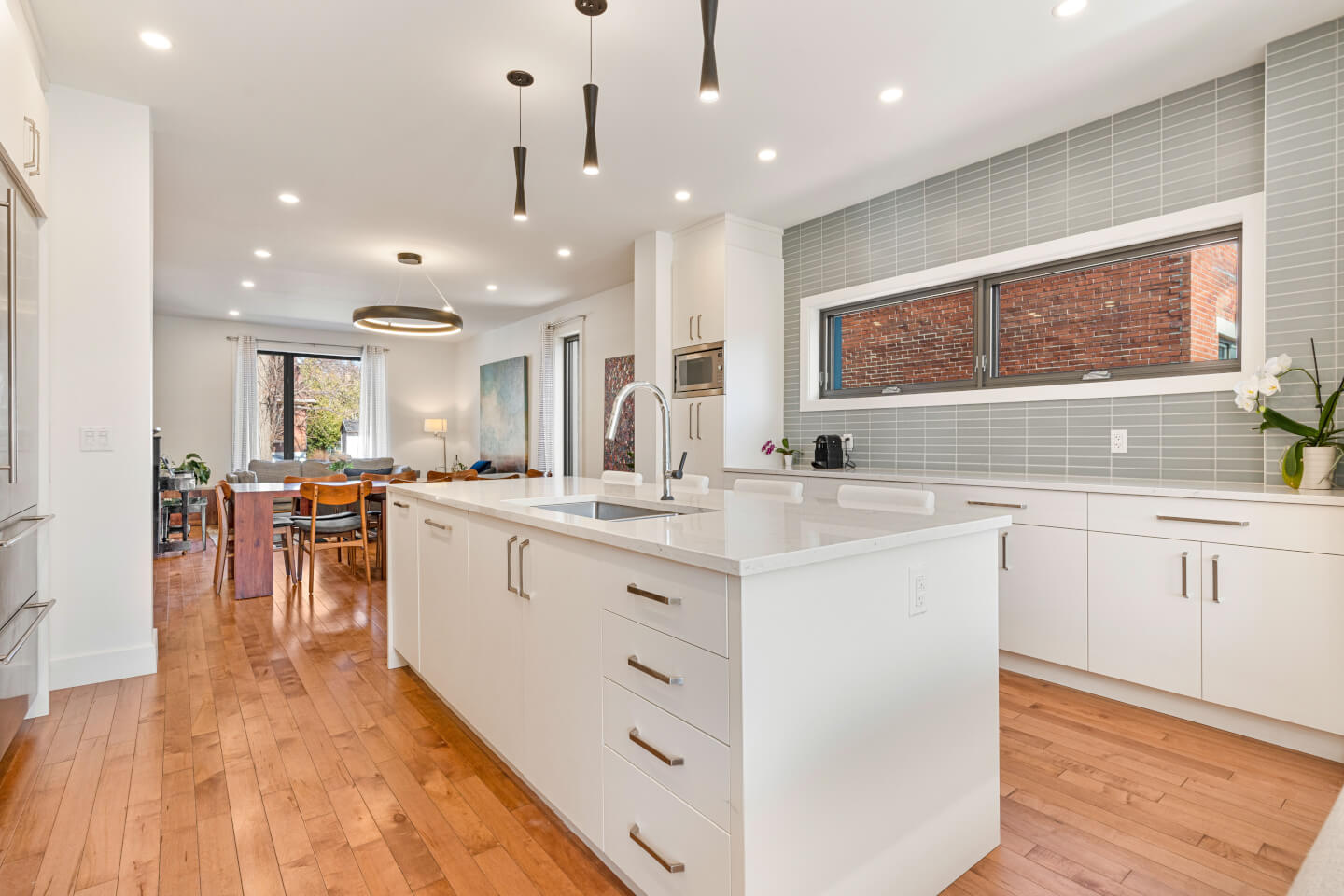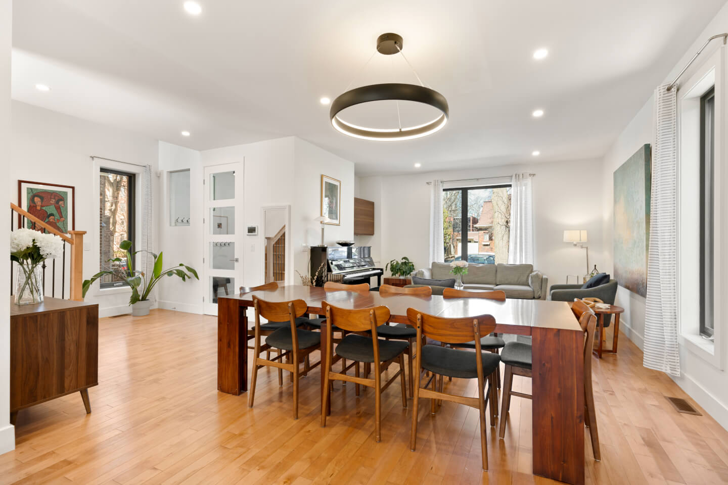 A true gem! A stunning, spacious semi-detached new build, just steps from Monkland! Boasting exceptional construction quality and incredible brightness, this home captivates from the moment you step inside. The open-concept main floor features a bright living and dining area seamlessly connected by a sleek, modern kitchen—an ideal space for entertaining! Two oversized patio doors in the den lead to a west-facing garden, perfect for enjoying the afternoon sun. Upstairs, a generous landing opens to five bedrooms, including a luxurious primary suite with a walk-in closet and ensuite bathroom, plus a second full bathroom and a laundry room. The finished basement offers a cozy family room, an additional bedroom, and an office/playroom, all on a heated flooring for ultimate comfort. Integrated garage. A must-see!